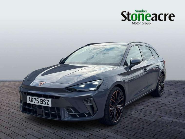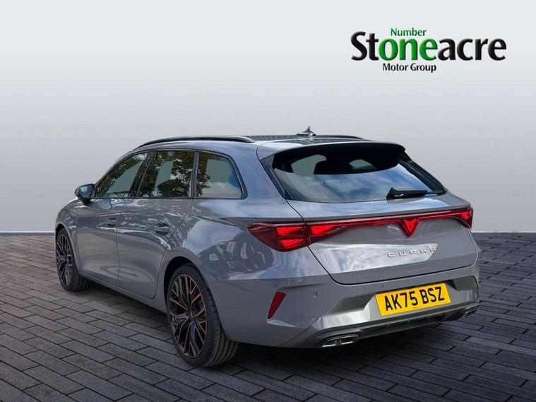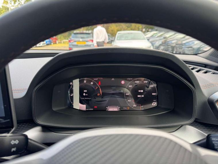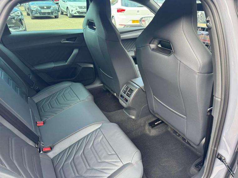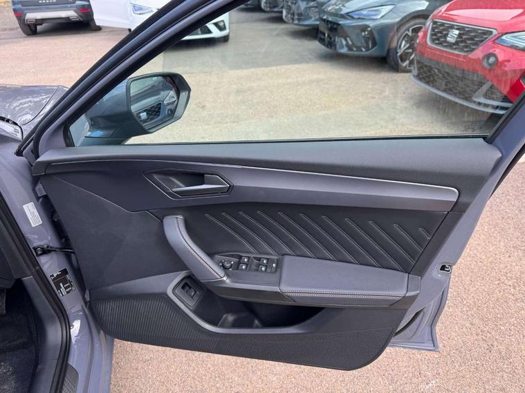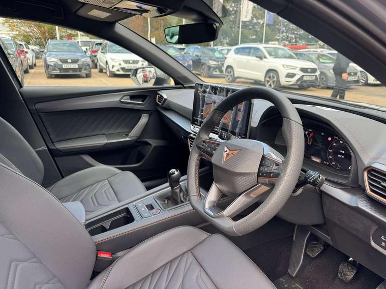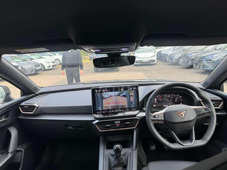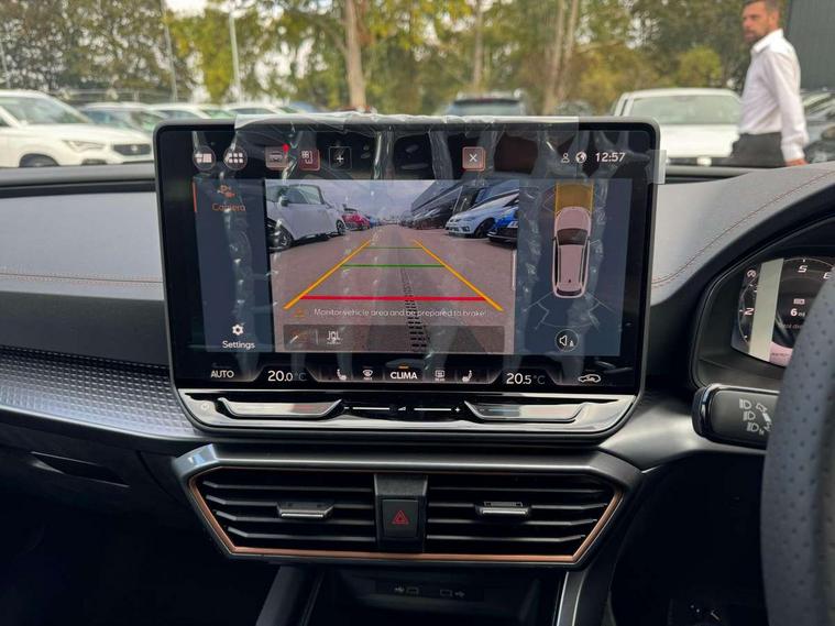 Adaptive cruise control with follow-to-stop and speed limiter, CUPRA drive profile selection with (Comfort/Performance/Individual), throttle response and gearshift mode, Digital cockpit, Driver alert system, Dynamic road sign display, E-call, Four x USB Type C ports (2 in front and 2 in rear), Front and rear parking sensors, Front assist with forward collision warning braking reaction to vehicles, pedestrians and cyclists, Front cross traffic assist, Full link smartphone integration with Mirror Link, wireless Apple CarPlay and wired Google Android Auto, Lane change assist with emergency assist, Lockable tailgate, Rear view camera, RPM, trip computer, outside temp gauge, instrument light brightness, low fuel warning light, lights on reminder, gearshift indicator, Service interval indicator, Side and exit assist, Start/stop system with regenerative braking, Virtual pedal with electric tailgate, Wireless phone charger, Auxiliary input socket, Auto dimming rear view mirror, Body colour door handles, Body coloured bumpers, Cupra sports bumpers, Dark tinted rear windows, Electric front/rear windows, Electrically adjustable, heated and folding door mirrors, Gloss black roof rails, High beam assist, LED front fog lamps with cornering function, LED headlights with dynamic turn signals, tail lights, rear fog lights with rear coast to coast lighting, LED rear fog lamp, Rain sensing wipers, Rear diffuser with black simulated exhaust pipes, Rear side wing doors, Rear wash/wipe, Separate daytime running light with automatic headlight control and coming home feature, Third brake light, Welcome light with logo projector in door mirrors, 12v power supply in centre console, 3 seat bench in 2nd row, 5 headrests, 60/40 split rear bench seat with armrest, Ambient lighting (glovebox, footwell, ambient lighting multicoloured), Black headlining, CUPRA Leather flat bottomed, heated, perforated steering wheel, Electrically adjustable driver seat and lumbar support with memory function + manually adjustable passenger seat, Front and rear reading lights X 4, Front centre armrest, Heated front seats, Height/reach adjust steering wheel, Illuminated interior front door sills, Interior wraparound lighting, ISOFIX points in outer rear seats with top tether anchorage points, Leather upholstery, Single front passenger seat, Sliding boot cover, Storage pockets on rear of front seats, Sunvisors with illuminated mirror, Three zone climate control, Dynamic and comfort pack - Leon Cupra, Media system plus with 12.9" display + navigation pack - Leon Cupra, 3 point seatbelts on all rear seats, ABS, Brake control system - ESC and brake booster, Child proof door locks, Cupra black brake calipers, Disc brakes in front, Driver and front passenger airbags with front passenger airbag de-activation, front side and curtain airbags, Electronic parking brake, Hill hold control, Pre-crash front and rear seat belt tensioner, window closure and hazard lights, Rear disc brakes, Seat belt reminder for front and rear seats, Tiredness recognition system, Tyre pressure monitoring system, Anti theft alarm system with interior monitoring in cab, backup horn and towing protection, KESSY Advanced - Keyless start, keyless entry, Locking wheel bolts, Chrome and copper interior detailing, Tool kit,