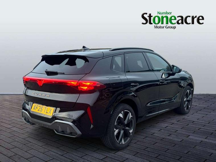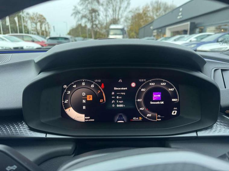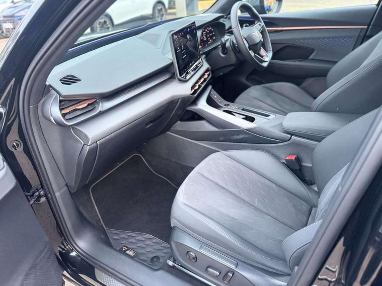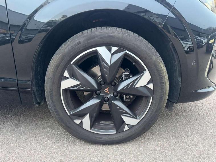 10.25" digital cockpit and configurable dashboard, Adaptive cruise control with follow-to-stop and speed limiter, Advanced driver alert system, Advanced lane assist with semi-automatic vehicle control in a medical emergency and traffic jam assist, Driving profile selection and conventional shock absorber, Dynamic road sign display, E-call, Electric tailgate with virtual pedal, Emergency steering support with turn assist, Four x USB Type C ports (2 in front and 2 in rear), Front and rear parking sensors, Front assist (Forward collision warning with automatic braking) with multifunction camera and front cross traffic assist, Head up Display, Intelligent park assist, Media system with Nav - 12.9" touch display, voice control, full link phone (wired/wireless), DAB and Steering wheel mounted controls, Rear traffic assist, Side and exit assist, Speed sensitive power steering, Start/stop system with regenerative braking, Top view camera (front camera, rear camera, 2 side cameras), Wireless phone charger, Auto dimming rear view mirror, Black roof rails, CUPRA 3D rear lights with ceremony & swiping indicator and illuminated logo, Dark tinted rear windows, Daytime running lights with automatic headlight control and Coming and Leaving home function, Door mirrors with memory function and lowing function on passenger mirror, Dynamic headlight range control, Electric front/rear windows, Electrically adjustable, heated and folding door mirrors, Front fog lamps with cornering function, Heat reflecting windscreen, High beam assist, LED headlamps with signature "CUPRA LED", Rain sensing wipers, Rear fog light on one side, back up light on both sides, Rear side wing doors, Rear wash/wipe, Third brake light, Welcome lights (within exterior mirror housing), 3 seat bench in 2nd row, Black roof lining, Cupra sports pedals, Dinamica cloth upholstery, Driver seat memory function, Electrically adjustable front seats including lumbar support, Front and rear head restraints, Front and rear reading lights X 4, Front centre armrest, Heated front seats, Heated leather wrapped multi function sports steering wheel with tiptronic, Illuminated interior front door sills, Isofix, Operating voltage 12V, Single front passenger seat, Smart wraparound interior lighting, Sunvisors with illuminated mirror, Three zone climate control with control panel in rear, Unsplit rear seat bench, split folding backrest, with centre armrest, Variable luggage/load compartment floor, 3 point seatbelts in front with pretensioner and electric height adjustment, 3 point seatbelts on all rear seats, Brake control system - ESC and brake booster, Child proof door locks, Driver and front passenger airbags, Electronic parking brake, Front and rear disc brakes, Front interaction airbag, Front passenger airbag deactivation switch, Front side airbags with curtain airbags, Pre-crash front and rear seat belt tensioner, window closure and hazard lights, Tyre pressure monitoring system, Visual and acoustic seat belt reminder, electric contact in front and rear, Anti theft alarm, Keyless locking and starting system with keyless access, Locking wheel bolts, Black decorative trims, Chrome interior detailing, 19" Spectrum exclusive machine alloy wheels, Tool kit,