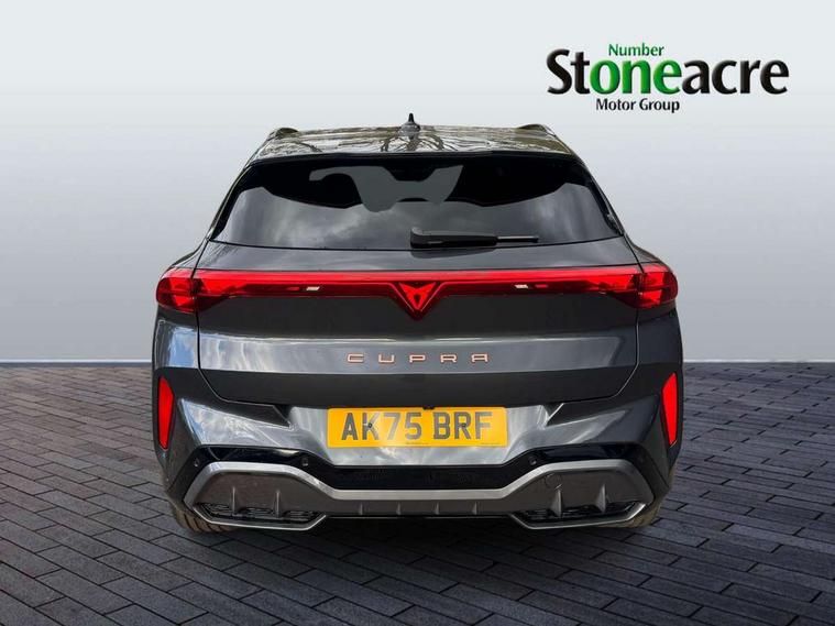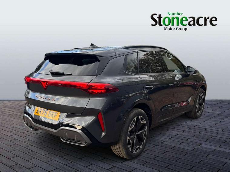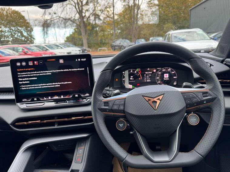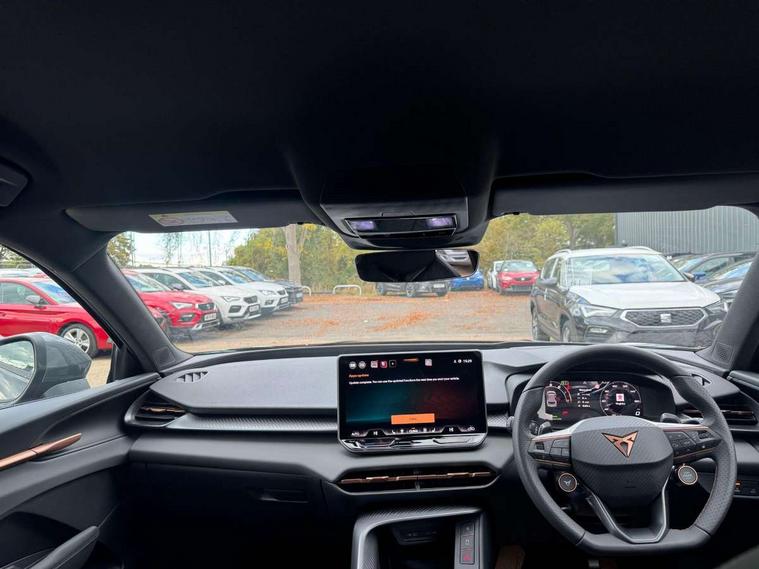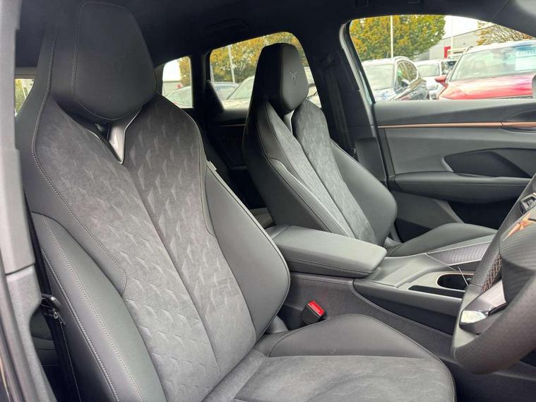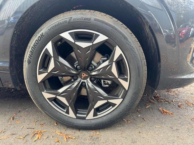 10.25" digital cockpit and configurable dashboard, Adaptive cruise control with follow-to-stop and speed limiter, Advanced driver alert system, Advanced lane assist with semi-automatic vehicle control in a medical emergency and traffic jam assist, Driving profile selection and conventional shock absorber, Dynamic road sign display, E-call, Electric tailgate with virtual pedal, Emergency steering support with turn assist, Four x USB Type C ports (2 in front and 2 in rear), Front and rear parking sensors, Front assist (Forward collision warning with automatic braking) with multifunction camera and front cross traffic assist, Head up Display, Intelligent park assist, Media system with Nav - 12.9" touch display, voice control, full link phone (wired/wireless), DAB and Steering wheel mounted controls, Rear traffic assist, Side and exit assist, Speed sensitive power steering, Start/stop system with regenerative braking, Top view camera (front camera, rear camera, 2 side cameras), Wireless phone charger, Auto dimming rear view mirror, Black roof rails, CUPRA 3D rear lights with ceremony & swiping indicator and illuminated logo, Dark tinted rear windows, Daytime running lights with automatic headlight control and Coming and Leaving home function, Door mirrors with memory function and lowing function on passenger mirror, Dynamic headlight range control, Electric front/rear windows, Electrically adjustable, heated and folding door mirrors, Front fog lamps with cornering function, Heat reflecting windscreen, High beam assist, LED headlamps with signature "CUPRA LED", Rain sensing wipers, Rear fog light on one side, back up light on both sides, Rear side wing doors, Rear wash/wipe, Third brake light, Welcome lights (within exterior mirror housing), 3 seat bench in 2nd row, Black roof lining, Cupra sports pedals, Dinamica cloth upholstery, Driver seat memory function, Electrically adjustable front seats including lumbar support, Front and rear head restraints, Front and rear reading lights X 4, Front centre armrest, Heated front seats, Heated leather wrapped multi function sports steering wheel with tiptronic, Illuminated interior front door sills, Isofix, Operating voltage 12V, Single front passenger seat, Smart wraparound interior lighting, Sunvisors with illuminated mirror, Three zone climate control with control panel in rear, Unsplit rear seat bench, split folding backrest, with centre armrest, Variable luggage/load compartment floor, 3 point seatbelts in front with pretensioner and electric height adjustment, 3 point seatbelts on all rear seats, Brake control system - ESC and brake booster, Child proof door locks, Driver and front passenger airbags, Electronic parking brake, Front and rear disc brakes, Front interaction airbag, Front passenger airbag deactivation switch, Front side airbags with curtain airbags, Pre-crash front and rear seat belt tensioner, window closure and hazard lights, Tyre pressure monitoring system, Visual and acoustic seat belt reminder, electric contact in front and rear, Anti theft alarm, Keyless locking and starting system with keyless access, Locking wheel bolts, Black decorative trims, Chrome interior detailing, 19" Spectrum exclusive machine alloy wheels, Tool kit,