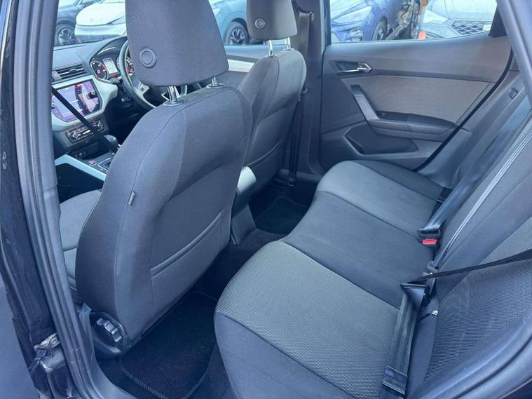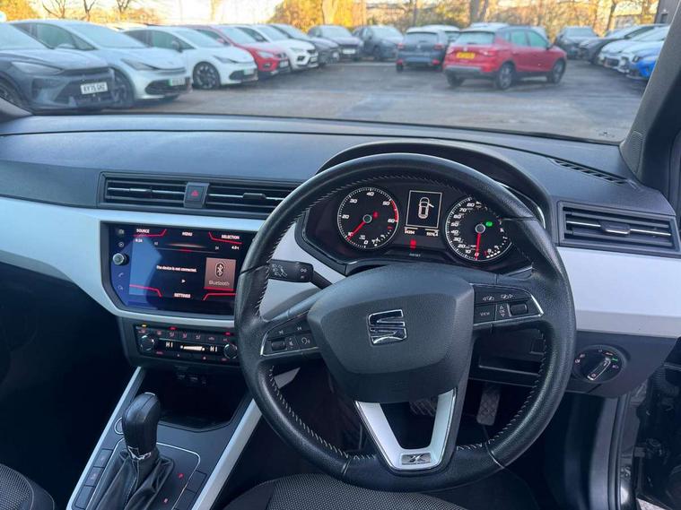 'Lights On' Reminder warning buzzer, Adaptive cruise control, Blind spot monitor, Electric speed sensitive power steering, Front assistant collision mitigation, Outside temperature display, Rear cross traffic alert, Rear parking sensor, Trip computer, Comfort suspension, 6 speakers, Bluetooth interface for hands free and audio streaming, DAB Digital radio, Steering wheel mounted audio controls, Auto dimming interior mirror, Automatic activation of hazard warning lights, Automatic headlights, Body coloured bumpers, Body coloured door handle inserts, Chrome grille bars, Chrome grille surround, Chrome roof rails, Chrome window surround, Coming/leaving home lighting function, Electric front/rear windows with one touch/auto up/down, Electrically adjustable and heated door mirrors, Electrically folding wing mirrors, Front fog lights with static cornering function, Full LED headlights, LED daytime running lights, LED tail lights, Rain sensor windscreen wipers, Rear window wash/wipe, Roof colour door mirrors, 2 cupholders, 3 rear height adjustable headrests, 60/40 split folding rear seat, Ambient interior lighting, Cloth upholstery, Double boot floor, Driver and passenger sunvisors, Driver/front passenger seat height adjustment, Dual zone climate control, Dust/pollen filter, Footwell ambient lighting, Front courtesy lights, Front reading light, Front seat and rear pockets, Height/reach adjustable steering column, Illuminated boot, Isofix attachments on rear seats, Leather handbrake, Leather steering wheel and gear knob, Multi-colour ambient interior lighting, Connectivity pack plus - Arona, Storage pack - Arona, 3 point seatbelts on all rear seats, ABS+EBA, Child locks on rear doors, Driver/Front Passenger airbags, Electronic stability control, Front and rear seatbelt reminder, Front side/curtain airbags, Height adjustable active front headrests, Hill hold control + Tyre Pressure monitor, Multi-Collision braking, Passenger airbag deactivate switch, Tiredness recognition system, Traction control, 2 folding remote keys with window open/close function, Alarm with interior monitoring, Immobiliser, Keyless entry and start, Locking wheel bolts, Remote central locking + deadlocks, Interior chrome line trim, 17" Dynamic machined alloy wheels,