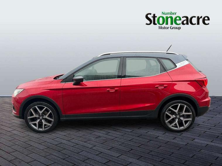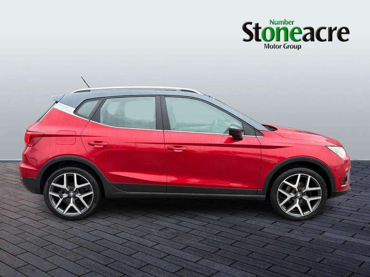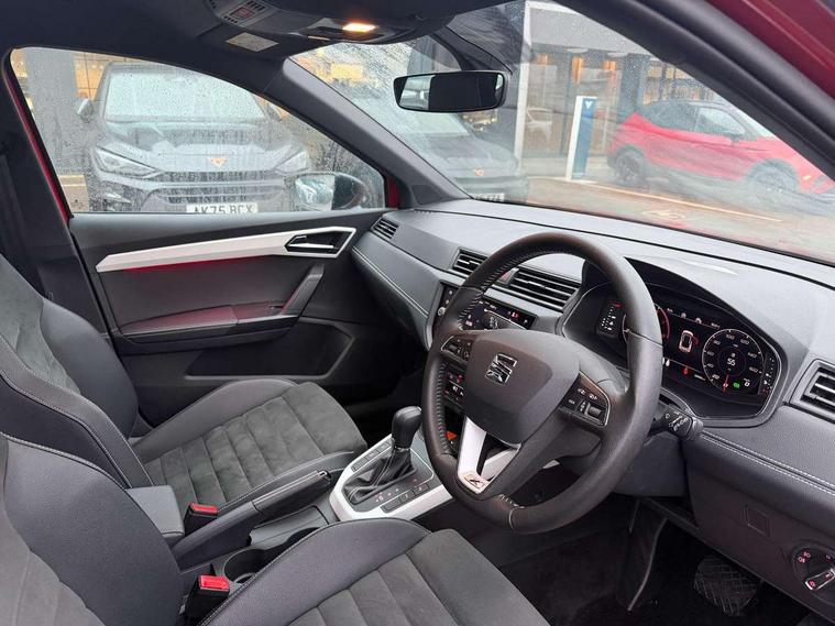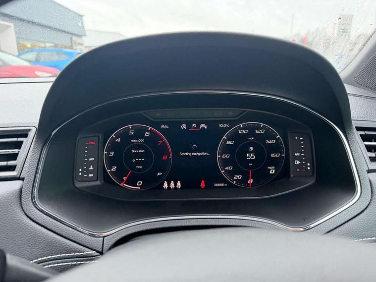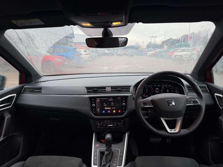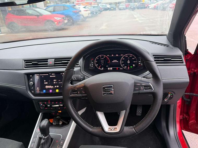 'Lights On' Reminder warning buzzer, Adaptive cruise control, Blind spot monitor, Digital clock, Digital cockpit, Electric speed sensitive power steering, Front parking sensor, Full Link Smartphone Integration with Mirror Link, Apple Car Play, Google Android Auto with USB cable for Apple and Android compatibility, Low fuel warning light, Outside temperature display, Park assist system, Rear cross traffic alert, Rear parking sensor, Rear view camera, RPM counter, Seat connect with safety, serivice, remote and online, Trip computer, Comfort suspension, 6 speakers, Bluetooth interface for hands free and audio streaming, DAB digital radio and AM/FM radio, Steering wheel mounted audio controls, Anti theft roof antenna, Auto dimming interior rear view mirror, Automatic activation of hazard warning lights, Automatic headlights, Body coloured bumpers, Body coloured door handle inserts, Chrome front grille frame, Chrome grille bars, Chrome grille surround, Chrome roof rails, Chrome window trim, Coming/leaving home lighting function, Electric front/rear windows with one touch/auto up/down, Electrically adjustable, heated and folding door mirrors, Front grille hot stamping, Full LED headlights dipped and mainbeam + front and rear fog lights, Hidden exhaust pipe, Ice metal door side panels, LED daytime running lights, LED rear tail lights and licence plate lights, Protective side mouldings, Rain sensing wipers, Rear window wash/wipe, Roof colour door mirrors, Visible VIN plate, Windshield wiper with intermittent control and potentiometer, 2 cupholders, 60/40 split folding rear seat, Aircare filter, Black interior roof, Double boot floor, Driver sunvisor with covered mirror + card holder, Dual zone climate control, Front courtesy light with front reading lights, Front seat back storage pockets, Gear shift indicator, Heated front seats, Height adjustable front seats, Height/reach adjustable steering column, Illuminated boot, Instrument lighting with brightness control, Interior light in footwell, central console and door panel, ISOFIX points in outer rear seats with top tether anchorage points, Leather steering wheel/gear knob/handbrake, Microsuede cloth upholstery, Multi-colour ambient interior lighting, Passenger sunvisor with vanity mirror, Storage net on centre console, Two front and three rear height adjustable headrests, Connectivity pack plus - Arona, Interior chrome pack - Arona, Storage pack - Arona, 3 point seatbelts on all rear seats, ABS, Active front headrests, Child locks on rear doors, Driver and front passenger airbags with front passenger airbag de activation, front side and curtain airbags, Electronic stability control, Emergency Brake Assist (EBA) and front assist, Front and rear seatbelt reminder, Hill hold control, Multi-Collision braking, Tiredness recognition system, Traction control, Tyre pressure monitoring system, 2 folding remote keys with window open/close function, Alarm with back-up horn, Electronic engine immobiliser, KESSY Keyless entry and go, Locking wheel bolts, Remote central locking + deadlocks, Tow away protection, Interior chrome line trim, Leatherette dashboard, 18" Performance alloy wheels,