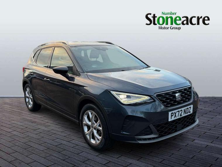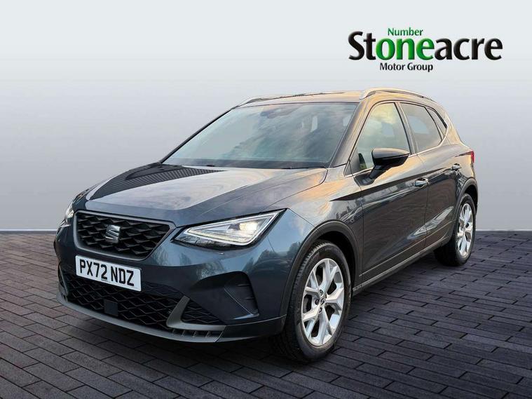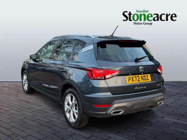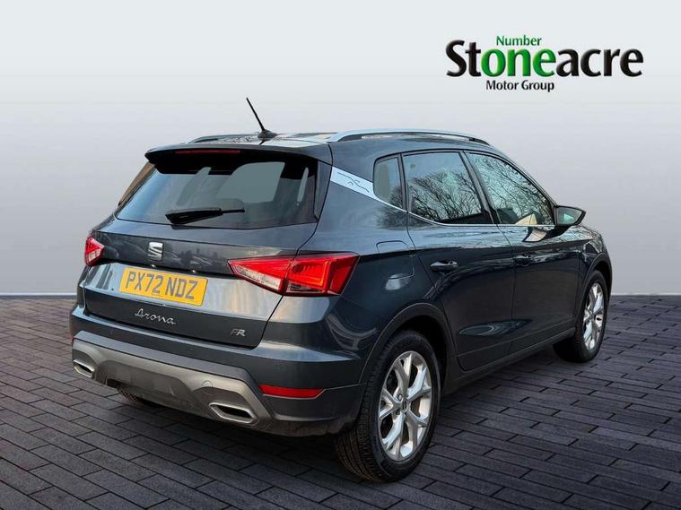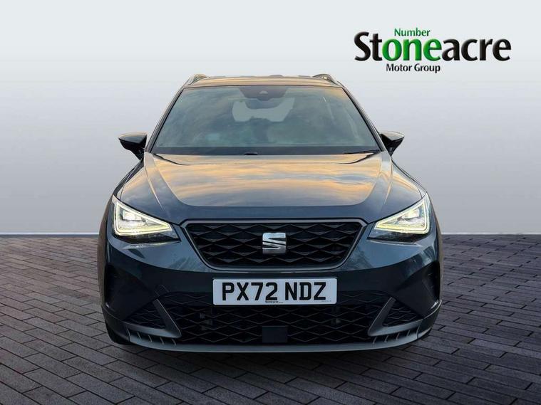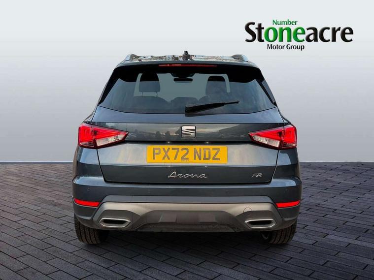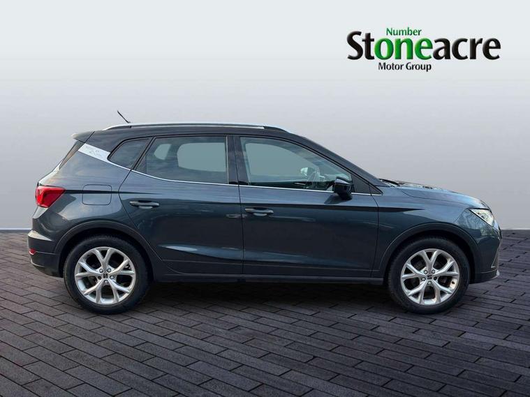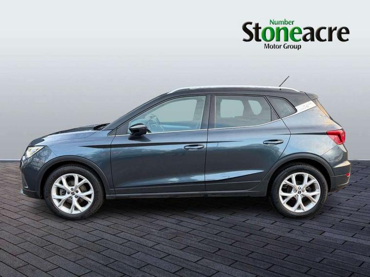 'Lights On' Reminder warning buzzer, 8" Digital cockpit, Digital clock, E-call, Electric speed sensitive power steering, Full Link Smartphone Integration with Mirror Link, Apple Car Play, Google Android Auto with USB Type C cable for Apple and Android compatibility, Lane keeping system, Low fuel warning light, Outside temperature display, Rear parking sensor, RPM counter, Seat connect with safety, service, remote and online, SEAT Drive profile - Four different models normal-sport-eco-individual, steering response, throttle response, Trip computer, Wireless phone charger, 9.2" colour touchscreen with navigation system, voice control and USB port (type c), Bluetooth interface for hands free and audio streaming, DAB digital radio and AM/FM radio, Steering wheel mounted audio controls, Anti theft roof antenna, Auto dimming interior rear view mirror, Automatic activation of hazard warning lights, Body coloured bumpers, Body coloured door handle inserts, Chrome roof rails and window surrounds, Dark tinted rear windows, Electric front/rear windows, Electrically adjustable, heated and folding door mirrors, Front fog lights with cornering function and rear fog light, FULL LED automatic headlights with dynamic headlight range control, coming and leaving home, LED daytime running lights, LED rear tail lights and licence plate lights, Protective side mouldings, Rain sensing wipers, Rear side wing doors, Rear spoiler, Rear window wash/wipe, Roof colour door mirrors, Third brake light, Twin exhaust pipe styling hidden exhaust pipe, Visible VIN plate, Windshield wiper with intermittent control and potentiometer, 2 cupholders, 3 seat bench in 2nd row, 60/40 split folding rear seat, Aircare filter, Black interior roof, Cloth upholstery, Double boot floor, Driver sunvisor with covered mirror + card holder, Dual zone climate control, Front courtesy light with front and rear reading lights, Front sport seats, Gear shift indicator, Height adjustable front seats, Height/reach adjustable steering column, Illuminated boot, Instrument lighting with brightness control, Interior ambient lighting, Interior light in footwell, central console and door panel, ISOFIX points in outer rear seats with top tether anchorage points, Passenger sunvisor with vanity mirror, Perforated flat bottomed leather steering wheel/gear knob/handbrake with red stitching and FR logo, Single front passenger seat, Two front and three rear height adjustable headrests, Interior chrome pack - Arona, 3 point seatbelts on all rear seats, ABS, Active front headrests, Child locks on rear doors, Driver and front passenger airbags with front passenger airbag de activation, front side and curtain airbags, Electronic stability control, Emergency Brake Assist (EBA) and front assist, Front and rear seatbelt reminder, Hill hold control, Multi-Collision braking, Tiredness recognition system, Traction control, Tyre pressure monitoring system, Alarm with back-up horn, Electronic engine immobiliser, Locking wheel bolts, Remote central locking + deadlocks, Tow away protection, Titan black dashboard, 17" Dynamic alloy wheels,