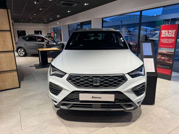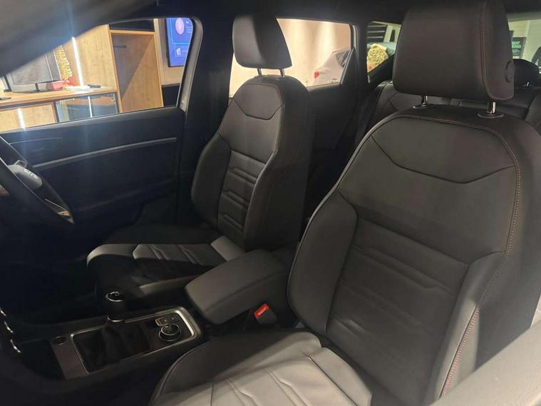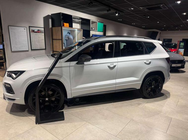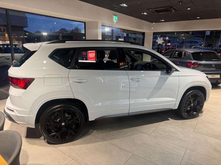 10" Digital cockpit, Bluetooth audio streaming with handsfree system, E-call, Electric tailgate with virtual pedal, Outside temperature gauge, Progressive power assisted steering, SEAT drive profile with driving experience button - Normal, Sport, Eco and Individual mode, steering and throttle response, Self parking functionality (includes front and rear parking sensors), Speed limiter, Start/stop system, Top view camera with rear view camera, Trip computer, wired and wireless full link smartphone integration, Wireless phone charger, Steering wheel mounted audio/phone controls, Black roof rails, Black side window trim, Body colour bumpers, Body coloured wheel arch surrounds, Chrome front grille frame, Dark tinted rear windows, Daytime running lights, Door mirrors with welcome light silhouette, Dynamic headlight range control with self adjusting whilst driving, Electric adjustable/heated/folding door mirrors, Front and rear electric windows, Illuminated aluminium front door sill, LED 3rd brake light, LED headlamps with lens and LED front fog lamps with cornering function, LED rear tail lights with dynamic indicators, Rear exhaust tailpipe, Rear fog lights, Rear side wing doors, Rear spoiler, Rear wash/wipe, Variable front intermittent wipers, 12V socket in front, 3 seat bench in 2nd row, 60/40 split folding rear seat, Aluminium pedals, Black greenhouse interior roof, Dual zone climate control, Electric adjustable driver seat with memory function, Front and rear head restraints, Front centre armrest, Front seat back storage pockets, Heated front seats, Height adjustable passenger seats with lumbar adjustment, ISOFIX points in outer rear seats with top tether anchorage points, Leather sports steering wheel and gear knob, Leather upholstery with front comfort seats, Rear armrest and easy back seat release mechanism from boot, Single front passenger seat, Convenience pack - Ateca, Interior lighting pack - Ateca, Navigation system pack with DAB - Ateca, Safety and driving pack (L) - Ateca, Safety and driving pack with attention and drowsiness assist - Ateca, 3x3 point rear seatbelts, ABS, Traction control system (TCS), Electronic stability control (ESC) and Electronic differential lock system (XDS), Airbags - Driver and front passenger airbag with deactivation, front side, two curtain and driver's knee airbags, Electric parking brake with auto hold function, Front and rear seatbelt reminder, Hill hold control, Manual rear child locks, Single tone horn, Tyre pressure monitoring system, Alarm, Keyless entry, Locking wheel bolts, Remote central locking, Chrome interior detailing, 19" Exclusive alloy whelels 36/10 in glossy black, Tool kit,