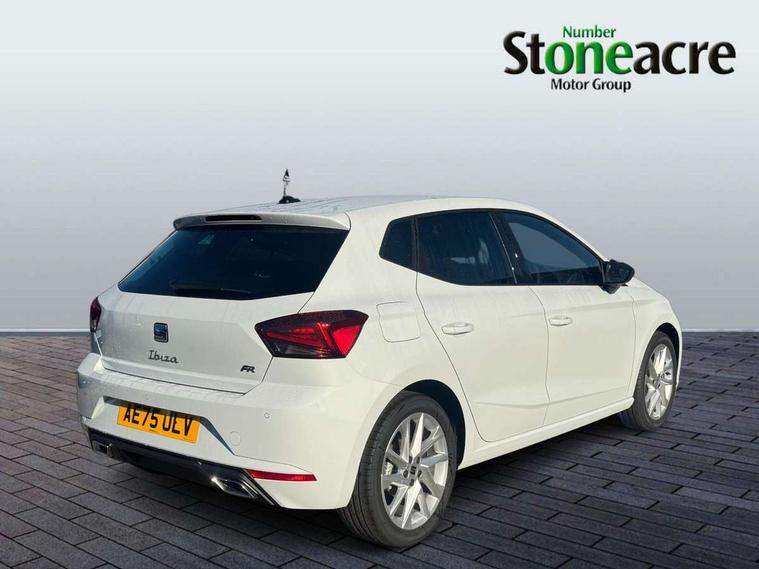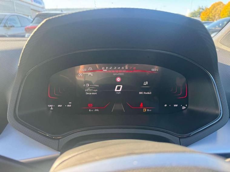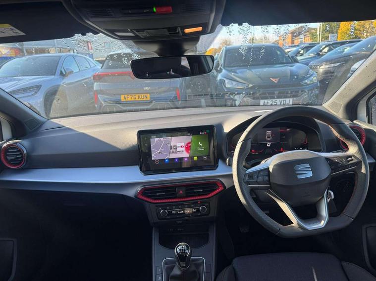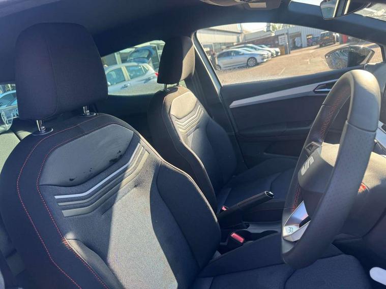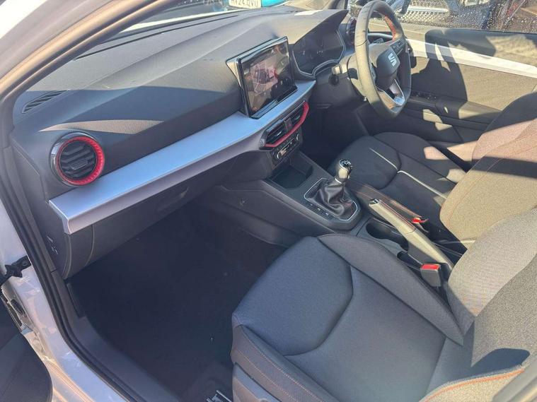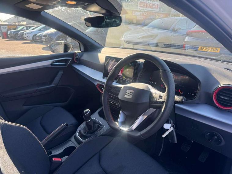 'Lights On' Reminder warning buzzer, 8" Digital cockpit, 9.2" touchscreen navigation system with type C USB socket, Voice control and DAB/AM/FM radio, Auto start and stop system, Bluetooth audio streaming with handsfree system, Digital clock, E-call, Full link smartphone integration with mirror link, wireless apple carplay, Google android auto + USB Type C cable for apple and android devices, Lane assist, Low fuel warning light, Outside temperature gauge, Power Steering, Rear parking sensor, Seat connect plus with safety, service, remote and online, SEAT drive profiles and ECO function, SEAT logo boot release, Speed limiter, Traffic sign recognition, Trip computer, Sports suspension, Auxiliary input socket, Radio/MP3 player, SD card slot, Steering wheel mounted controls, Anti theft roof antenna, Auto dimming rear view mirror, Automatic rain sensing wipers, Black door mirror caps, Body colour bumpers, Body colour door handles, Brilliant black window surrounds, Dark tinted rear windows, Electric adjustable/heated/folding door mirrors, Electric front windows, Electric headlight adjustment, Electric rear windows, Front/rear fog lights, FULL LED automatic headlights with dynamic headlight range control, coming and leaving home, LED daytime running lights, LED 3rd brake light, LED tail lights, Rear roof spoiler with FR twin exhausts, Rear side wing doors, Rear wiper, 3 seat bench in 2nd row, 60/40 split folding rear seat, Ambient interior lighting, Chrome detailing and black headlining, Cloth upholstery, Dual zone climate control with combination filter, Front courtesy lights, Front cupholders x 2, Front reading lights, Gear shift indicator, Glovebox, Height adjustable front and rear headrests (five), Height adjustable front seats, Height/reach adjust steering wheel, Illuminated air vent surrounds, Illuminated boot, Instrument lighting with brightness control, Isofix, Leather multifunction flat bottomed sports steering wheel, Passenger sunvisor, Single front passenger seat, Sports seats, Sunvisors with mirror and driver side card holder, Safety and driving pack (S) - Ibiza, 3 point seatbelts on all 3 rear seats, ABS, Active front headrests, Child locks on rear doors, Electronic stability control, Energy recovery system, Front driver and passenger side airbags with curtain airbag and front passenger airbag deactivation, Hill hold control, Multi-Collision braking, Seat belt reminder for front and rear seats, Tiredness recognition system, Tyre pressure monitoring system, Locking wheel bolts, Perimeter alarm and interior monitoring with backup horn and tow away protection, Remote central locking + deadlocks, 17" Alloy wheels in Brilliant silver,