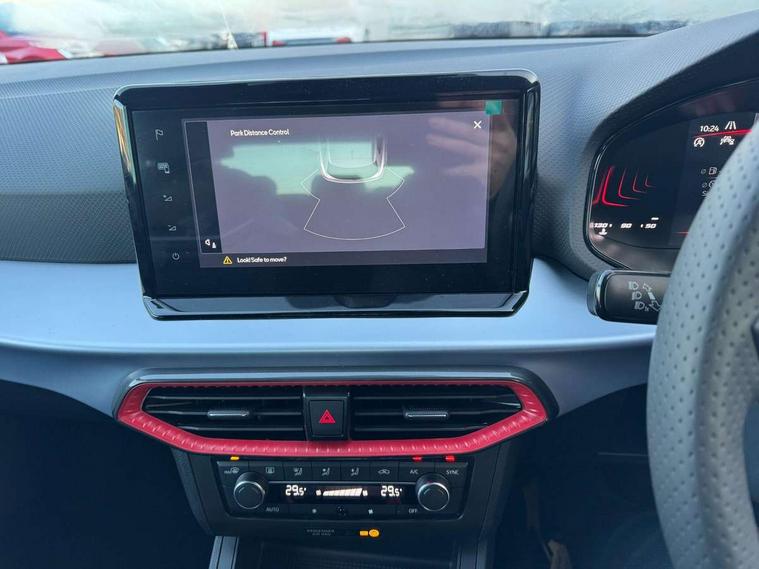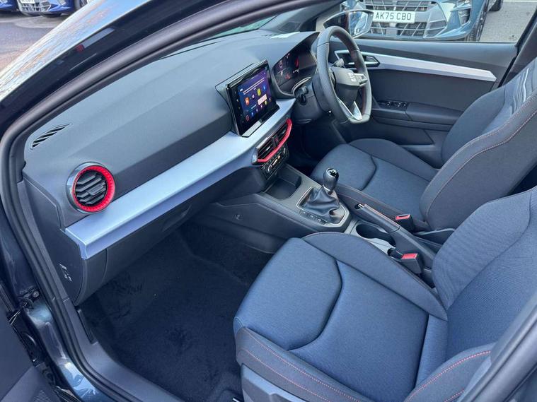 'Lights On' Reminder warning buzzer, 8" Digital cockpit, 9.2" touchscreen navigation system with type C USB socket, Voice control and DAB/AM/FM radio, Auto start and stop system, Bluetooth audio streaming with handsfree system, Digital clock, E-call, Full link smartphone integration with mirror link, wireless apple carplay, Google android auto + USB Type C cable for apple and android devices, Lane assist, Low fuel warning light, Outside temperature gauge, Power Steering, Rear parking sensor, Seat connect plus with safety, service, remote and online, SEAT drive profiles and ECO function, SEAT logo boot release, Speed limiter, Traffic sign recognition, Trip computer, Sports suspension, Auxiliary input socket, Radio/MP3 player, SD card slot, Steering wheel mounted controls, Anti theft roof antenna, Auto dimming rear view mirror, Automatic rain sensing wipers, Black door mirror caps, Body colour bumpers, Body colour door handles, Brilliant black window surrounds, Dark tinted rear windows, Electric adjustable/heated/folding door mirrors, Electric front windows, Electric headlight adjustment, Electric rear windows, Front/rear fog lights, FULL LED automatic headlights with dynamic headlight range control, coming and leaving home, LED daytime running lights, LED 3rd brake light, LED tail lights, Rear roof spoiler with FR twin exhausts, Rear side wing doors, Rear wiper, 3 seat bench in 2nd row, 60/40 split folding rear seat, Ambient interior lighting, Chrome detailing and black headlining, Cloth upholstery, Dual zone climate control with combination filter, Front courtesy lights, Front cupholders x 2, Front reading lights, Gear shift indicator, Glovebox, Height adjustable front and rear headrests (five), Height adjustable front seats, Height/reach adjust steering wheel, Illuminated air vent surrounds, Illuminated boot, Instrument lighting with brightness control, Isofix, Leather multifunction flat bottomed sports steering wheel, Passenger sunvisor, Single front passenger seat, Sports seats, Sunvisors with mirror and driver side card holder, Safety and driving pack (S) - Ibiza, 3 point seatbelts on all 3 rear seats, ABS, Active front headrests, Child locks on rear doors, Electronic stability control, Energy recovery system, Front driver and passenger side airbags with curtain airbag and front passenger airbag deactivation, Hill hold control, Multi-Collision braking, Seat belt reminder for front and rear seats, Tiredness recognition system, Tyre pressure monitoring system, Locking wheel bolts, Perimeter alarm and interior monitoring with backup horn and tow away protection, Remote central locking + deadlocks, 17" Alloy wheels in Brilliant silver,