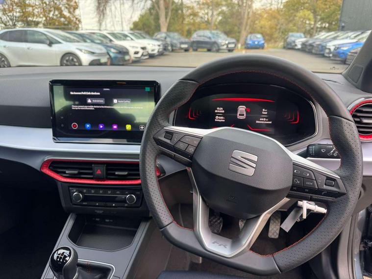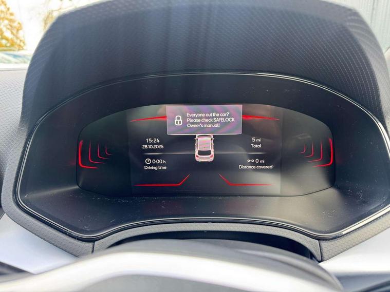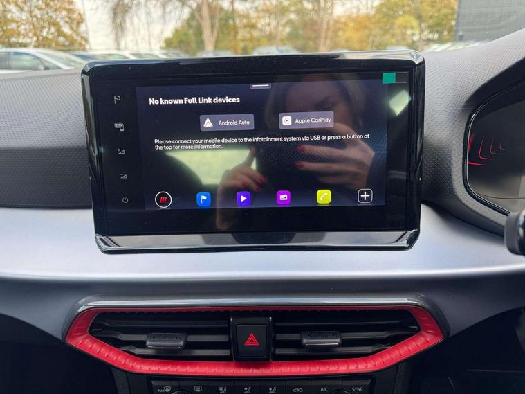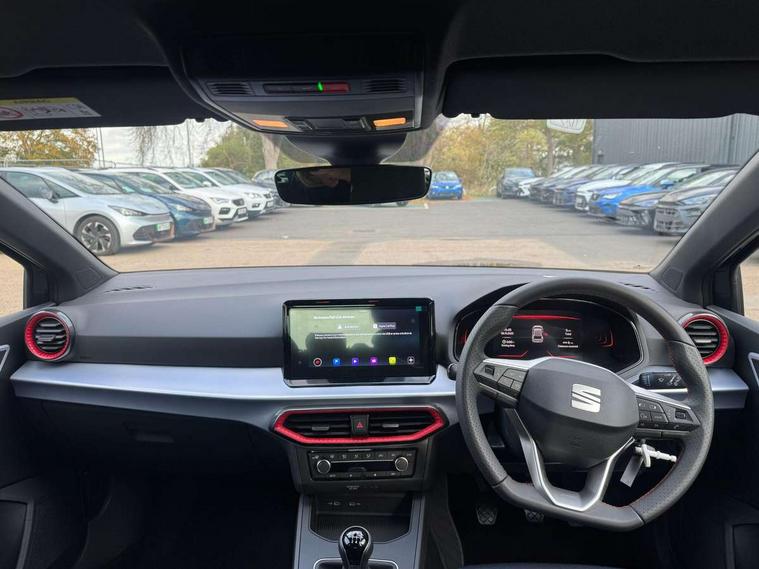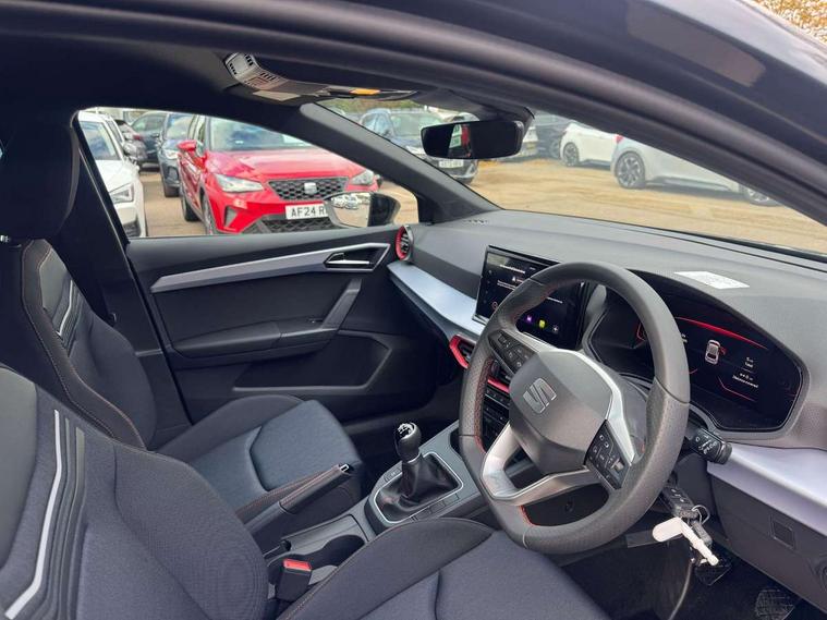 'Lights On' Reminder warning buzzer, 10" Digital cockpit, 9.2" touchscreen navigation system with type C USB socket, Voice control and DAB/AM/FM radio, Auto start and stop system, Bluetooth audio streaming with handsfree system, Digital clock, E-call, Full link smartphone integration with mirror link, wireless apple carplay, Google android auto + USB Type C cable for apple and android devices, Lane assist, Low fuel warning light, Outside temperature gauge, Power Steering, Rear parking sensor, Seat connect plus with safety, service, remote and online, SEAT drive profiles and ECO function, SEAT logo boot release, Speed limiter, Traffic sign recognition, Trip computer, Sports suspension, Auxiliary input socket, Radio/MP3 player, SD card slot, Steering wheel mounted controls, Anti theft roof antenna, Auto dimming rear view mirror, Automatic rain sensing wipers, Black door mirror caps, Black roof spoiler, Black side skirts, Body colour bumpers, Body colour door handles, Brilliant black window surrounds, Dark tinted rear windows, Electric adjustable/heated/folding door mirrors, Electric front windows, Electric headlight adjustment, Electric panoramic sunroof, Electric rear windows, Front/rear fog lights, FULL LED automatic headlights with dynamic headlight range control, coming and leaving home, LED daytime running lights, LED 3rd brake light, LED tail lights, Rear roof spoiler with FR twin exhausts, Rear side wing doors, Rear wiper, 3 seat bench in 2nd row, 60/40 split folding rear seat, Ambient interior lighting, Chrome detailing and black headlining, Dual zone climate control with combination filter, Front courtesy lights, Front cupholders x 2, Front reading lights, Front sport bucket seats, Gear shift indicator, Glovebox, Heated front seats, Height adjustable front and rear headrests (five), Height adjustable front seats, Height/reach adjust steering wheel, Illuminated air vent surrounds, Illuminated boot, Instrument lighting with brightness control, Isofix, Leather multifunction flat bottomed sports steering wheel with gearshift paddles, Microsuede cloth upholstery, Passenger sunvisor, Single front passenger seat, Storage pockets on back of front seats, Sunvisors with mirror and driver side card holder, Safety and driving pack (S) - Ibiza, ABS, Active front headrests, Child locks on rear doors, Electronic stability control, Energy recovery system, Front driver and passenger side airbags with curtain airbag and front passenger airbag deactivation, Hill hold control, Multi-Collision braking, Seat belt reminder for front and rear seats, Tiredness recognition system, Tyre pressure monitoring system, KESSY Keyless entry and go, Locking wheel bolts, Perimeter alarm and interior monitoring with backup horn and tow away protection, Remote central locking + deadlocks, 18" Performance alloy wheels in glossy black,