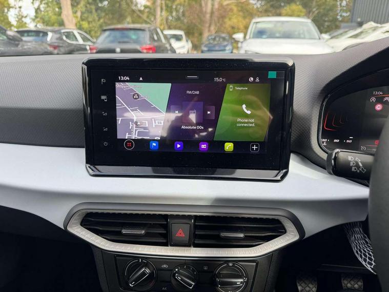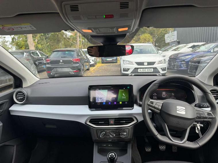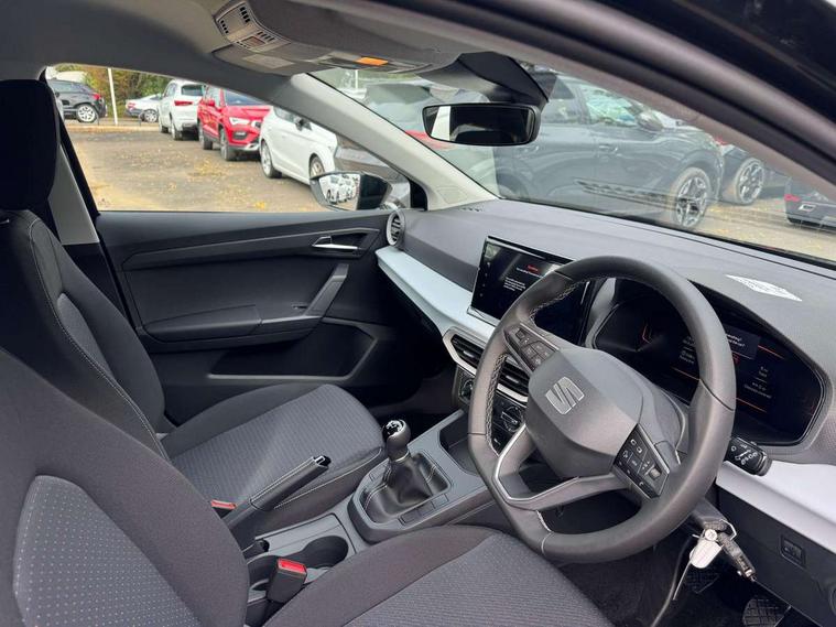 'Lights On' Reminder warning buzzer, 8" Digital cockpit, 9.2" touchscreen navigation system with type C USB socket, Voice control and DAB/AM/FM radio, Auto start and stop system, Bluetooth audio streaming with handsfree system, Cruise control, Digital clock, E-call, Full link smartphone integration with mirror link, wireless apple carplay, Google android auto + USB Type C cable for apple and android devices, Lane assist, Low fuel warning light, Outside temperature gauge, Power Steering, Rear parking sensor, Seat connect plus with safety, service, remote and online, SEAT logo boot release, Speed limiter, Traffic sign recognition, Trip computer, Comfort suspension, Auxiliary input socket, Radio/MP3 player, SD card slot, Steering wheel mounted controls, Anti theft roof antenna, Body colour bumpers, Body colour door handles, Body colour door mirror caps, Dimming interior rear view mirror, ECO LED automatic headlights and LED daytime running lights, Electric front windows, Electric headlight adjustment, Electrically adjustable door mirrors, Front/rear fog lights, LED tail lights, Rain sensor, Rear side wing doors, Rear wiper, Third brake light, 3 seat bench in 2nd row, 60/40 split folding rear seat, Air conditioning with dust and pollen filter, Chrome interior detailing and grey headlining, Cloth upholstery, Comfort seats, Front courtesy lights, Front cupholders x 2, Front reading lights, Gear shift indicator, Glovebox, Grey interior air vents, Height adjustable front and rear headrests (five), Height adjustable front seats, Height/reach adjust steering wheel, Illuminated boot, Instrument lighting with brightness control, Isofix, Leather multifunction flat bottomed sports steering wheel, Passenger sunvisor, Single front passenger seat, Sunvisors with mirror and driver side card holder, Safety and driving pack (S) - Ibiza, 3 point seatbelts on all 3 rear seats, ABS, Active front headrests, Child locks on rear doors, Electronic stability control, Energy recovery system, Front assist forward collision warning and autonomous emergency braking, Front driver and passenger side airbags with curtain airbag and front passenger airbag deactivation, Hill hold control, Multi-Collision braking, Seat belt reminder for front and rear seats, Tiredness recognition system, Tyre pressure monitoring system, Electronic engine immobiliser, Locking wheel bolts, Remote central locking + deadlocks, 16" Design machined alloy wheels in Nuclear grey,