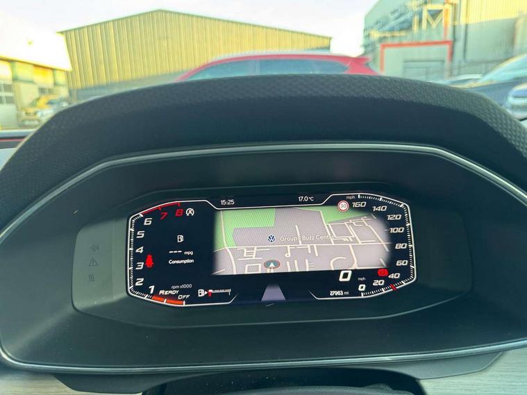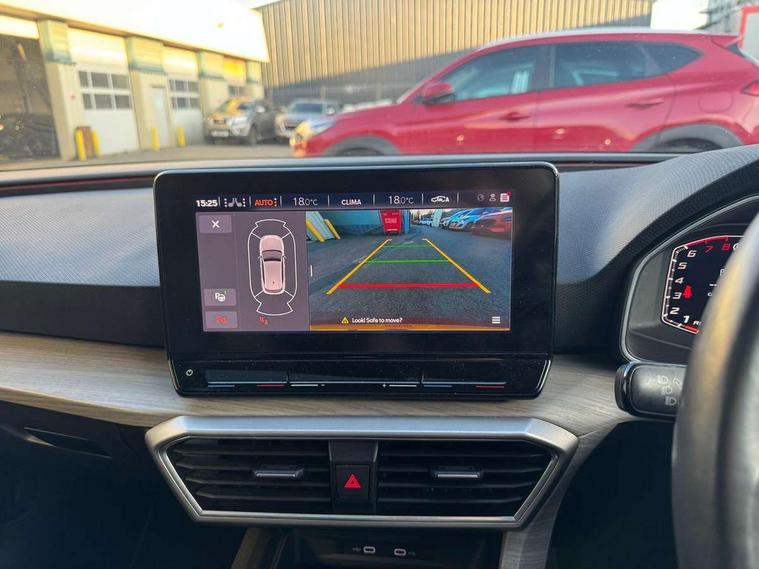 Digital cockpit, Front assist with forward collision warning braking reaction to vehicles, pedestrians and cyclists, Full link smartphone integration with Mirror Link, wireless Apple CarPlay and wired Google Android Auto, Lane keeping system, Lockable tailgate, Park assist (inc front/rear parking sensors), Power assisted speed sensitive electro-mechanical steering, Rear view camera, RPM, trip computer, outside temp gauge, instrument light brightness, low fuel warning light, lights on reminder, gearshift indicator, Service interval indicator, Start/stop system with regenerative braking, XDS electronic differential lock and dynamic traction support, Auxiliary input socket, Auto dimming rear view mirror, Body colour door handles, Body coloured bumpers, Dark tinted rear windows, Door mirror LED indicator lights, Electric adjustable/heated/folding door mirrors with memory, Electric front/rear windows, Illuminated front door sill, LED front fog lamps with cornering function, LED headlights and tail lights with dynamic turn signals, welcome light silhouette from exterior mirrors and dynamic headlight range control, LED rear fog lamp, Rain sensing wipers, Rear wash/wipe, Separate daytime running light with automatic headlight control and coming home feature, 12v power point in centre console, 60/40 split rear bench seat with armrest, Ambient lighting in door trim, Dust/pollen filter, Electric driver lumbar support + passenger manual lumbar support, Folding boot cover, Front and rear height adjustable headrests, Front and rear reading lights X 4, Front centre armrest, Front seatback storage pockets, Heated front seats, Heated leather steering wheel with leather gearstick, Height/reach adjust steering wheel, Interior lighting with LED lighting in sunvisor, glovebox and rear headlining, ISOFIX points in outer rear seats with top tether anchorage points, Luggage tie-down hooks, Nappa leather upholstery, Power driver seat with memory and manual height adjustable passenger seat, Sunvisors with covered illuminated mirror, Three zone climate control, Wraparound lighting, Media system plus with navigation - Leon, 3 point seatbelts on all rear seats, ABS, Brake control system - ESC and brake booster, Child proof door locks, Driver and front passenger airbags with front passenger airbag de-activation, front side and curtain airbags, Electronic parking brake, Extended safety system - seat belt tensioner, window closure and hazard lights, Hill hold control, Rear disc brakes, Seat belt reminder for front and rear seats, Tiredness recognition system, driver alert system, Tyre pressure monitoring system, Anti theft alarm system with interior monitoring in cab, backup horn and towing protection, KESSY Advanced - Keyless start, keyless entry with SAFELOCK, Locking wheel bolts, Wireless phone charging, Chrome interior detailing, 18" Aerodynamic performance nuclear grey alloy wheels with 92Y XL tyres, Tool kit,