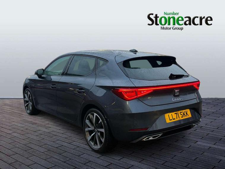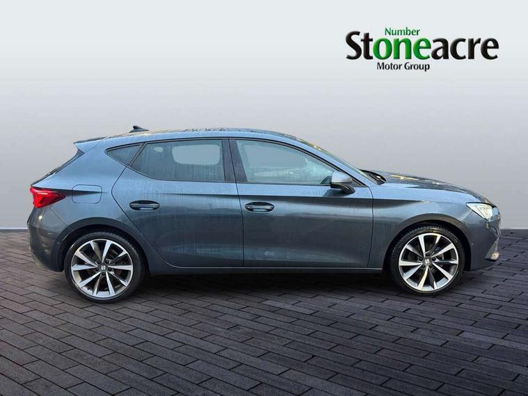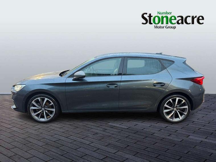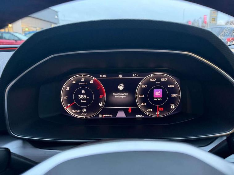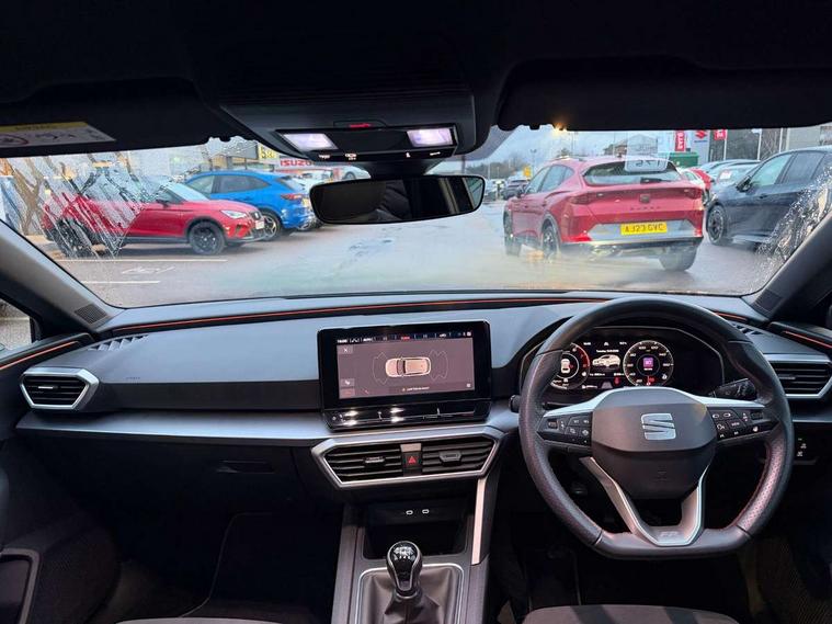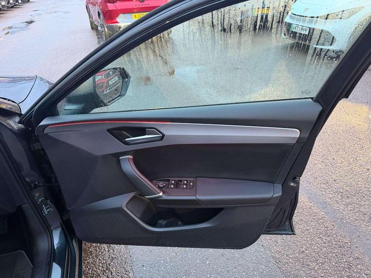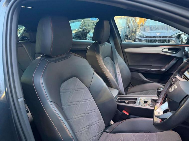 Digital cockpit, E-call, Four x USB Type C ports, Front assist with forward collision warning braking reaction to vehicles, pedestrians and cyclists, Full link smartphone integration with Mirror Link, wireless Apple CarPlay and wired Google Android Auto, Lane assist, Park assist (inc front/rear parking sensors), Power assisted speed sensitive electro-mechanical steering, RPM, trip computer, outside temp gauge, instrument light brightness, low fuel warning light, lights on reminder, gearshift indicator, SEAT drive profile with 4 modes (Eco/Normal/Sport/Individual), throttle response, Service interval indicator, Start/stop system with regenerative braking, Sports suspension, XDS electronic differential lock and dynamic traction support, 7 speakers, Auxiliary input socket, Auto dimming rear view mirror, Body colour door handles, Body coloured bumpers, Dark tinted rear windows, Door mirror LED indicator lights, Electric adjustable/heated/folding door mirrors with memory, Electric front/rear windows, FR sports bumper, Illuminated front door sill, LED front fog lamps with cornering function, LED headlights and tail lights with dynamic turn signals, welcome light silhouette from exterior mirrors and dynamic headlight range control, LED rear fog lamp, Rain sensing wipers, Rear side wing doors, Rear wash/wipe, Separate daytime running light with automatic headlight control and coming home feature, Third brake light, 12v power point in centre console, 3 seat bench in 2nd row, 60/40 split rear bench seat with armrest, Ambient lighting with glovebox, footwell and single monocolour, Black headlining, Dust/pollen filter, Electric driver lumbar support + passenger manual lumbar support, Folding boot cover, Front and rear height adjustable headrests, Front and rear reading lights X 4, Front centre armrest, Front seatback storage pockets, Heated front seats, Heated leather steering wheel with leather gearstick, Height/reach adjust steering wheel, ISOFIX points in outer rear seats with top tether anchorage points, Luggage tie-down hooks, Microsuede cloth upholstery, Power driver seat with memory and manual height adjustable passenger seat, Single front passenger seat, Sunvisors with covered illuminated mirror, Three zone climate control, Tool kit, Wraparound lighting, Media system plus with navigation - Leon, 3 point seatbelts on all rear seats, ABS, Brake control system - ESC and brake booster, Child proof door locks, Driver and front passenger airbags with front passenger airbag de-activation, front side and curtain airbags, Electronic parking brake, Extended safety system - seat belt tensioner, window closure and hazard lights, Hill hold control, Rear disc brakes, Seat belt reminder for front and rear seats, Tiredness recognition system, driver alert system, Tyre pressure monitoring system, Anti theft alarm system with interior monitoring in cab, backup horn and towing protection, KESSY Go (Keyless start), Lockable tailgate, Locking wheel bolts, Wireless phone charging, Chrome interior detailing, 18" Performance machined alloy wheels with 92Y tyres,