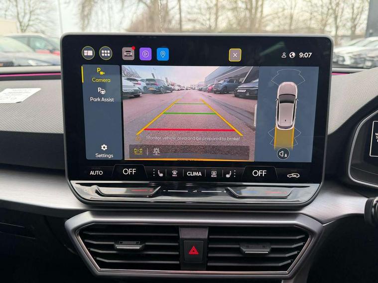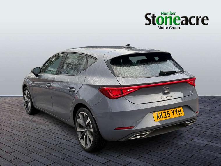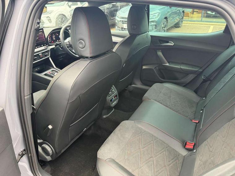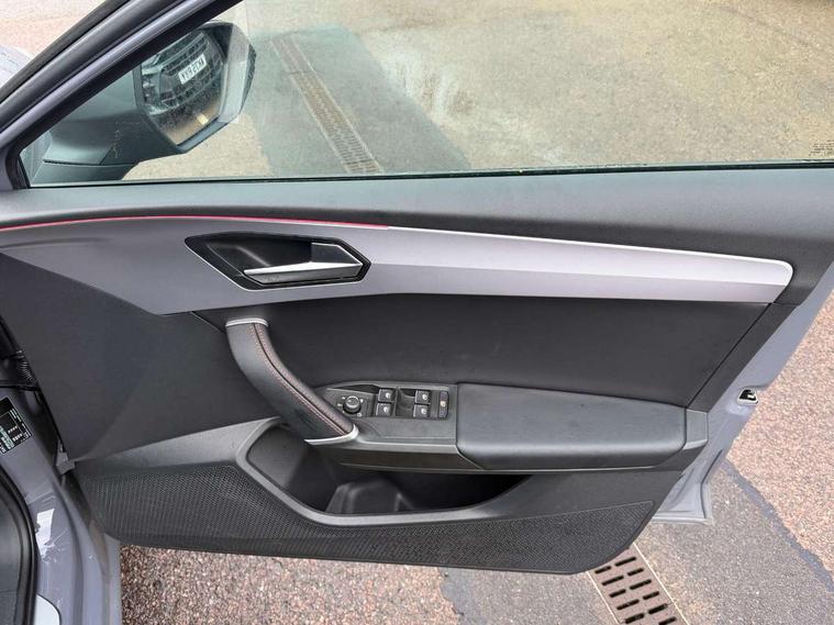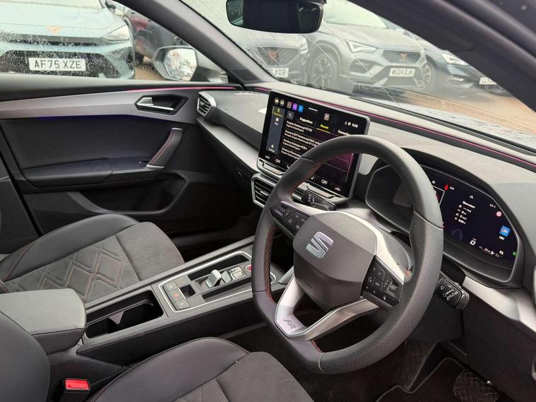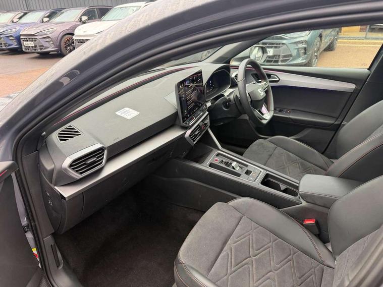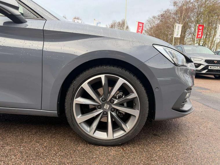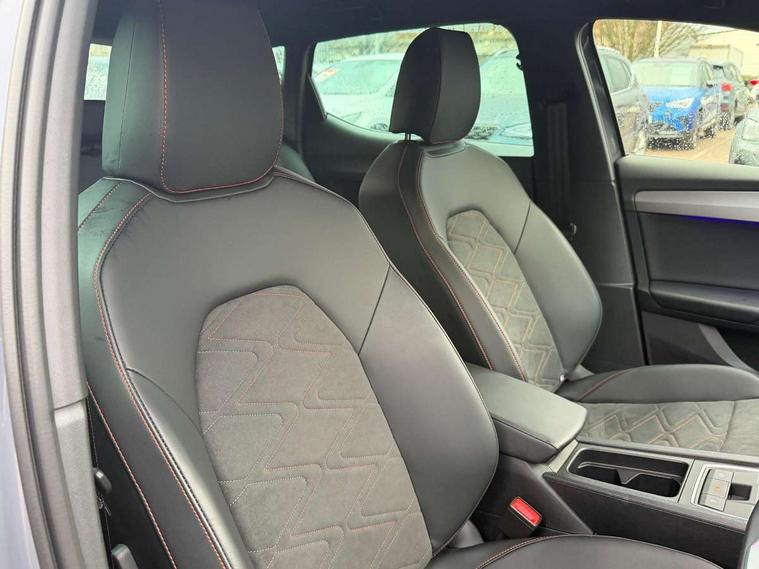 Digital cockpit, E-call, Front assist with forward collision warning braking reaction to vehicles, pedestrians and cyclists, Full link smartphone integration with Mirror Link, wireless Apple CarPlay and wired Google Android Auto, Lane assist, Lockable tailgate, Park assist (inc front/rear parking sensors), Power assisted speed sensitive electro-mechanical steering, Rear view camera, RPM, trip computer, outside temp gauge, instrument light brightness, low fuel warning light, lights on reminder, gearshift indicator, SEAT drive profile with 4 modes (Eco/Normal/Sport/Individual), throttle response and gearshift mode, Service interval indicator, Start/stop system with regenerative braking, Sports suspension, XDS electronic differential lock and dynamic traction support, 7 speakers, Auxiliary input socket, Auto dimming rear view mirror, Body colour door handles, Body coloured bumpers, Dark tinted rear windows, Door mirror LED indicator lights, Dynamic headlight range control, Electric adjustable/heated/folding door mirrors with memory, Electric front/rear windows, FR sports bumper, Illuminated front door sill, LED front fog lamps, LED Headlights with dynamic turn signals, LED tail lights and rear fog lights with rear coast to coast lighting, Rear side wing doors, Rear wash/wipe, Separate daytime running light with automatic headlight control and coming home feature, Third brake light, Welcome light silhouette from exterior mirrors, Windshield wiper intermittent control with light/rain sensor, 12v power point in centre console, 3 seat bench in 2nd row, 60/40 split rear bench seat with armrest, Ambient lighting with glovebox, footwell and single monocolour, Black headlining, Dust/pollen filter, Folding boot cover, Four x USB Type C ports, Front and rear height adjustable headrests, Front and rear reading lights X 4, Front centre armrest, Front seatback storage pockets, Heated front seats, Height/reach adjust steering wheel, Interior wraparound lighting (FR), ISOFIX points in outer rear seats with top tether anchorage points, Luggage tie-down hooks, Lumbar adjustment for front seats, Manual driver seat with memory and height adjustable passenger seat, Microsuede cloth upholstery, Single front passenger seat, Sunvisors with covered illuminated mirror, Three zone climate control, Media system plus with navigation - Leon, 3 point seatbelts on all rear seats, ABS, Brake control system - ESC and brake booster, Child proof door locks, Driver and front passenger airbags with front passenger airbag de-activation, front side and curtain airbags, Electronic parking brake, Extended safety system - seat belt tensioner, window closure and hazard lights, Hill hold control, Rear disc brakes, Seat belt reminder for front and rear seats, Tiredness recognition system, driver alert system, Tyre pressure monitoring system, Anti theft alarm system with interior monitoring in cab, backup horn and towing protection, KESSY Go (Keyless start), Locking wheel bolts, Wireless phone charging, Chrome interior detailing, 18" Performance machined alloy wheels with 92Y tyres, Tool kit,