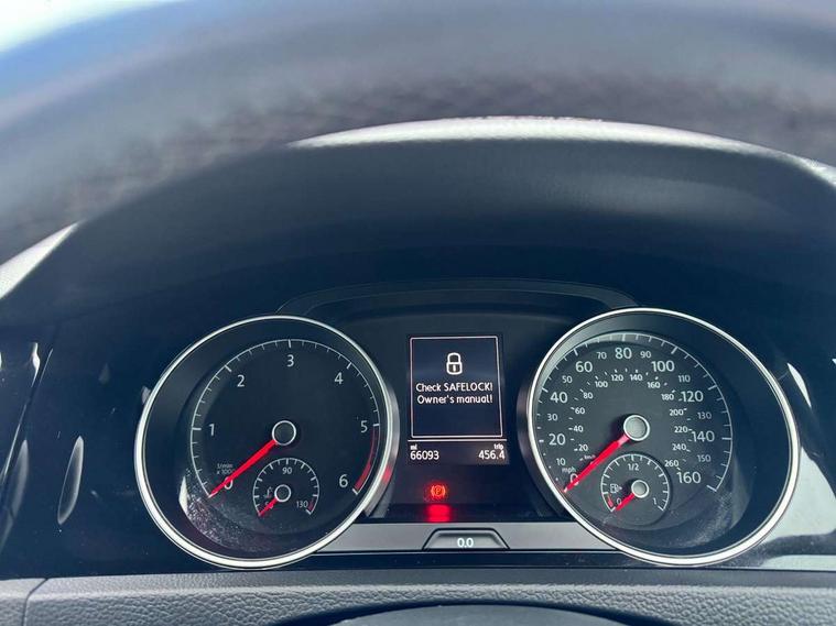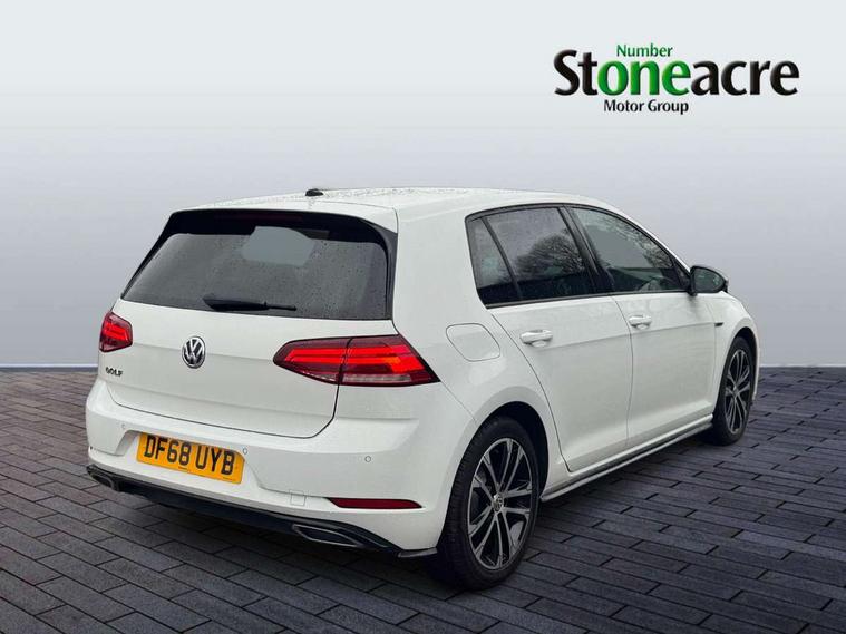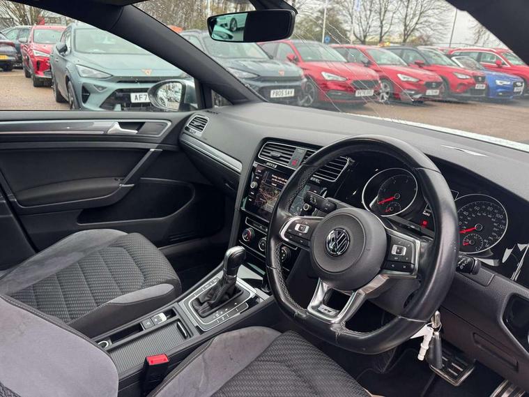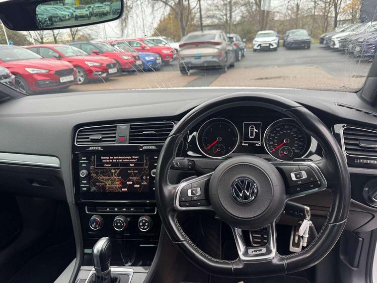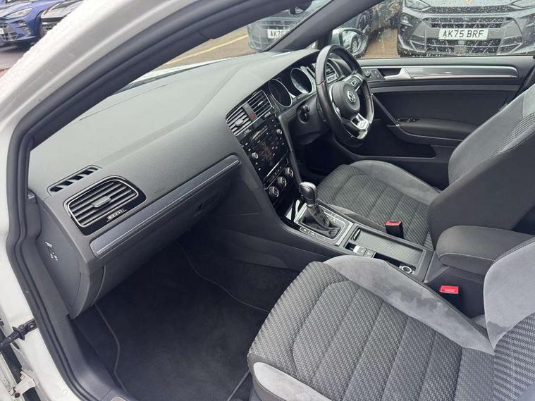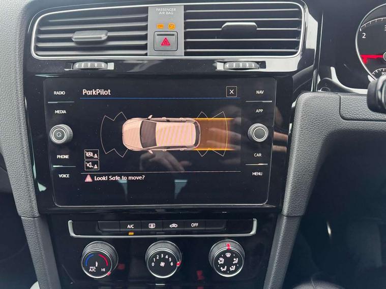 'Lights On' Reminder warning buzzer, ACC - Adaptive cruise control with front assist, forward collision warning, distance monitoring, city emergency brake and speed limiter, Bluetooth telephone and audio connection for compatible devices, Brake pad wear indicator warning light, Driver alert system, Driver profile selection, Driving Mode Selection with four preset modes - Eco, normal, sport or individual modes, Front assist, radar sensor controlled distance monitor, city emergency braking + predictive pedestrian protection, Front assistant collision mitigation, Instrument cluster in white, Misfuelling protection device, Multifunction computer with visual gear change recommendation for fuel consumption, Power assisted speed sensitive electro-mechanical steering, Speed limit display, Speedo, rev counter, electronic odometer, trip, service interval display, exterior temperature and fuel gauge, Stop/start system, Ultrasonic front and rear optical and audible parking sensors, Warning buzzer and light for front seatbelts unfastened, Battery regeneration during braking, Diesel particulate filter, Lowered sports suspension, XDS electronic differential lock, Composition media system, DAB Digital radio receiver, MDI multi device interface, MP3/WMA compatability, Multi device interface (MDI) with USB connection, Premium USB cable in choice of either Apple or Android smartphone compatibility, SD card slot, SMS Functionality, Title and cover art display, 4 X 20W output, USB connection and socket, USB and SD card connectivity, Automatic dimming rear view mirror/rain sensor, Black front air intake and radiator grille with chrome insert, Black sports rear diffuser, Body colour bumpers, Body colour door handles, Body colour door mirrors with integrated indicators, Chrome grille surround, Chrome trimmed front air intake surrounds, Electric front windows, Electric rear windows, Electrically adjustable and heated door mirrors, Glavanised body, Heated rear windscreen, High level 3rd brake light incorporating LED Technology, Left and right chrome effect trapezoid dummy exhaust tailpipe surrounds, Range adjustable headlights via infotainment system with LED daytime running lights, Rear fog lamp, Rear number plate lights incorporating LED technology, Rear tinted glass 65% light absorbing from B pillar backwards, Rear window aerial, Rear window wash/wipe with intermittent wipe, Reflectors in all doors, Remote electrically foldable door mirrors, door mirror puddle lights and reverse activated kerb-view adjustment on passengers door mirror, Stainless steel door sill protection, Windscreen wipers/ intermittent wipe + 4 position delay, 12V socket in luggage compartment, 3 rear headrests, 4 load lashing points in luggage compartment, 60/40 split folding rear seat backrest, Bag hook in luggage compartment x 2, Black roof lining, Cooled glovebox, Dust/pollen filter, Front + rear carpet mats, Front centre armrest with storage compartment and two rear air vents, Front footwell lights, Front seat back storage pockets, Grab handles front x 2, rear x 2 with integrated coat hooks, Height and reach adjustable steering wheel, Illuminated vanity mirrors, Instrument lighting white adjustable panel illumination, Interior light delay, Isofix preparation for 2 rear child seats, LED front and rear reading lights, Load through provision with rear centre armrest and cupholders x2, Luggage compartment light, Multifunction leather steering wheel with leather trimmed gear knob including paddle shift, Overhead storage box, R Line badge, Stainless steel pedals, Storage box in luggage compartment, Storage compartment in roof console with cover, Storage compartments in front doors, Storage compartments in rear doors, Stowable luggage compartment cover, Sun visors, Three spoke multi-function leather trimmed steering wheel and gearknob, Variable boot floor, height adjustable and removable, Ambient lighting pack - Golf, Convenience Pack - Golf, Light and Sight pack - Golf, Mirror pack - Golf, R Line Styling pack - Golf, 3 rear three point seatbelts, Airbags - Driver's and front passenger's, curtain airbag, Driver's knee, front side impact and passenger's airbag deactivation switch, Anti-lock Braking System (ABS) with Hydraulic Brake Assist (HBA), Automatic post collision braking system, Child locks on rear doors, Driver/Passenger optimised head restraints, Electronic parking brake with auto hold, Electronic stability control (ESC) including Electronic differential lock (EDL) and ASR (Traction control) with deactivation via infotainment system, Pre crash preventive occupant protection, Three point height adjustable front seatbelts with tensioners, Tyre pressure loss indicator, Alarm with interior protection and deactivation via infotainment system, Electronic engine immobiliser, Remote central locking with 2 remote folding keys, Chrome plated air vent surround, Chrome plated electric mirror adjustment light switch surround, Dark Diamond decorative inserts in dash and door panels, Piano black centre console with aluminium inlay, Steel space saver spare wheel,