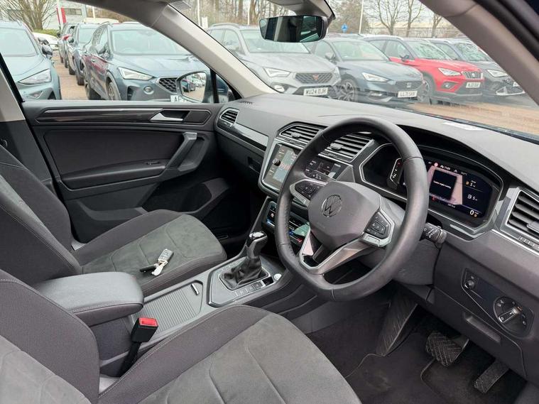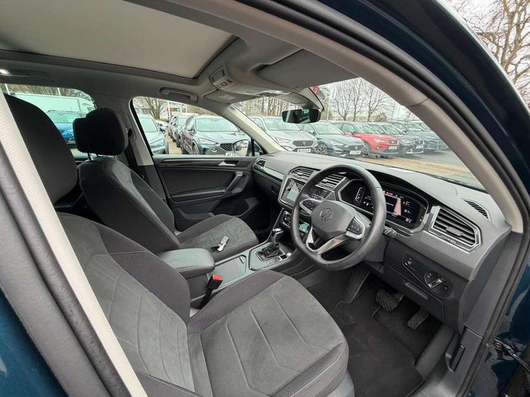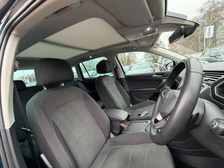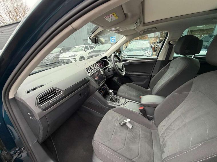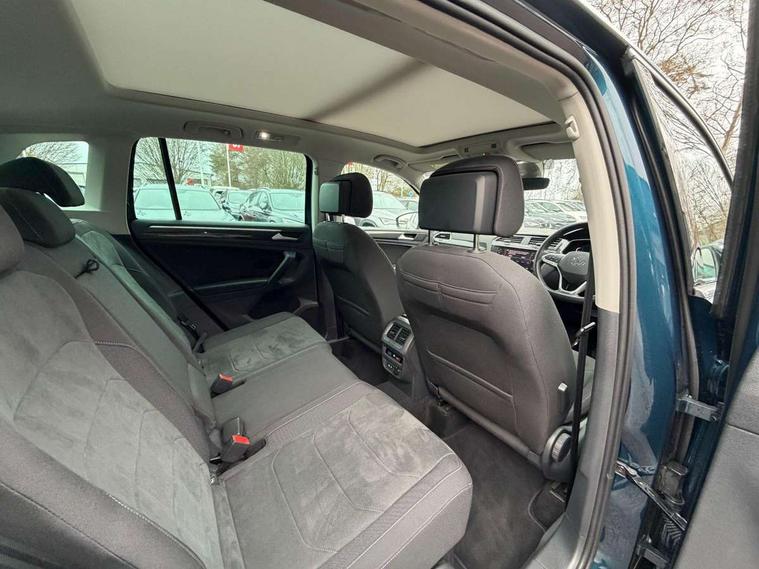 Adaptive cruise control ACC stop and go including speed limiter, App-Connect incl. App-Connect Wireless for Apple CarPlay and Android Auto, Bluetooth phone integration system, Digital Cockpit Pro - Active info display, Distance control assist, Driver alert system, Driver profile selection, Dynamic road sign display, eCall emergency call system, Electromechanical speed sensitive power steering, Lane keeping system Lane Assist, Lights on warning, Multifunction front facing camera, Outside temperature display, Premium multifunction display with multi colour display, Service interval indicator, Start/stop system with regenerative braking, Tailgate/trunk lid unlocking from outside, Warning sound and light for doors and tailgate open, Battery regeneration during braking, XDS electronic differential lock for improved traction and handling, 2 USB-C ports in the front, 1 USB-C charging socket on the center console in the rear, Diversity antenna for FM reception, Radio, SD card slot, Simultaneous pairing of 2 compatible mobile devices, SMS functionality - read, compose and send SMS messages using touch-screen display, Title and cover art display, Auto dimming interior rear view mirror, Automatic headlight control system, Body colour door handles, Body coloured bumpers, Coming/leaving home lighting function, Dynamic headlight range control, Front and rear electric windows, Heated rear window, High level 3rd brake light, IQ light with advanced high beam control and dynamic light assist for LED matrix headlamps + Dark red rear combination lamp in LED technology, Laminated safety glass windshield, heat and sound insulating, LED rear number plate lights, LED separate daytime running light, Poor weather light and cornering light, Power adjustable, folding and heated door mirrors with surround lighting, front passenger exterior mirror lowering function, Privacy glass for rear side windows and rear window, Rain sensor windscreen wipers, Rear exhaust tailpipe, Rear fog lamp, Rear windscreen washer and wiper with interval delay, Side and rear windows in heat insulating glass, Tilting and sliding panoramic sunroof with rear panoramic sunroof, Trailer Stability Programme, Windscreen wipers/ intermittent wipe + 4 position delay, 12V outlet in center console rear and in luggage compartment, 2 cup holders in front, 2 LED front reading lights, 2 LED rear reading lights, 3 rear headrests, 4 load lashing points, 40:20:40 split folding rear seats, Air Care Climatronic 3 zone automatic climate control with enhanced air filter and controls in the rear, Backrest release for left front seat, Door and side trim panel in foam film and woven fabric, Front + rear carpet mats, Front footwell illumination, Front seats head restraints (x-adjustment), Height adjustable front seats, Height/reach adjust steering wheel, Instrument lighting white adjustable panel illumination, Interior light with delay, Isofix Preparation 2 Rear child seats, Leather gear knob, Lockable cooled glovebox, Luggage compartment lighting, Rear bench seat asymetrically split folding, longitudinally movable and folding with load-through hatch and center armrest, Remote unlocking for rear seat backrest, Removable luggage cover, Safety optimised front head restraints, Sliding/reclining rear seats, Standard rear seat release, Storage compartment in driver's door, Storage compartment in passenger's door, Storage compartment in rear doors, Storage compartments in luggage area left and right, Storage tray on dashboard, Sun visors with illuminated vanity mirrors, Variable boot floor, height adjustable and removable, Ambience pack - Tiguan, Chrome pack - Tiguan, Easy open and close pack with safelock - Tiguan, 3 point seat belt for centre rear seats, 3 point seat belts with seat belt pretensioners for the outer rear seats, Active bonnet, Curtain airbags for front and rear passengers, Driver/Front Passenger airbags, Drivers knee airbag, Electronic parking brake with auto hold, Electronic Stability Control with driver steering recommendation, ABS, ASR, EDL, EDTC and trailer stabilization, Front assist with autonomous emergency braking (for Adaptive Cruise Control ACC up to 130 mph), Front disc brakes, Front passenger airbag deactivation, Front side airbags, Height adjustable front 3 point seatbelts + pretensioners, Hill hold control, Pedestrian monitoring system, Proactive passenger protection system in combination with front assist, Rear disc brakes, Rigid safety cell with front and rear crumple zones, Two tone horn, Warning sound and light for front seat belts if unfastened, Warning triangle, Anti theft alarm system with interior monitoring, backup horn and towing protection, Anti theft wheel bolts, Central locking system with safelock radio remote control and 2 remote control folding keys, Electronic engine immobiliser, Tool kit,