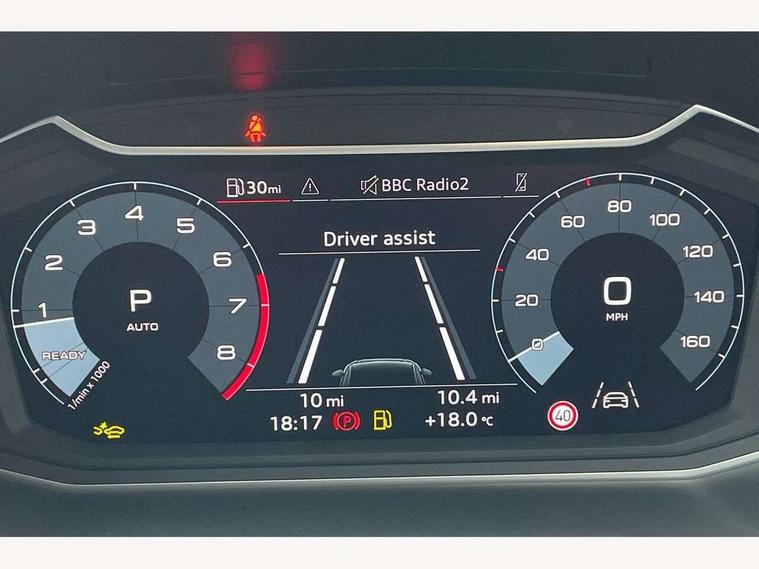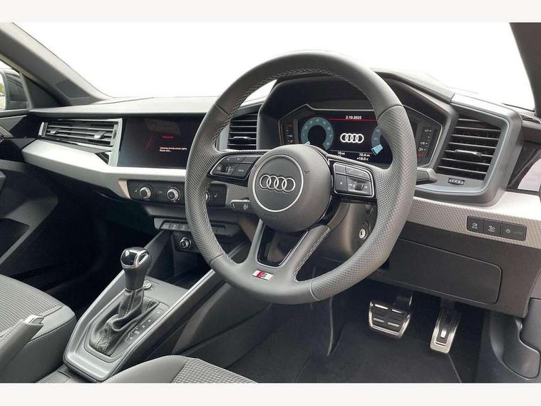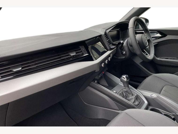 10.25" Digital instrument cluster display classis style instrument dials + speed, odometer, time, outside temperature, telephone menu + fuel level warning, Advanced driver attention and drowsiness monitor, Audi connect emergency call and service, Audi drive select, Audi remote connect and control, Audi smartphone interface, Bluetooth interface, Camera based traffic sign recognition, Cruise control, Driver's information system, Electromechanical power steering, Lane departure warning system, Rear parking sensor, Service interval indicator, Speed limiter, Start stop system with recuperation, Voice control system, Washer fluid level indicator, Sports suspension, 2 x USB type C connection points, 6 loudspeakers, DAB Digital radio, MMI radio plus with 10.1" colour MMI display screen and MMI touch, Auto dimming rear view mirror, Body coloured door mirrors, Door sill trims with aluminium inlays and S line logo in front, Electric front and rear windows, Electrically adjustable, heated, folding door mirrors with integrated LED side indicator, Front side air inlets in grained matt black and C frame in anthracite black, Headlight cleaning system, Heat insulating glass windscreen and side windows, Heated rear windscreen, High level LED brake light, LED daytime running lights, LED headlights with range control LED rear lights + dynamic rear indicators, Light and rain sensors, Privacy glass, Radiator grille and rear diffuser in matt anthracite black, Radiator protective grille frame in matt aluminium silver, Rear fog lights, Rear side wing doors, Rear wiper, S line badges on front wings, Side front spoiler lips in grained matt black, 12V socket in centre console with two cup holders, 3 rear seats with headrests, 3 seat bench in 2nd row, 3 spoke leather multi-function plus steering wheel features S badging and grips in perforated leather with contrast stitching, 40:60 Split folding rear seat or fully collapsed, Black cloth headlining, Front and rear velour black floor mats with contrast stitching in fine silver, Front head restraints, Front passenger seat, Height and reach adjustable steering wheel, Interior lighting includes roof module, front and rear reading lights and right luggage compartment lighting, ISOFIX child seat mounting for front passenger and outer rear seats including top tether attachment point of outer rear seats, Leather gear knob with aluminium trim, Leather handbrake grip, Manual air conditioning, Manual height adjustable for driver and front passenger seat, Manually adjustable lumbar support in front seats, Stainless steel pedals, Ambient lighting package - A1, Luggage compartment pack - A1, S line exterior styling pack - A1 Sportback, 3x3 point rear seatbelts, Audi pre-sense front with pedestrain and cyclist recognition, Brake assist function, Driver and front passenger airbag with front side and head airbags, Electronic Stability Control including ABS, EBD, ASR and EDL, Front passenger airbag deactivation switch, Hill hold assist, Manual rear child locks, Seatbelt height adjustment for front seats, Seatbelt monitoring, Tyre pressure loss indicator, Warning triangle and first aid kit, Anti theft alarm, Anti theft wheel bolts, Immobiliser, Remote control key with safelock, Aluminium trim for control switches, air vents and digital instrument cluster, Black dashboard, Silver grey inlays polygon structure in diamond paint finish, Structured grey accent surfaces insert of air vents, interior door handle recesses and centre console in quartz paint finish,