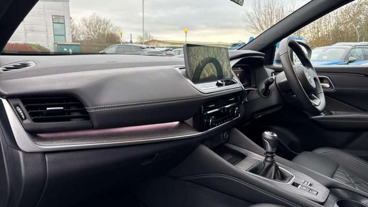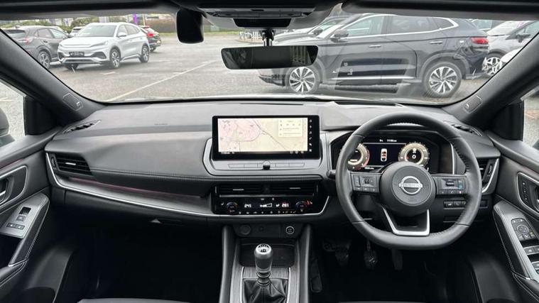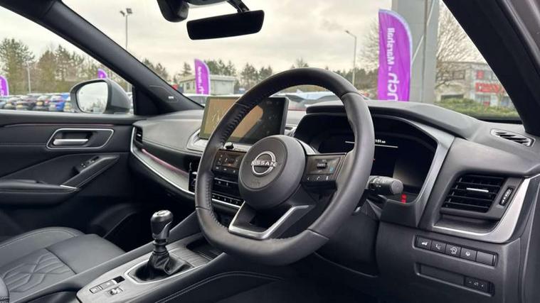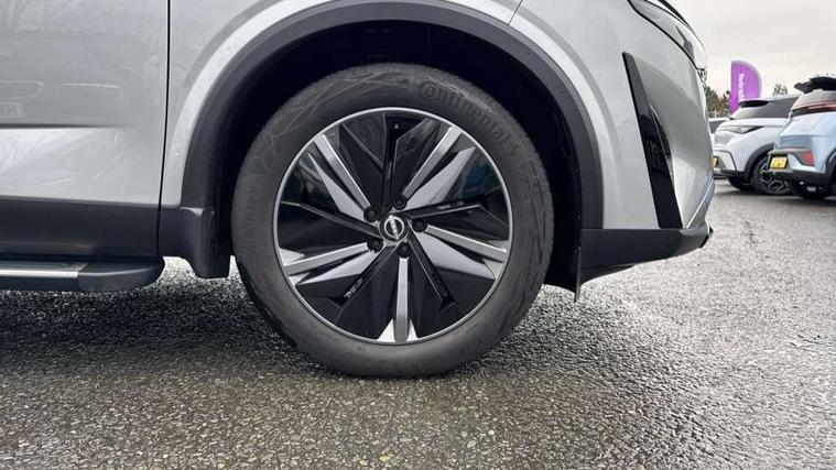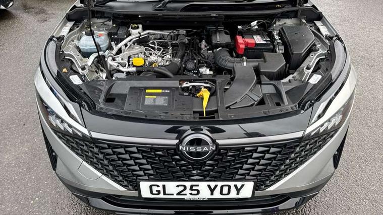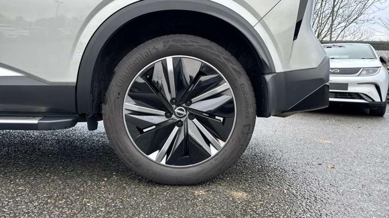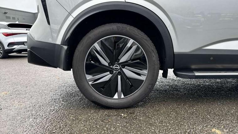 2 front USB-C ports, 2 rear USB-C ports, 360 degree Intelligent around view monitor with moving object detection, Advanced windscreen head up display, Blind spot warning, Drive assist, Drive assist custom mode, Drive modes (sport, normal, eco), Driver drowsiness and attention warning, Electric speed sensitive power steering, Emergency and breakdown call, Emergency lane keep assist, Emergency Stop Signal (ESS), Engine start/stop button, Event data recorder, Front and rear parking sensors, Full Digital 12.3" TFT Digital Combimeter, Google virtual personal assistance, Hands free power tailgate, Idle stop/start system, In-car WIFI hotspot, Intelligent Cruise control (ICC), Intelligent driver alert system, Intelligent forward collision warning, Intelligent lane intervention, Intelligent speed assist, Lane departure warning system, Nissan connect 12.3 inch touchscreen infotainment system, Nissan connect navigation with google maps, Nissan connect services 2.0 (Google Automotive System), Outside temperature sensor, Rear cross traffic alert, Remote control services - door locks, lights, horn and car locator, Reversing detection, Traffic sign recognition with legal speed adjustment, Trip computer, Wireless Apple CarPlay/Android Auto, Wireless charging pad, Limited slip differential, 6 speakers, AM/FM audio system with DAB, Bluetooth audio streaming, Auto dimming frameless rear view mirror, Auto rear wiper when reversing, Body colour mirror caps, Body coloured door handles, Bodyside mouldings, Chrome side window finisher, Electric auto folding door mirrors, Electrically adjustable and heated door mirrors with LED turn indicator, Follow me home headlights, High beam assist, Intelligent auto headlights, LED 3rd brake light, LED daytime running lights, LED headlights with adaptive driving beam, LED rear lights, LED sequential turn lights, One touch front and rear electric windows with remote opening and closing, One touch passenger window, Partially body coloured bumpers, Rain sensing wipers, Rear privacy glass, Rear roof spoiler, Rear side wing doors, Rear styling plate, Reverse tilting door mirrors, Shark fin antenna, Silver roof rails, Splash free rain sensing wipers, Super RED rear LED lights, Super UV and infrared cut glass, Thermaclear heated windscreen, 12v power socket in dashboard and luggage, 3 bench rear seats in 2nd row, 3 rear headrests, 60/40 split folding rear seat bench, Chrome interior door handles, Dark headlining, Driver and passenger sunvisors with illuminated vanity mirrors, Driver seat back pocket, Dual zone automatic climate control with pollen filter, Electrically adjustable driver seat, Electrically adjustable lumbar support for driver, Fixed Glass roof with electric sunshade, Front centre console and armrest, Front cupholders, Front door with bottle holders, Heated front seats, Heated steering wheel, Height adjustable front headrests, Height adjustable passenger seat, Leather shift knob, Luggage board system, Luggage space lighting, Manual adjustable lumbar support for passenger, Multifunction steering wheel, Passenger seat back pocket, Quilted/PVC upholstery, Rear door bottle holders, Rear seat armrest with 2 cupholders, RGB ambient light (Full area coverage), Single front passenger seat, Smooth leather steering wheel, Tilt/telescopic adjustable steering wheel, Two rear isofix child seat anchorage points with top tether, 3x3 point rear seatbelt pretensioners + load limiters, ABS with EBD and brake assist, Autonomous emergency braking, Child locks on rear doors, Curtain and front side, far side airbags, Driver and passenger airbags, Driver, passenger and 2nd row rear seat belt reminder, Electric handbrake with auto hold function, Front seatbelt pretensioners + load limiters, Height adjustable front seatbelts, Hill start assist, Intelligent blind spot intervention, intelligent front emergency braking, Intelligent rear automatic braking, Tyre pressure monitoring system, Vehicle dynamic control, Engine immobiliser, Intelligent key with walk away lock and approach unlock functions, Remote central door locking with deadlocking, Thatcham alarm, 19" Diamond cut alloy wheels, Tyre puncture repair kit,