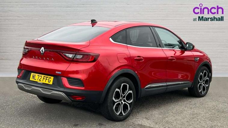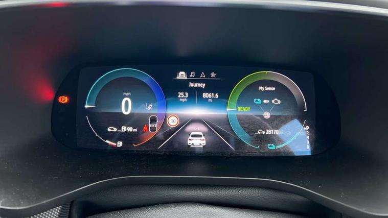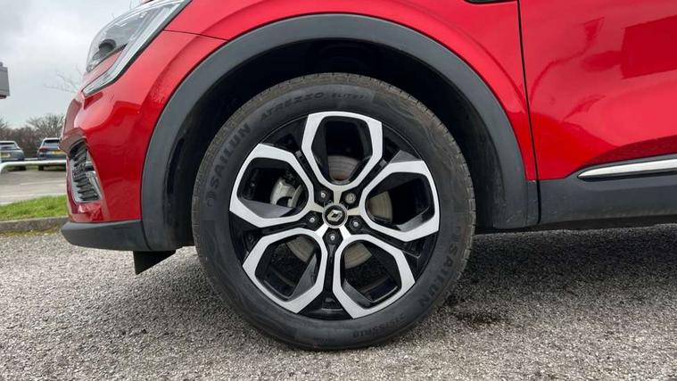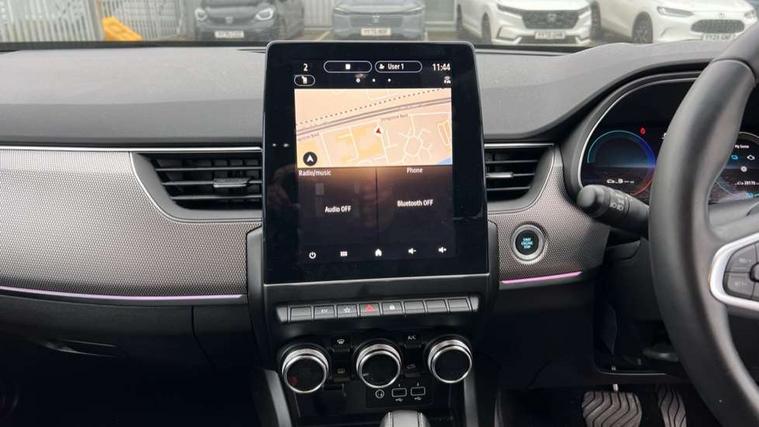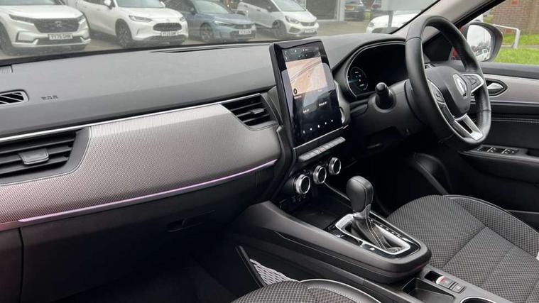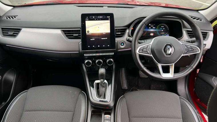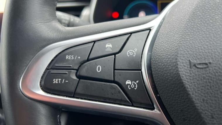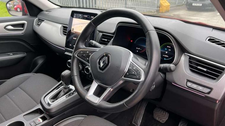 7" TFT Driver information display, Blind spot warning, Bluetooth system, EASY LINK 9.3" portrait touchscreen with navigation, Google search and traffic information, eCall emergency call system, Eco mode, EV button to activate pure mode, Front and rear parking sensors, Gear change indicator, Lane departure warning, Lane keep assist, Multi-sense - 3 driving modes and 8 ambient lighting, Rear cross traffic alert, Rear view camera, Renault automatic emergency assist, Smartphone integration compatible with Apple CarPlay and Android Auto, Traffic sign recognition with over speed prevention, Trip computer, Variable assistance electric power steering, Arkamys classic sound system with 6 speakers, DAB radio, USB port, 3rd brake light, Auto dimming rear view mirror, Automatic headlights, Automatic high / low beam, Automatic windscreen wipers with rain sensor, Black side door protection with chrome insert, Body coloured bumpers, C-shaped LED front signature lighting, Chrome decopart on wing (fender molding), Chrome window lower lining, Extra tinted rear windows and tailgate, Front and rear electric windows, Front driver window with one touch facility and anti-pinch function, Front grille with chrome on upper part, Full LED headlights, Grey front and rear skid plates, Heated rear window, Rain sensor, Rear windscreen wiper, Shiny black shark fin antenna, Side mirrors adjustable electrically, electrically foldable, with defrosting and temperature sensor, automatically foldable at vehicle closure, 3 seat bench in 2nd row, 60:40 split and fixed base rear seats, Automatic climate control with combined filter, humidity sensor and AQS, Central console with storage, Front and rear head restraints, Height and reach adjustable steering wheel, ISOFIX child seat fixing points on rear outermost seats, Leather steering wheel, LED front and rear roof lights, Rear air vents, Single front passenger seat, 3x3 point rear seat belts, ABS+EBA, Active emergency braking system, B Brake Mode - One pedal driving with increased regenerative braking, Distance warning alert, Driver airbag, Driver and passenger front and side airbag deactivation, Driver and passenger side airbags, Driver height adjustable seat belt, Electronic parking brake with auto hold, ESC (Electronic Stability Control), Front and rear no seatbelt warning sound, Front curtain airbags, Front head airbags, Hill start assist, Passenger airbag, Tyre pressure warning light, Anti drill door locks and locking fuel cap, Central door locking, Deadlocking system, Hands free keycard with Keyless access and start, RAID (Renault Anti-Intruder Device) automatic door locking, Rear side wing door and window child locking function (front driver door control panel), Superlocking, Thatcham alarm, 18" Pasadena diamond cut alloy wheels with grey inserts,