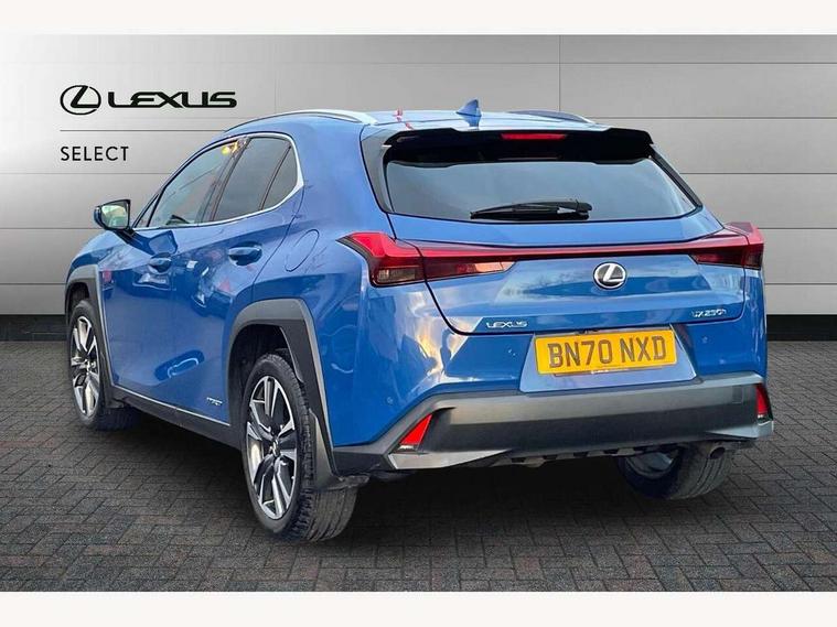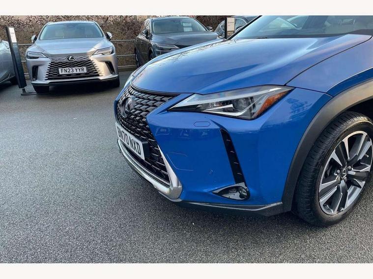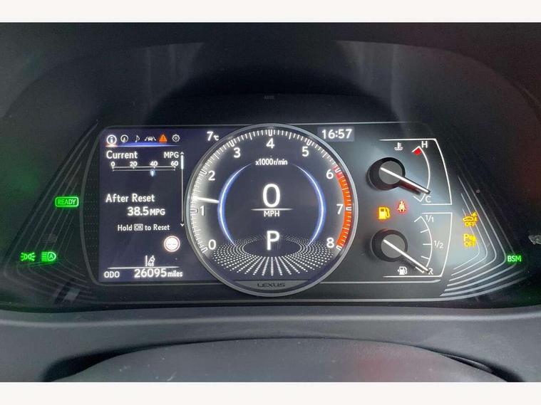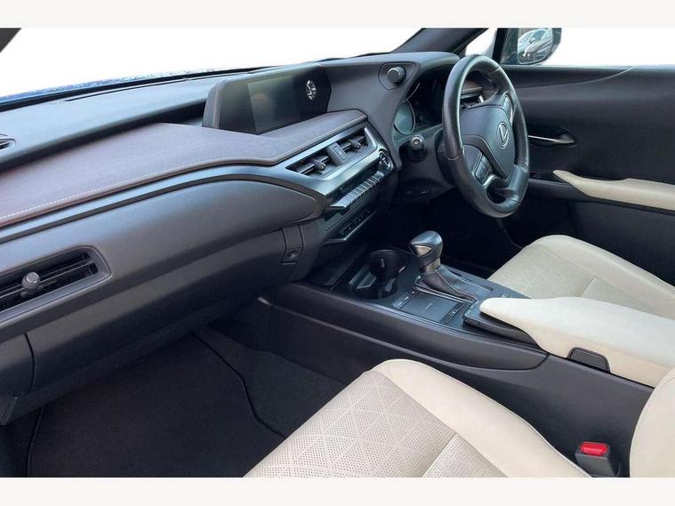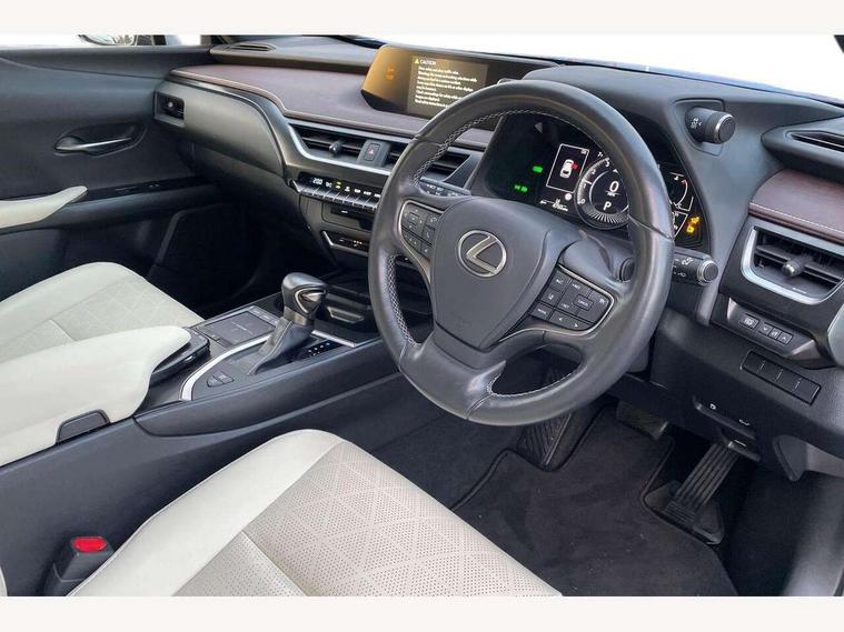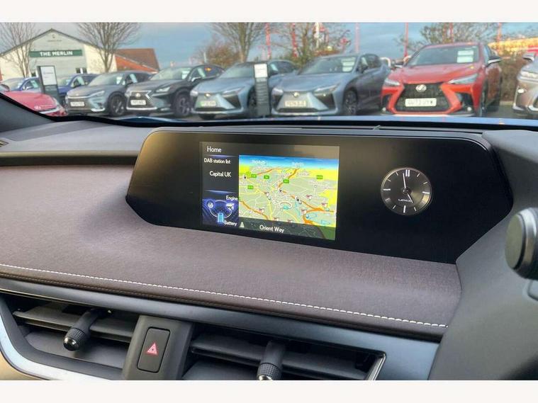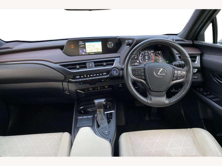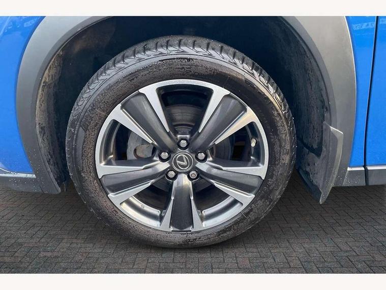 4 driving modes EV/Eco/Normal/Sport, 7" Lexus media display, 7" TFT instrument cluster, Analogue clock with GPS function, Apple car play/Android Auto, Compatible mobile phone bluetooth with audio streaming, E-call, Electric power steering (EPS) with speed sensitive features, Lane change flasher function, Lexus link connected services, Lexus safety systems + includes dynamic radar cruise control, pre collision system day and night, lane tracing assist, road sign assist, Push button start, Remote touch interface, Reversing camera with back guide lines, Trip computer, Vehicle Dynamics Integrated Management (VDIM), Vehicle Stability Control (VSC), 2 front USB and 2 rear USB charging points, 6 speakers, AM/FM and DAB radio, AUX socket with VTR compatibility, CD player, Acoustic windscreen, Aero stabilising arch mouldings, Aero stabilising rear lights, Aero ventilated wheels, Aluminium roof rails, Bi-LED (low and high beam) headlights with Auto High Beam (AHB), Body adhesive, laser screw welding and laser brazed roof structure, Electric adjustable/heated door mirrors, Front and rear one touch power windows, with anti-jam protection, Headlight cleaners, LED daytime running lights, LED front and rear fog lights, LED tail lights, Light green UV glass, Rain sensor windscreen wipers, Rear wiper, Shark fin roof aerial, Single hidden exhaust pipe, Towing preparation, 12V accessory port centre console and luggage compartment, 2 cup holders in the front and rear centre console, 2 x folding shopping bag hooks in boot, 2 x sun visors with vanity mirror and lamp, 4 x tie down hooks in the boot, 5 headrests, 6 way driver and passenger manually adjustable front seats, 60/40 split folding rear seat, Card holder installed in driver and passengers sun visors, Centre armrest with storage, Driver and passenger door pocket, Dual zone electronic climate control + Nano-E humidity sensor, Glovebox, Leather gear lever, Leather steering wheel, LED interior illumination, Map pockets in the rear of passenger's front seat, Premium fabric upholstery, Rear air vents with 2 USB chargers, Rear armrest with 2 cupholders, Storage tray under audio panel, Textile carpet mats, Tilt/reach adjustable steering column, Under deck storage, Under desk side storage, 2 x Isofix child rear seat restraints, 3x3 point rear seatbelts, Anti-lock braking system (ABS), BAS (Brake Assist System), Driver and front passenger 2 stage airbag, Driver and front passenger knee airbag, Driver/front passenger side airbags, EBD - Electronic brakeforce distribution, ECB (Electronically Controlled Brake System), Electric parking brake, Front adjustable seatbelt anchor points, Front and rear curtain shield airbags, Front outer seatbelt+pre-tensioners, force limiter+tension reduction: 3-point with active safety link to PCS, Hill start assist control (HAC), Passenger airbag cut-off device, Rear outer seatbelt+pre-tensioners, force limiter+tension reduction: 3-point with active safety link to PCS, Centre belt w/o pre tensioner+force limiter, Secondary Collision Brake (SCB), TRC (Traction Control), Tyre pressure warning, 2 x remote key fobs, Anti theft system : Alarm instruction sensor, glass breakage sensor and engine immobiliser, Locking wheel nuts, Remote central door locking, Speed sensitive auto door locking, Two motion door lock with double lock, VIN Window etching, 17" alloy wheels, Tyre repair kit,