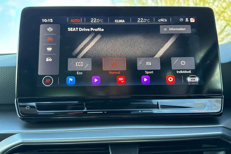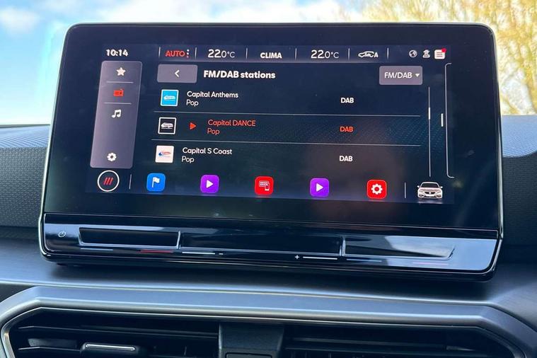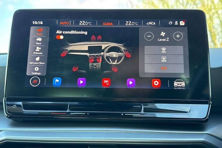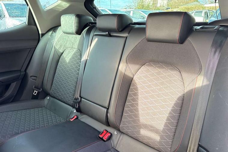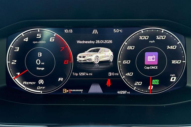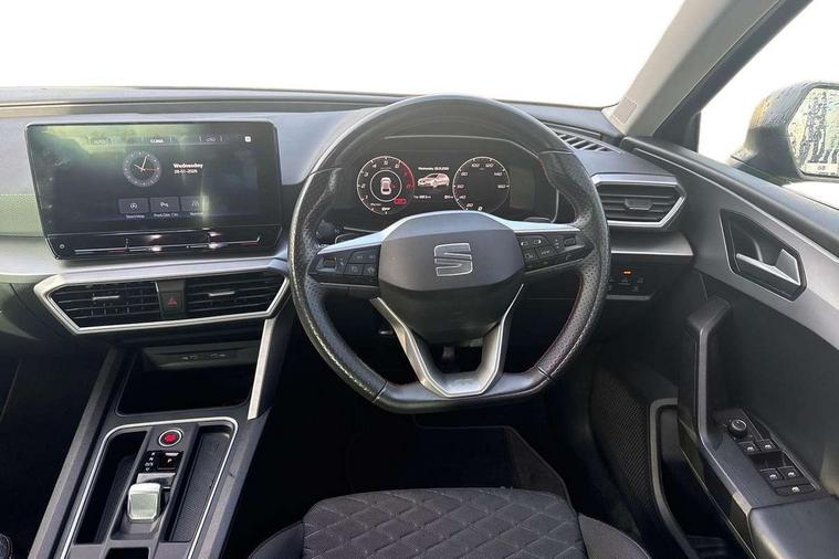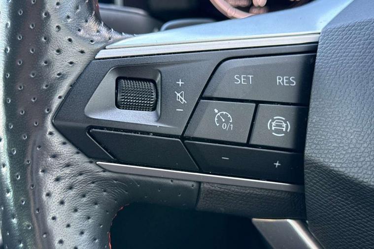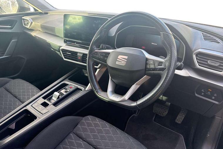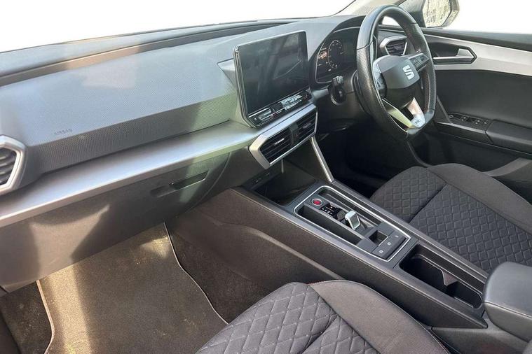 Digital cockpit, E-call, Front assist with forward collision warning braking reaction to vehicles, pedestrians and cyclists, Full link smartphone integration with Mirror Link, wireless Apple CarPlay and wired Google Android Auto, Lane assist, Lockable tailgate, Park assist (inc front/rear parking sensors), Power assisted speed sensitive electro-mechanical steering, RPM, trip computer, outside temp gauge, instrument light brightness, low fuel warning light, lights on reminder, gearshift indicator, SEAT drive profile with 4 modes (Eco/Normal/Sport/Individual), throttle response and gearshift mode, Service interval indicator, Start/stop system with regenerative braking, Sports suspension, XDS electronic differential lock and dynamic traction support, 7 speakers, Auxiliary input socket, Auto dimming rear view mirror, Body colour door handles, Body coloured bumpers, Cosmo grey exterior mirrors with integrated LED indicators, Dark tinted rear windows, Electric front/rear windows, Electrically adjustable, heated and folding door mirrors, FR sports bumper, Illuminated front door sill, LED front fog lamps with cornering function, LED headlights and tail lights with dynamic turn signals, welcome light silhouette from exterior mirrors and dynamic headlight range control, LED rear fog lamp, Rain sensing wipers, Rear side wing doors, Rear wash/wipe, Separate daytime running light with automatic headlight control and coming home feature, Third brake light, 12v power point in centre console, 3 seat bench in 2nd row, 60/40 split rear bench seat with armrest, Ambient lighting with glovebox, footwell and single monocolour, Driver/passenger manual seat height adjustment, Dust/pollen filter, Folding boot cover, Four x USB Type C ports, Front and rear height adjustable headrests, Front and rear reading lights X 4, Front centre armrest, Front seatback storage pockets, Height/reach adjust steering wheel, ISOFIX points in outer rear seats with top tether anchorage points, Luggage tie-down hooks, Lumbar adjustment for front seats, Single front passenger seat, Sunvisors with covered illuminated mirror, Three zone climate control, Two tone cloth upholstery, Media system plus with navigation - Leon, 3 point seatbelts on all rear seats, ABS, Brake control system - ESC and brake booster, Child proof door locks, Driver and front passenger airbags with front passenger airbag de-activation, front side and curtain airbags, Electronic parking brake, Extended safety system - seat belt tensioner, window closure and hazard lights, Hill hold control, Rear disc brakes, Seat belt reminder for front and rear seats, Tiredness recognition system, driver alert system, Tyre pressure monitoring system, Anti theft alarm system with interior monitoring in cab, backup horn and towing protection, KESSY Go (Keyless start), Locking wheel bolts, Wireless phone charging, Chrome interior detailing, 17" Dynamic Bi-spoke alloy wheels with 91W tyres, Tool kit,