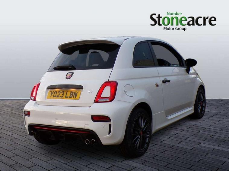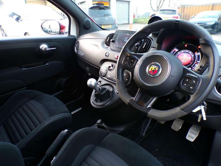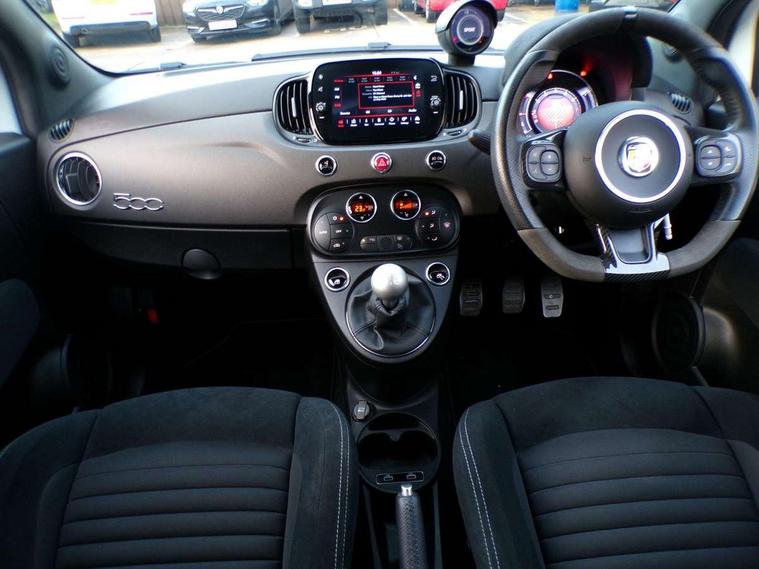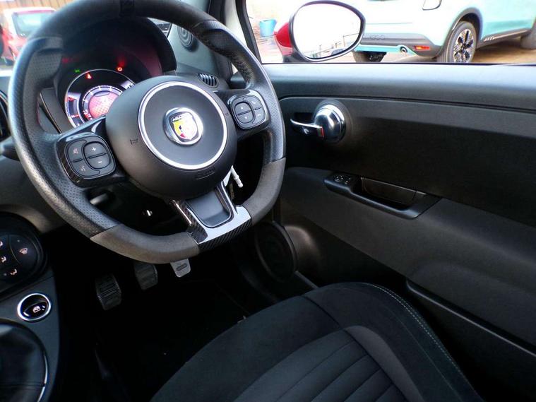 7" TFT instrument display with sports mode, Alcantara cockpit, Apple car play/Android Auto, Dualdrive PAS, eCall emergency call system, Garrett turbo, Rain and dusk sensors, Rear parking sensors, Sports button, Trip computer, Wakeup screen for 7" radio, Koni front and rear suspension with Frequency Selective Damping technology, Torque transfer control (TTC), 3rd brake light, 695 side badge, Dual mode record monza exhaust system with four tailpipes, Electric adjustable heated door mirrors, Electric front windows, Front fog lights, LED daytime running lights, Oil cap with key, Privacy glass, Rear window defroster, Rear wiper, Tar cold grey front and rear bumper mouldings and door handles, 12V socket, 2 seat bench in 2nd row, Aluminium gearknob, Driver/front passenger seat height adjustment, English handbook, Fabric abarth corsa racing upholstery by sabelt with anthracite grey shell, Floor mats, Front head restraints, Front passenger seat memory, Glovebox, Height adjustable steering wheel, High performance BMC air filter, Interior stowage net, Rear headrests, Single front passenger seat, Sports steering wheel in leather and Alcantara with carbon fibre detailing, Stainless steel pedal covers, Cool Pack - 695/695C, Tech Pack - 695/695C, 240x11 mm Drilled rear brake discs, 305x28 mm Drilled and ventilated front brake discs, ABS, Driver and passenger airbags, Drivers knee airbag, ESP + ASR/MSR + HBA + Hill holder, Front side airbags, Head protection side airbag, Tyre pressure monitoring system, Window airbags, Alarm, Immobiliser, Power door locks, Remote central locking, Tar cold grey dashboard, Fix and go kit,