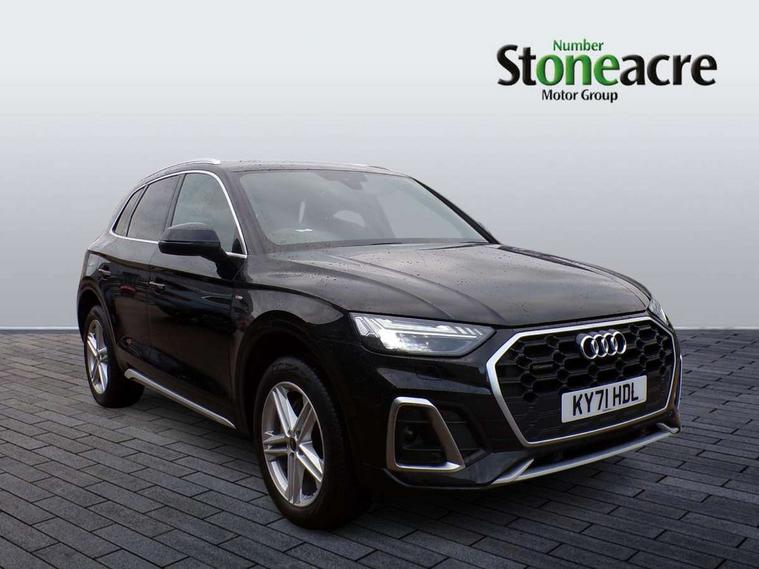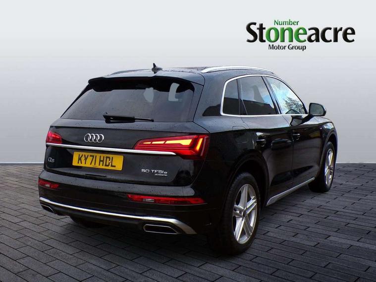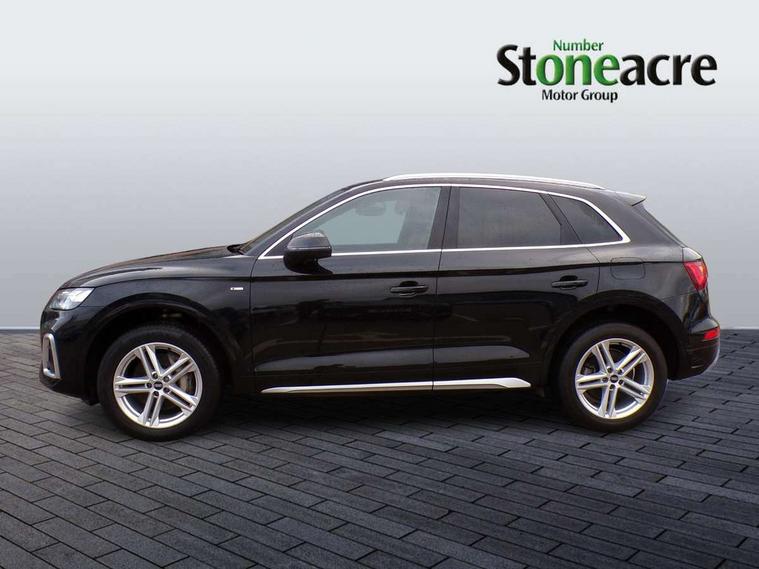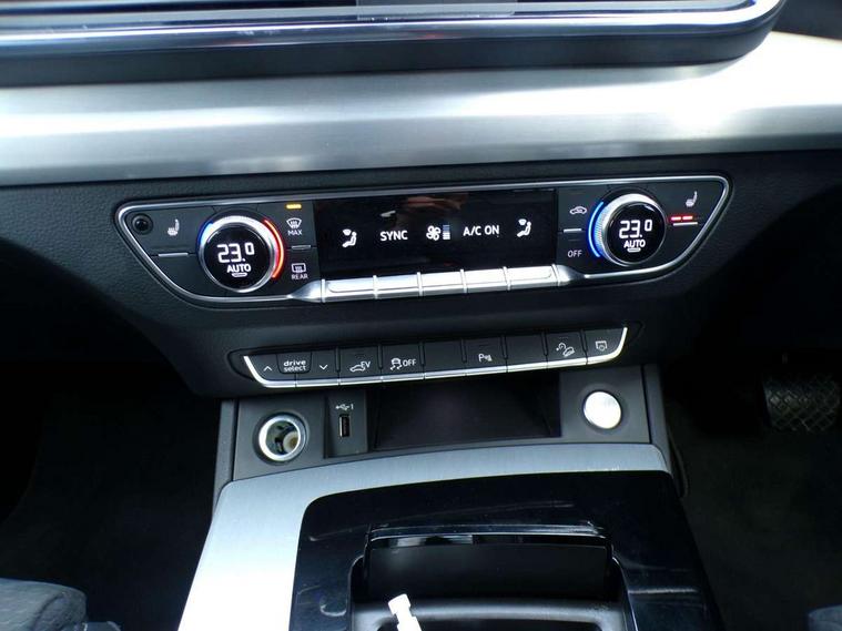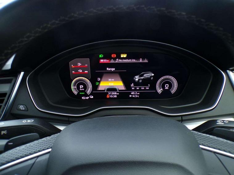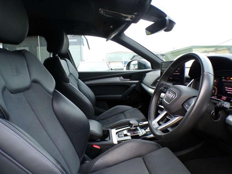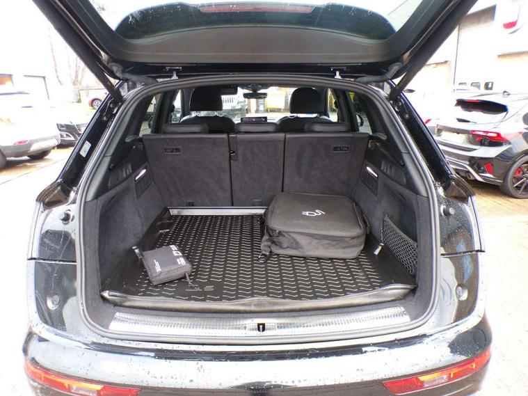 Audi connect safety and service (e-call), Audi connect with Amazon Alexa Integration, Audi drive select, Audi virtual cockpit plus with 12.3" screen and three different layout designs, Audi wireless smartphone interface, Automatic start-stop system with coasting functionality and efficiency programme, Bluetooth interface, Electro - mechanical power assisted steering, MMI navigation plus with 10.1" touch screen, Power tailgate, Reversing camera, Service interval indicator, Voice control system with Audi hotword activation "Hey Audi", 3 pin 10 amp domestic charging cable, Dynamic suspension, Quattro on demand, Type 2 mode 3 22kW 32 amp charging cable, Type 2 socket for AC charging, DAB Digital radio, Acoustic windscreen, Aluminium roof rails, Audi matrix LED headlights with dynamic front and rear indicators, Auto dimming rear view mirror, Automatic headlights and windscreen wipers, Body colour bumpers, Body colour door mirrors, Body colour rear diffuser with matt aluminium silver surrounds, Body colour underbody protection, Chrome plated exhaust trims, Door sills in Selenite silver, Electric adjustable/heated/folding door mirrors, Front air inlet surrounds in aluminium, Front and rear electric windows, Front radiator grille in honeycomb design, Headlight washers, Lower bumpers painted in contrast Manhattan grey, Rear chrome trim strip below lights, Rear privacy glass and rear side windows, Rear spoiler, Rear wiper, Roof bars, S Line badges on the front wings, S Line front and rear bumpers, S Line side skirts, 2 x USB charging port with aux input socket, 3 rear headrests, 40:20:40 split folding rear seat with rear centre armrest, Black cloth headlining, Comfort front centre armrest, Contrast stitching on seats, steering wheel and gear lever gaiter, Deluxe 3 zone electronic climate control, Front/rear floor mats, Gear lever in black leather, Heated front seats, Height adjustable front head restraints, Height/reach adjustable steering column, Illuminated door sill trims with S logo, ISOFIX child seat mounting and top tether, Manual seat adjustment with 4-way electric lumbar support, Rear seat bench plus, Sunvisors with vanity mirrors, Tool kit, Trunk roller cover, High gloss pack - Q5, LED interior light pack - Q5, 3 point seatbelts on all seats, 6 airbags - Driver, front passenger, curtain and side airbags, Electrically operated child locks on rear doors, Electromechanical parking brake, Electronic stabilisation control including ABS, ASR and EDL, Front passenger airbag deactivation, Hill descent control, Hill hold assist, Multi collision brake assist, Pop-up bonnet for pedestrian protection, Pre sense city, Seat belt force limiter, Seatbelt monitoring, Tyre pressure warning, Warning triangle and first aid kit, Anti theft alarm, Anti-theft wheel bolts, Keyless Go access/ignition system, Matt brushed aluminium inlays, Tyre repair kit,