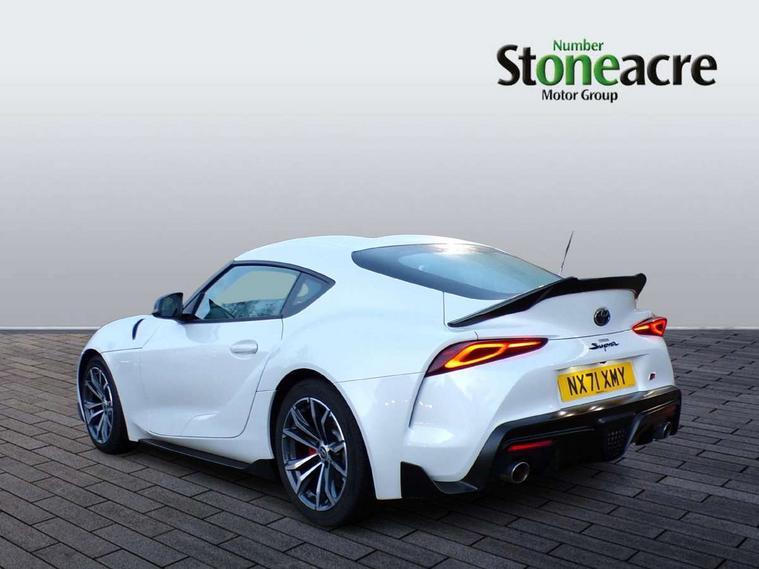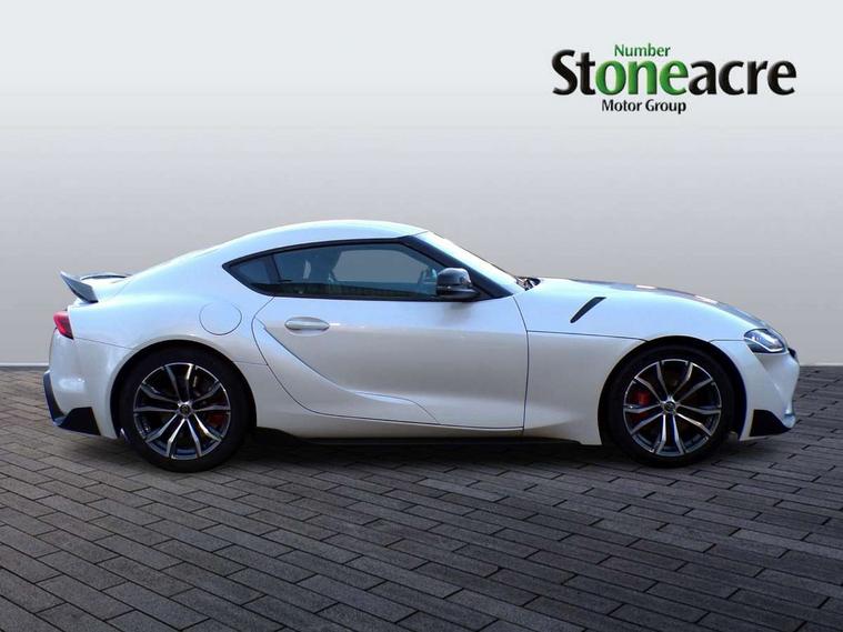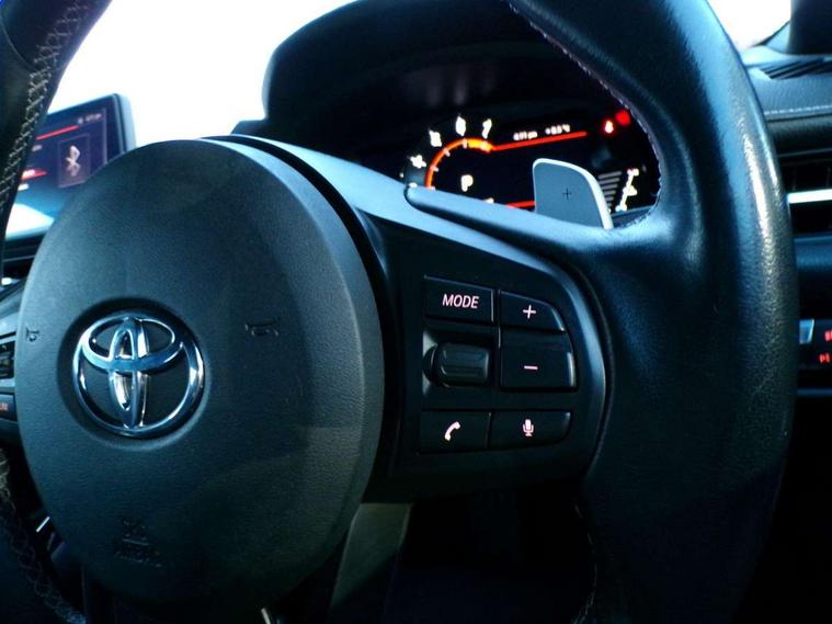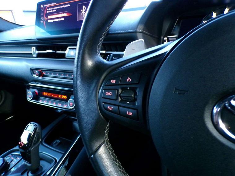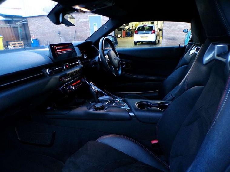 Adjustable speed limiter, Bluetooth handsfree system, Cruise control with steering wheel, Digital speedometer, Drive mode selector, Driver microphone, E-call, Lane departure alert with steering control, Multimedia switches on steering wheel, PAS, Push button start, Rear view camera, Remote boot door release in cabin, Road sign assist - RSA, Service indicator, Smartphone integration with Apple CarPlay, Sport drive mode, Start/stop system, Telephone switch on steering wheel, Toyota supra connect, Voice recognition, Voice recognition switch on steering wheel, Active sports differential, Adaptive variable suspension, Vehicle Stability Control (VSC), 1.5 amp USB connector, 4 speakers, Audio switch on steering wheel, DAB Radio (Digital Audio Broadcasting), Glass integrated antenna, Toyota touch 2 with go navigation system, Auto adaptive high beam, Auto cut off headlamps, Auto dimming inside rear view mirror, Auto headlights, Automatic headlight levelling, Automatically retractable door mirrors, Boot door release with push button, Dual chrome exhaust tailpipe, Electrically adjustable driver door mirror, Electrochrome door mirrors, Follow me home headlights, Heated door mirrors, Indicators integrated on door mirrors, LED daytime running lamp, LED front light guide, LED Headlights, LED High mounted stop light, LED Indicators, LED rear fog light, Piano black door mirrors, Rain sensing wipers, Reverse gear tilting passenger door mirror, 12v power outlet - front, Active sound control, Alcantara upholstery, Aluminium door scuff plates, Aluminium pedals, Boot light, Dark grey insert on centre console, Driver and front passenger personal light, Driver and passenger seatback pockets, Driver seat memory function, Driver/passenger sunvisors and illuminated vanity mirrors, Dual zone automatic air conditioning, Electrically adjustable lumbar support for driver and front passenger, Floor mats, Front cupholders, Front headrests, Front sports seats, Gear shift indicator, Heated driver and front passenger seats, Leather steering wheel, Manual tilting cushion on driver seat, Manually height adjustable, sliding and reclining front seats, Paddle shift controls, Tilt/telescopic adjustable steering wheel, Tonneau cover, Child restraint system, Electronic parking brake, Emergency brake light system (EBS), Front seatbelt reminder, Pre-collision system with pedestrian and cyclist detection, Red sports rear brake caliper, Sports front brake caliper, Start holding control, Supplemental restraint system (SRS) airbags - 7 airbags including driver, front passenger, curtain, side and knee airbags, Traction control, Tyre pressure monitoring system, Immobiliser, Intrusion sensor and alarm, Locking wheel nuts, Power door locks, Remote door lock, Smart entry, Speed detecting automatic door lock, Tilt detection sensors, 18" Black and silver bi-tone machined face alloy wheels, Tyre repair kit,