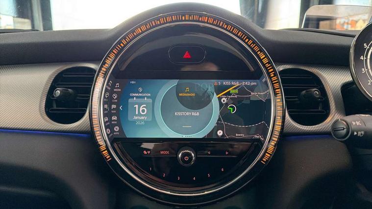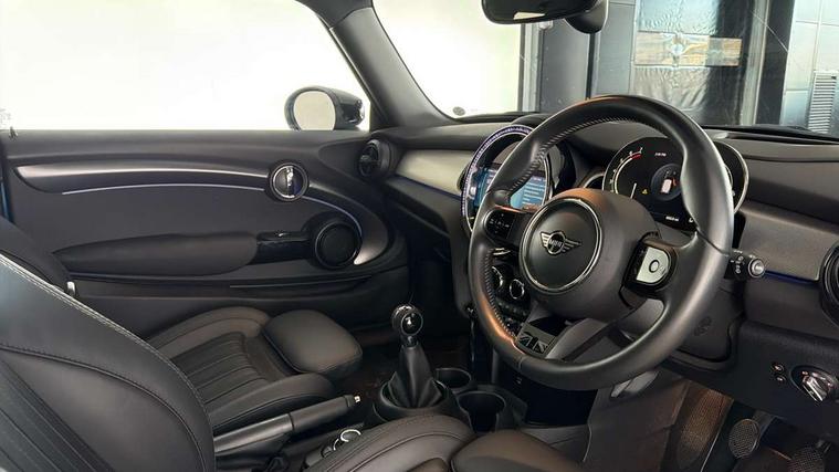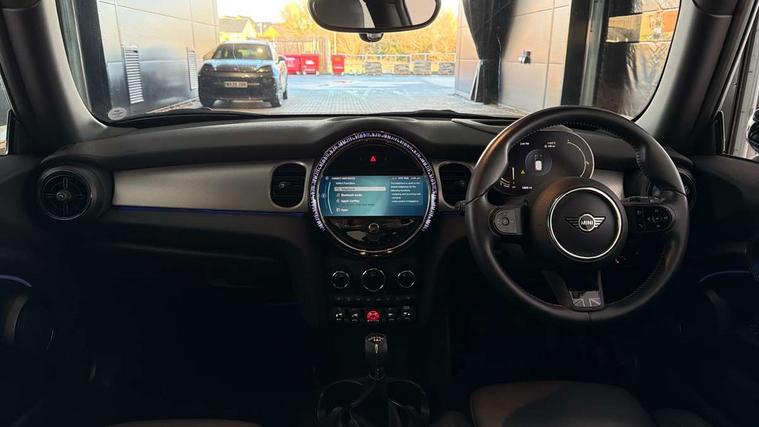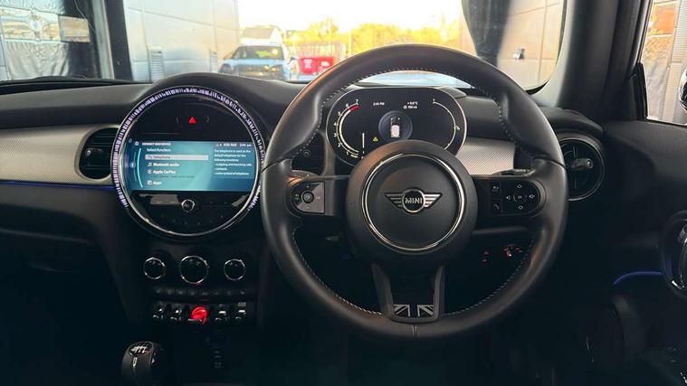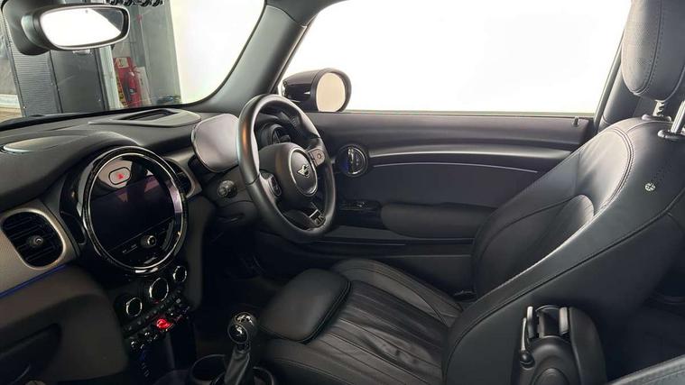 Automatic start/stop function with brake energy recuperation, Compatible mobile phone bluetooth with audio streaming, Cruise control with brake assist, Electro-mechanical speed dependant steering assistance, Flexible car sharing preparation, Instrument cluster, MINI Driving Modes - centre toggle switch to control driving setting (sport, mid and green), Mini E-call, MINI TeleServices, On board computer, Rear park distance control, Service interval indicator, 6 Speed manual transmission including gear change indicator display, Double Vanos system, Fully variable valve control, High precision injection, Performance Control, 4 speakers in front door trims and underneath front seats, 8.8" touchscreen with LED ring, FM tuner and DAB digital radio, Automatic headlight activation switch, Body colour fuel filler cap, Chrome line exterior - radiator grille bars, tailgate handle, lower front grille grating and rear central fog-light, Dynamic brake lights, Electric front windows, Heated rear window, Heated windscreen washer jets, LED headlight with closed ring and daytime driving lights, Metal door sill strips with MINI imprint, Model logo Cooper on right of tailgate, Rain sensor window wipers, Rear fog lights, Rear LED lights with union jack design, Rear window wiper, Side scuttle panel with integrated indicator, Sun/heat protection glass, White indicator lenses, 12V Accessory socket in centre console, 4 lashing eyes in luggage compartment, 60/40 split folding rear seat, Carbon black colour line - Knee roll and door armrest, Chrome interior highlights, Chrome line interior - air vents, gear lever base, door handles and speakers in doors, Cupholders, Front and rear head restraints, Front and rear isofix with front passenger airbag deactivation, Glove compartment, Height and length steering column adjustment, Interior lighting with 12 different colours across the dashboard, underneath door bezel with illuminated laser-engraved design on central display, Leatherette gearshift lever and handbrake gaiters, LED reading lights, vanity mirror lights, front foot well light and spotlight on front seats, Manual air conditioning, Mechanical seat adjustment - forward/back & backrest for front seats and driver seat height adjust, MINI yours badge on exterior pillar, Multifunction steering wheel, Passenger seat height adjuster, Satellite grey headlining including grab handles and clothes hooks, Storage compartments in doors, Sunvisors with vanity mirrors, Velour floor mats, Walknappa leather steering wheel with grey seam and MINI Yours badge on Piano Black lower steering wheel spoke, 3 point seatbelts on all four seats, 6 Airbags - front, side, head and seat belt tensioners, Anti-lock braking system (ABS), DSC - Dynamic Stability Control, Front and rear disc brakes, Single tone fanfare horn, Tyre pressure monitoring system, Alarm system with tilt sensor, monitoring doors, bonnet interior and tailgate, Electronic vehicle immobiliser, Start/stop toggle with keyless go, Tool kit,