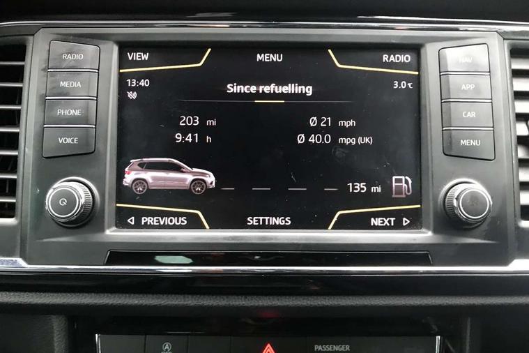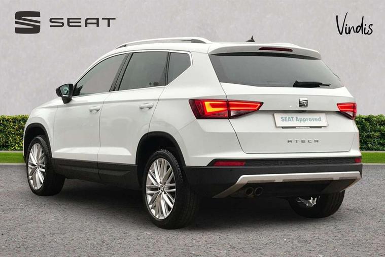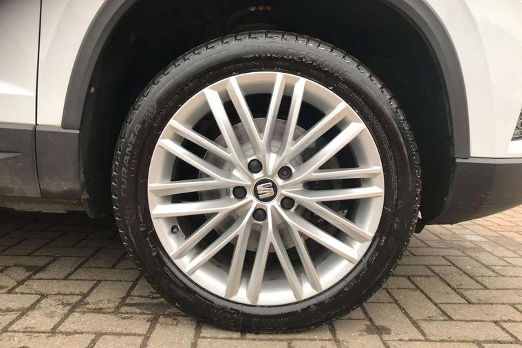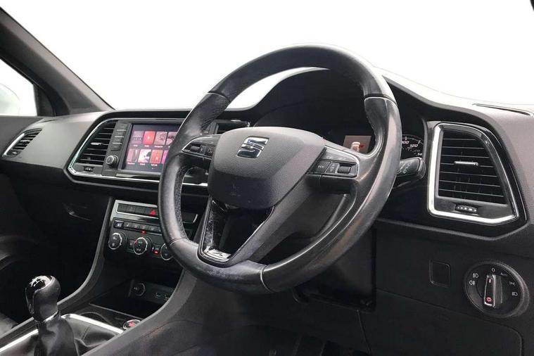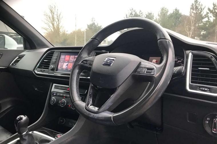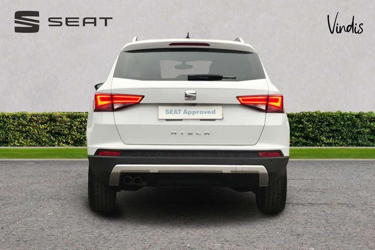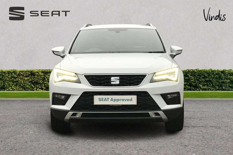 'Lights On' Reminder warning buzzer, Apple car play/Android Auto, Driver alert system, Low fuel warning light, Multi function display, Outside temperature gauge, Progressive power assisted steering, Rear parking sensor, Rear view camera, Remote fuel flap release, SEAT Drive profile, SEAT logo boot release, Trip computer, Comfort suspension, XDS electronic differential lock, 2 USB sockets in rear, Mirror link app interface, Steering wheel mounted audio/phone controls, Aluminium front door sills, Aluminium roof rails, Body colour bumpers, Body colour door handles, Body colour door mirrors, Chrome side window trim, Chromed centre radiator grille surround, Dark tinted rear windows, Electric folding door mirrors, Electrically adjustable and heated door mirrors, Front and rear electric windows, High gloss black grille, LED daytime running lights, LED front fog lights with static cornering light function, LED Headlights, LED tail lights, Rear wash/wipe, Twin chromed exhaust pipes, Welcome lighting, 12V power point front, 3 height adjustable rear headrests, 4 Lashing eyes in boot, 60/40 split folding rear seat, Active head restraints, Adjustable front armrest with storage compartment, Advanced multicolour ambient light with LED interior light and LED illuminated glovebox, Black roof lining, Card holder, Driver/passenger lumbar adjustment, Driver/passenger sunvisors with illuminated vanity mirrors, Dual zone climate control, Footwell illumination, Front cupholders x 2, Front reading lights, Front seat back storage pockets, Height adjustable front headrests, Height adjustable passenger seat, Illuminated boot, Isofix child seat preparation, Leather steering wheel and gear knob, Leather upholstery, Rear armrest, Rear central air outlet, Rear reading lights, Sports seats, Convenience pack - Ateca, Seat Media System Plus pack - Ateca, Winter Pack - Ateca, 3x3 point rear seatbelts, ABS, Auto hold function, Automatic post collision braking, Curtain airbags, Driver/Front Passenger airbags, Drivers knee airbag, Electronic parking brake, Electronic stability control, ESP+EBA, Front and rear seatbelt reminder, Front assist including city emergency braking, Front passenger airbag deactivation, Front side airbags, Hill hold control, Predictive pedestrian protection, Tiredness recognition system, Traction control, Tyre pressure monitoring system, Immobiliser, Keyless entry and go and connectivity hub with wireless charger, Locking wheel bolts, Remote central locking, Volumetric alarm with back up horn, Chrome effect dashboard facia,