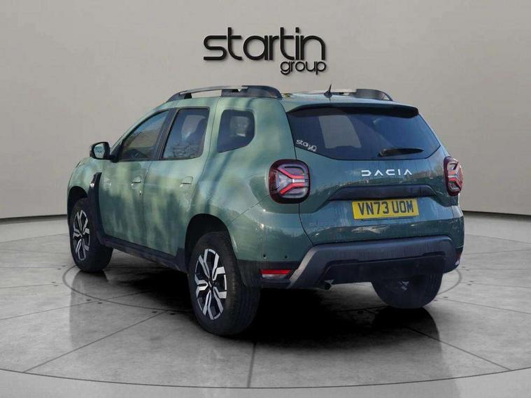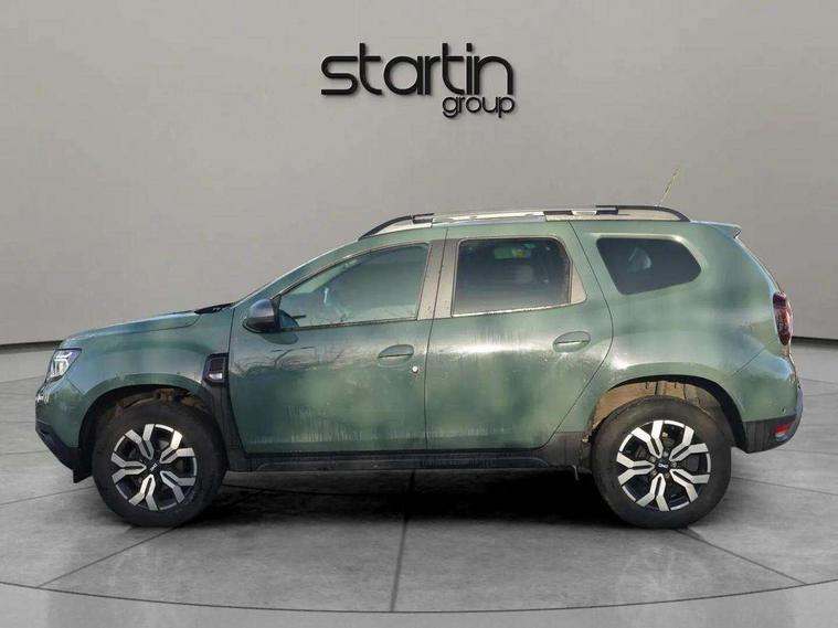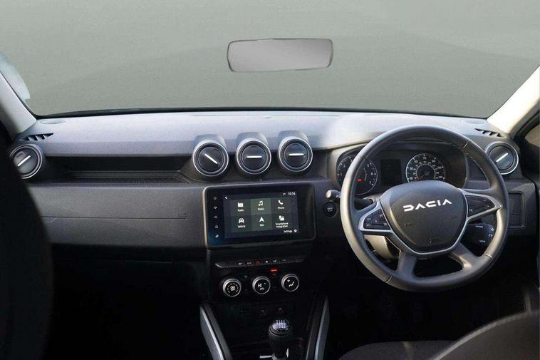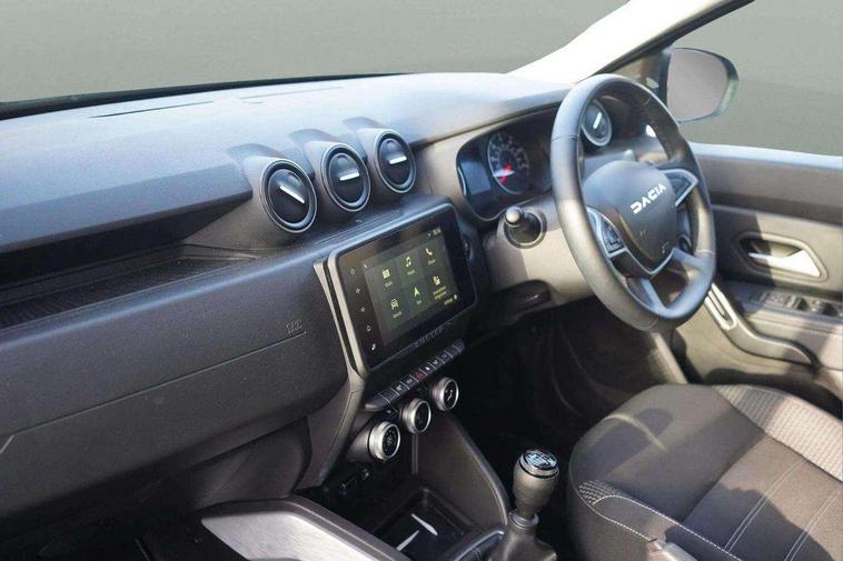 Blind spot warning, Cruise control and speed limiter, eCall emergency system, Eco mode, Electric power assisted steering, Multi view camera, On board computer, odometer, trip computer, average fuel consumption, average speed, service indicator, outside temperature gauge, Rear parking sensors, Rev counter, Reversing camera, Stop/start system, 8" Media Navigation with wireless smartphone replication, Dacia plug and radio/MP3/USB/bluetooth/DAB/steering wheel control, 3 speed windscreen wipers, Acoustic windshield, Automatic front wipers, Black side sills, Black/satin chrome tailgate trim with Duster inscription in black background and lettering, Body coloured door handles, Chrome front grille with hot stamping, Chrome logo surround on steering wheel, Dark glass on lateral rear windows, Daytime running lights, Drivers window one touch up/down, Dusk sensor, Electric adjustable/heated door mirrors, Electric folding door mirrors, Electric front windows, Electric rear windows, Front and rear body coloured bumpers, Front door sill protection strip, Front fog lights, Grey quartz longitudinal roof bars with Duster inscription, Heated rear window, High level third rear brake light, Modular roof bars, Rain sensor, Rear side wing doors, Rear spoiler, Rear wash/wipe, Satin chrome door mirrors, Underbody protection skid plates, Y shaped LED headlights with rear LED lights, 3 rear height adjustable headrests, 3 seat bench in 2nd row, 60/40 split folding rear seat, Automatic air conditioning, Backlighted steering wheel buttons, Boot light, Driver seat lumbar adjustment, Fabric decorative insert on door panels, Fabric upholstery, Front head restraints, Front passenger reading light, Gear shift indicator, Glovebox light, Heated seats, Height adjustable driver seat, Height adjustable front and rear headrests, Height and depth adjustable steering wheel, High centre console with driver armrest, Isofix points for child seats in both outer rear seats, Map pocket on front seat backs, Passenger sunvisor with vanity mirror, Rear passenger reading light, Satin chrome gear lever cap insert, Satin chrome interior door handles, Satin chrome lower steering wheel insert, Single front passenger seat, Soft feel leather steering wheel, 3x3 point rear seatbelts, ABS and Emergency brake assist, ASR traction control with Electronic stability control, Child locks on rear doors, Door open visual and audible warning, Driver airbag, Driver and passenger seatbelt not fastened - visual and audible warning, EBD - Electronic brakeforce distribution, Front passenger airbag, Front passenger airbag deactivation, Front seatbelt pretensioners, Front side airbags, Height adjustable front seatbelts, Hill start assist, Tyre pressure monitor, Keyless entry, Remote central locking, Thatcham approved engine immobiliser, Charcoal grey central console surround, Matt black central console fascia, Matt black decorative insert on rear door panels, Piano black decorative insert on front door panels, Satin chrome air vent surround, Satin chrome instrument dial surrounds, 17" Alloy wheels,