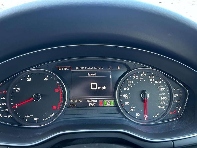 7" Colour driver information system, Audi connect, Audi drive select, Audi parking system plus with front and rear sensors, Audi smartphone interface, Automatic start-stop system with coasting functionality and efficiency programme, Bluetooth interface, Electro-mechanical power steering, MMI Navigation, Power tailgate, Service interval indicator, Voice control system, Diesel particulate filter, 2 x USB charging port with aux input socket, CD player, DAB Digital radio, Two SDXC card slots, Air inlets in titanium black with matt aluminium inlay, Auto dimming rear view mirror, Body colour bumpers, Chrome plated exhaust pipe, Electric adjustable heated door mirrors, Electric front windows, Front fog lights, High beam assistant, High gloss black door mirrors, Rain and light sensors, Rear diffuser in Twilight grey matt with honeycomb grille, S Line body styling, S line sill plates, S style high gloss black rear spoiler, Side and rear windows privacy glass, Titanium black frame and radiator grille, Titanium black front and rear air intakes, Titanium black window surround, Windscreen with acoustic glazing, 3 spoke flat bottom high multi-function leather steering wheel, 40/20/40 split folding 3 seater rear bench seat, Adjustable steering column, Black headlining, Black perforated leather gearknob, Centre console with cupholders, Contrast stitching on seats, steering wheel and gear lever gaiter, Deluxe 3 zone electronic climate control, Front centre armrest, Front head restraints, Front/rear floor mats, Gearshift paddles, Illuminated door sills, ISOFIX child seat mounting and top tether, Jack and tool kit, Luggage compartment mat, Rear headrests, S embossed logo on front sport seats, Stainless steel pedals and foot rest, Non Smokers pack, 6 airbags - Driver, front passenger, curtain and side airbags, Electromechanical parking brake, Electronic Stabilisation Control (ESC) including ABS, ASR and EDL, Front passenger airbag deactivation, Height adjustable front seatbelts, Hill hold function, Multi-Collision braking, Pop-up bonnet for pedestrian protection, Pre sense city, Seatbelt monitoring, Tyre pressure warning, Variable restraint system, Warning triangle and first aid kit, Anti theft alarm system, Anti theft wheel bolts, Immobiliser, Keyless Go, Remote central locking, Piano black finish inlay, 20" 5 arm rotor alloy design wheels with matt titanium finish, Tyre repair kit,