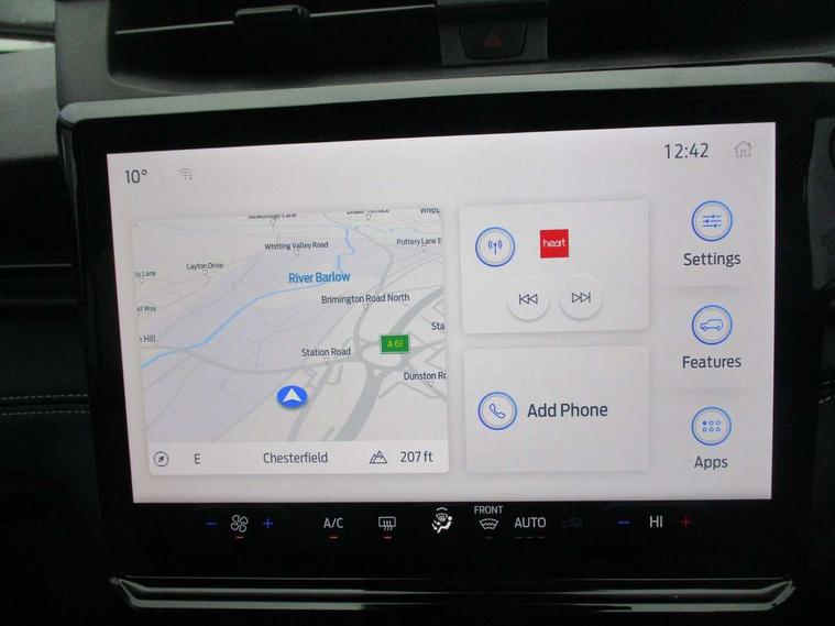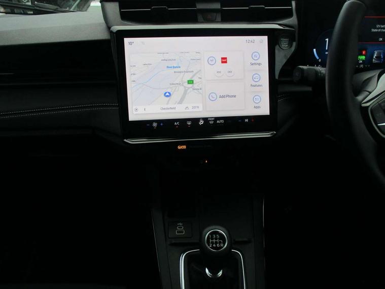 Driver impairment monitor, Emergency call service, Ford easy fuel, Full digital 12.8" instrument cluster, Lane keeping aid with lane departure warning, Power assist steering, Selectable drive modes(Normal, sport, Eco, trail, slippery), Speed sign recognition, Standard suspension, 12" landscape touchscreen display with wireless apple car play and android auto 6 speaker audio system, Ford pass connect and emergency assistance, Ford SYNC4 with connected navigation, Automatic headlights with rain sensing wipers and auto high beam, Front fog lamps, LED daytime running lights, LED rear lamps, LED third brake light, Quickclear heated windscreen, Rear privacy glass, Rear side wing doors, Rear wiper, 3 seat bench in 2nd row, Centre console with armrest and stowage, Electronic automatic temperature control (EATC), Ford megabox extended bootspace, Front and rear head restraints, Front floor mats, Manual 4 way driver seat adjust with lumbar adjustment, Single front passenger seat, Titanium cloth upholstery, 3 rear seatbelts, Child safety lock, Electronic stability control (ESC) and hill start assist, Pre-collision assist with autonomous emergency braking, pedestrian/cyclist detection & post-collision braking, Tyre pressure monitoring system (TPMS), Thatcham alarm, 17" Absolute black machined finish alloy wheel,
