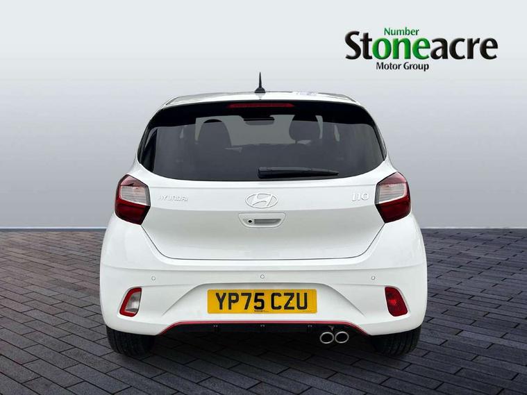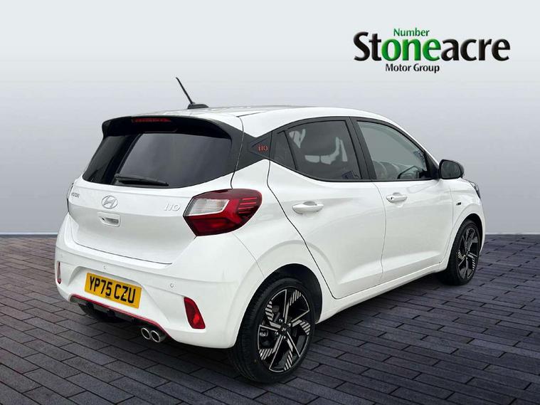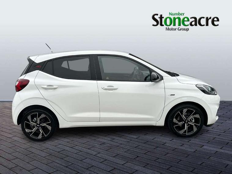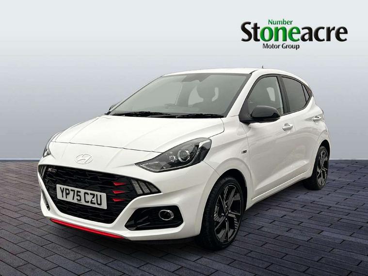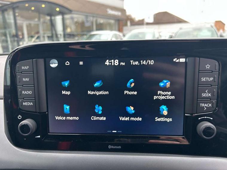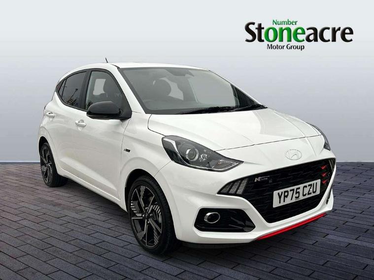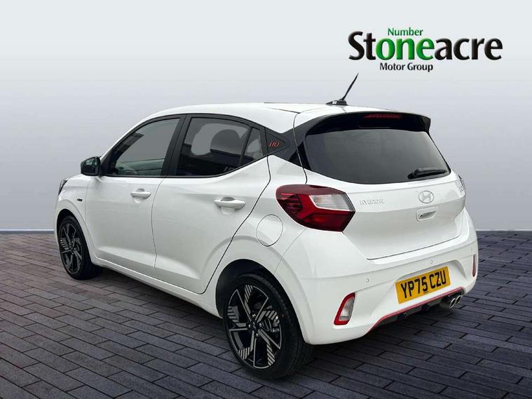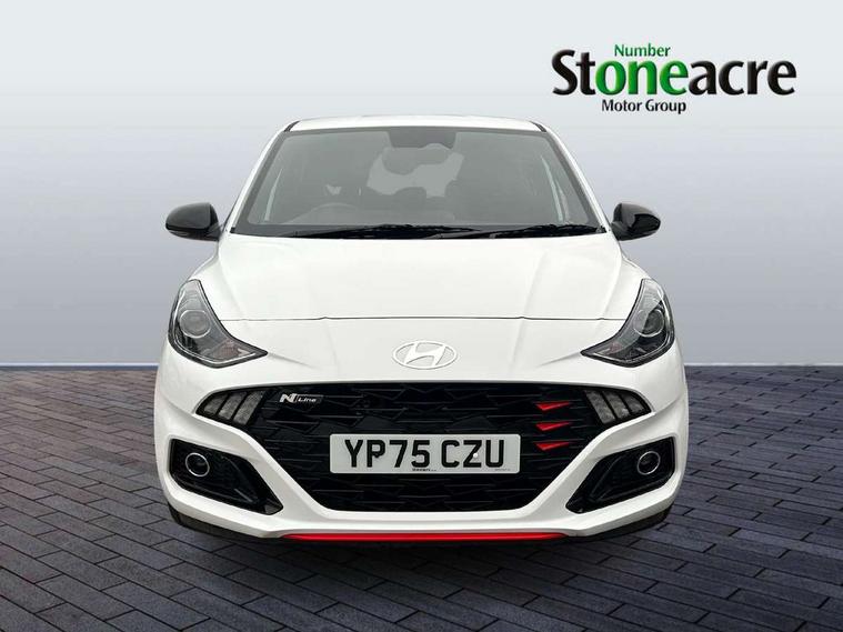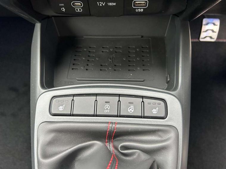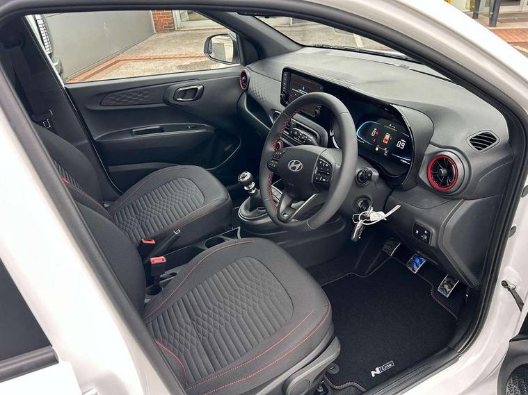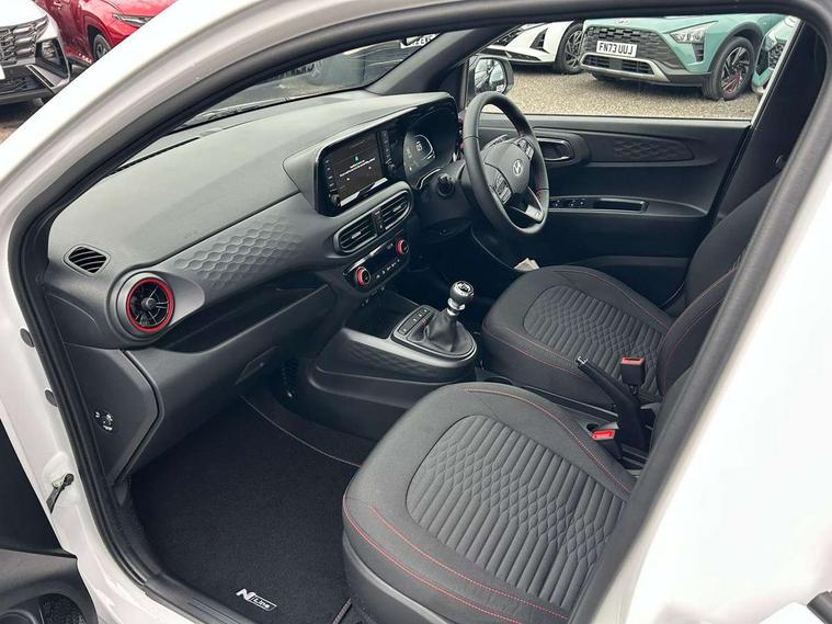 8" Touchscreen satellite navigation including mapcare and LIVE services, Apple car play/Android Auto, Bluelink mobile remote connectivity, Bluetooth connectivity with voice recognition, Cruise control, Driver attention alert system, eCall emergency call system, Forward Collision-Avoidance Assist (FCA) - Pedestrian/Cyclist, Full-width 4.2" LCD instrument cluster, Intelligent speed limit assist, Lane departure warning system with lane keep assist - LKAS, Lane follow assist, PAS, Rear parking sensors, Rear view camera with guidelines, Roadside assistance, Tailgate, Trip computer, Wireless charging pad, 2 front/2 rear speakers, Front and rear USB-C ports, Front USB connection, Leading vehicle alert (LVA), Steering wheel audio, phone and cruise controls, 1 speed non intermittent rear windscreen wiper, Black finish on B pillars, Body colour door handles, Body coloured bumpers, Electric folding door mirrors, Electric front windows, Electric rear windows, Electrically adjustable and heated door mirrors, Flat metal emblem, Front fog lights, Front intermittent wipers, Glossy black door mirrors, Halogen bi-function headlights, Headlights inner with Blade design, Heated rear window, High beam assist, Indicator light on door mirrors, LED daytime running lights, N Line Badging, N Line design front grille, Privacy glass for rear window, Rear LED combination lamps in H pattern, Rear roof spoiler with integrated LED brake light, Rear side wing doors, 12v power outlet - front, 3 seat bench in 2nd row, 60/40 split folding flat to floor rear seats, Air conditioning climate control, Auto light control, Bottle holders in front/rear doors + front centre console, Cabin and luggage compartment interior lighting, Cloth upholstery, Dashboard finisher in Dark Grey Metal with Flame Red air surrounds, Driver + passenger vanity mirrors, Driver's seat height adjustment, Driver/passenger sunvisors with ticket holders, Floor mats, Front door pockets, Front Head Restraints - Vertical and Horizontal Adjustment, Front LED blue mood lighting, Glove compartment, Heated front seats, Heated steering wheel, Height adjustable steering column, Isofix child seat preparation, Leather wrapped steering wheel and gear knob, N Line branded leather gear stick, N Line branded leather steering wheel, Rear door pockets, Single front passenger seat, Vertical adjustment rear head restraints, 13" Rear brake discs, 3x3 point rear seatbelts, Airbags - front, front side and curtain airbags, Anti-lock brake system (ABS), Autonomous emergency braking (AEB) with forward collision warning system, Brake assist function, Childproof rear door locks, Electronic stability control, Front and rear seatbelt reminder, Front seatbelt pretensioners, Hill start assist control (HAC), Passenger airbag deactivate switch, Traction control, Tyre pressure monitoring system, Immobiliser, Perimeter alarm, Rear occupant alert, Remote central locking, Second remote key, Smart key with keyless entry and engine start/stop button, Speed sensitive auto door locking, 16" alloy wheels, N logo centre caps, Temporary mobility kit (TMK),