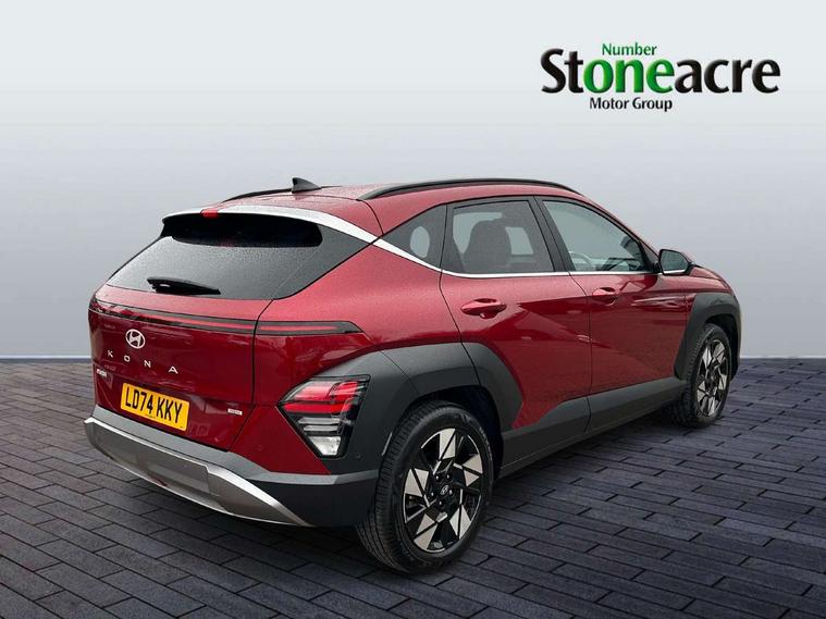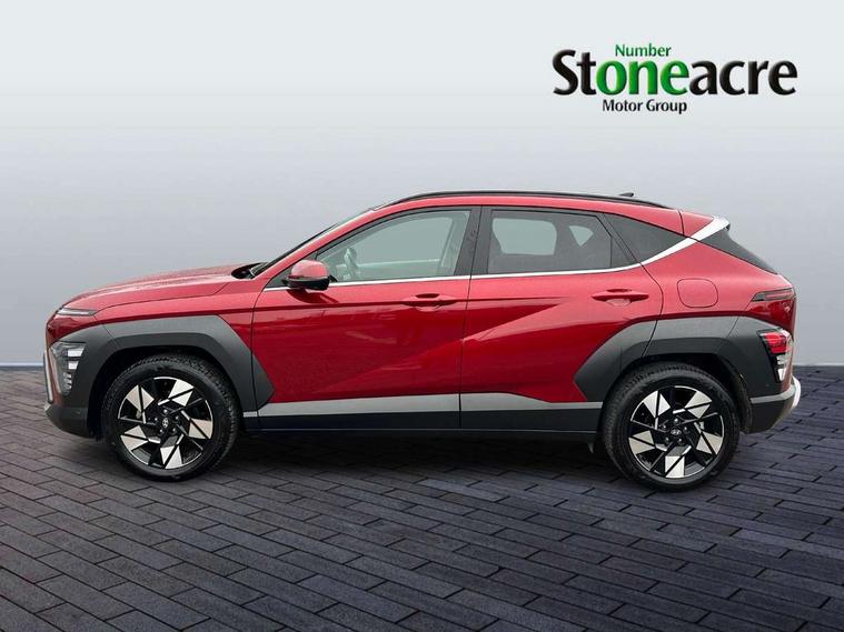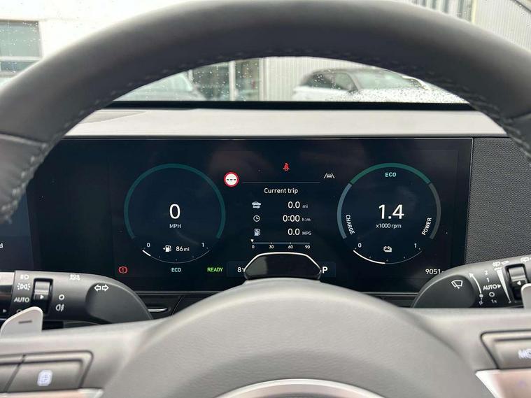 12.3" touchscreen centre console display satellite navigation with bluelink, live services and mapcare, Blind spot collision avoidance assist, Blind spot view monitor, Bluetooth connectivity with voice recognition, Digital clock, Driver status monitor (DSM), Driver supervision instrument cluster with 12.3" LCD display, eCall emergency call system, Feature on demand - Enabled, Forward collision avoidance assist (FCA 1.5) - Car, pededstrian, cycle and junction turning, Front parking sensor, HDA - Highway Drive Assist Level 1.5, Height adjustable power tailgate, Intelligent speed limit assist, Lane follow assist, Lane keep assist, Leading vehicle departure alert (LVDA), Parking Collision Avoidance Assist-Reverse (PCA-R), Parking distance warning - side, Parking system with rear camera and guidance system, PAS, Rear cross traffic collision avoidance (RCCA), Rear parking sensor, Roadside assistance, Safe exit warning (SEW), Smart cruise control with stop and go functionality, Surround view monitor, Windscreen washer fluid sensor and warning indicator, Wireless phone charging pad, Wireless Smartphone Integration includes Apple CarPlay and Android auto, 2 front USB C and 2 rear USB C charging points, Bose Premium Audio system with 7 premium speakers + subwoofer, DAB Digital radio, Steering wheel audio, phone and cruise controls, Auto dimming rear view mirror, Automatic headlights with dusk sensor, Automatic windscreen wipers with rain sensor, Black painted wheel arch inserts, Body colour bumpers, Body colour exterior door handles, Body coloured door mirrors, Door mirror LED indicator lights, Electric front windows with anti-trap mechanism and one touch control, Electric rear windows, Electric sunroof, Electrically adjustable and heated door mirrors, Horizon centre LED DRL, LED projector headlights, LED upper and lower rear lights, Power folding door mirrors, Privacy glass - Rear windows and tailgate, Rear roof spoiler with integrated LED brake light, Rear side wing doors, Rear skid plate - silver, Rear wiper, Roof rails, Solar glass with front door glass and windscreen, Tinted glass in front and rear doors, Windscreen auto defog function, 12V power outlet in front console, 2 zone climate control, 3 seat bench in 2nd row, 40/20/40 split folding rear seat, Adjustable head restraints, Ambient lighting, Driver and passenger front seat pockets, Driver's seat electric adjustments, Driver's seat lumbar support, Driver/passenger sunvisors and illuminated vanity mirrors, Floor mats, Front passenger's seat electric adjustments, Heated front seats, Heated rear seats, Heated steering wheel, Height/reach adjustable steering column, Isofix rear child seat fastenings, Leather upholstery, Leather wrapped steering wheel, LED centre interior light, LED front interior light, Luggage compartment LED lighting, Luggage net, Luggage shelf, Metal paint effect interior door handles, Parcel shelf, Rear centre armrest with cupholders, Rear centre console with air vents, Shift by wire SBW, Single front passenger seat, Ventilated front seats, Vertical adjustment rear head restraints, Trailer wiring package - Kona, Airbag - front, front side, curtain and centre front airbag, Anti-lock brake system (ABS), Childproof rear door locks, Downhill brake control, EBD + Brake Assist, Electric parking brake, Electronic stability control, Fasten seatbelt reminder, Fixed 3 point for second row centre passenger seatbelt, Front seatbelt pretensioners, Height adjustable front seatbelts, Hill start assist control (HAC), Passenger airbag deactivate switch, Rear seat alert, Traction control, Tyre pressure monitoring system, Alarm/immobiliser, Deadlocks, Folding key, Locking wheel nuts, Rear occupant alert, Remote central locking, Smart key with keyless entry and start/stop button, Five year annual vehicle health checks, 18" Alloy wheels, Temporary mobility kit (TMK),