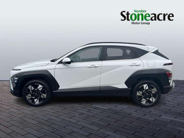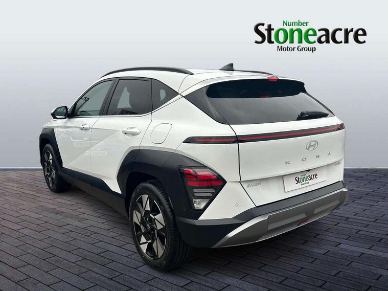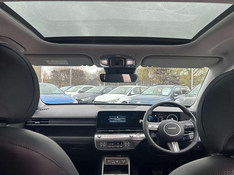 12.25" digital instrument cluster, 12.3" touchscreen centre console display satellite navigation with bluelink, live services and mapcare, Blind spot collision avoidance assist, Blind spot view monitor, Bluetooth connectivity with voice recognition, Driver status monitor (DSM), Driver supervision instrument cluster with 12.3" LCD display, eCall emergency call system, Feature on demand - Enabled, Forward collision avoidance assist (FCA 1.5) - Car, pededstrian, cycle and junction turning, Front parking sensor, HDA - Highway Drive Assist Level 1.5, Height adjustable power tailgate, Intelligent speed limit assist, Lane follow assist, Lane keep assist, Leading vehicle departure alert (LVDA), Parking Collision Avoidance Assist-Reverse (PCA-R), Parking distance warning - side, Parking system with rear camera and guidance system, PAS, Rear cross traffic collision avoidance (RCCA), Rear parking sensor, Rear view camera with dynamic guidelines, Roadside assistance, Safe exit warning (SEW), Smart cruise control with stop and go functionality, Surround view monitor, Wireless phone charging pad, Wireless Smartphone Integration includes Apple CarPlay and Android auto, 2 front USB C and 2 rear USB C charging points, Bose Premium Audio system with 7 premium speakers + subwoofer, DAB Digital radio, Steering wheel audio, phone and cruise controls, Auto dimming rear view mirror, Automatic headlights with dusk sensor, Automatic windscreen wipers with rain sensor, Black painted wheel arch inserts, Body colour exterior door handles, Body coloured door mirrors, Door mirror LED indicator lights, Electric front windows with anti-trap mechanism and one touch control, Electric rear windows, Electric sunroof, Electrically adjustable and heated door mirrors, Horizon centre LED DRL, LED projector headlights, LED taillights, LED upper and lower rear lights, Power folding door mirrors, Privacy glass - Rear windows and tailgate, Rain sensor, Rear roof spoiler with integrated LED brake light, Rear side wing doors, Rear skid plate - silver, Rear wiper, Roof rails, Solar glass with front door glass and windscreen, Tinted glass in front and rear doors, Windscreen auto defog function, 12V power outlet in front console, 2 zone climate control, 3 seat bench in 2nd row, 40/20/40 split folding rear seat, Adjustable head restraints, Ambient lighting, Driver and passenger front seat pockets, Driver's seat electric adjustments, Driver's seat lumbar support, Driver/passenger sunvisors and illuminated vanity mirrors, Floor mats, Front passenger's seat electric adjustments, Heated front seats, Heated rear seats, Heated steering wheel, Height/reach adjustable steering column, Leather steering wheel, Leather upholstery, LED centre interior light, LED front interior light, Luggage compartment LED lighting, Luggage net, Luggage shelf, Metal paint effect interior door handles, Rear centre armrest with cupholders, Shift by wire SBW, Single front passenger seat, Ventilated front seats, Vertical adjustment rear head restraints, Trailer wiring package - Kona, Airbag - front, front side, curtain and centre front airbag, Anti-lock brake system (ABS), Childproof rear door locks, Downhill brake control, Electric parking brake, Electronic stability control, Fixed 3 point for second row centre passenger seatbelt, Hill start assist control (HAC), Rear seat alert, Tyre pressure monitoring system, Alarm/immobiliser, Rear occupant alert, Remote central locking, Smart key with keyless entry and start/stop button, Five year annual vehicle health checks, 18" Alloy wheels, Temporary mobility kit (TMK),