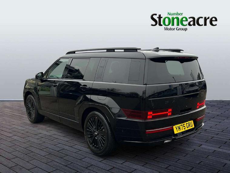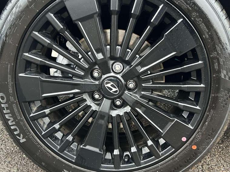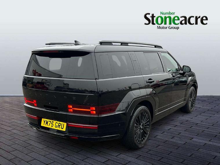 12.3" Drivers supervision instrument cluster with LCD display, 360 degree parking sensors, Blind spot collision avoidance assist (BCA), Blind spot view monitor (BVM), Bluelink and Wireless Apple Carplay/Android Auto, Bluetooth connectivity with voice recognition, Drive mode selector, Driver status monitor (DSM), Dual wireless phone charging pad, Emergency services call system, Forward collision avoidance assist (FCA 2.0), Head up Display, Highway drive assist 2 (HDA 2), Intelligent speed limit assist (ISLA), Lane departure warning system (LDW), Lane Follow Assist 2 (LFA 2), Lane keeping assist (LKA), Low washer fluid warning, Navigation based smart adaptive cruise control with stop and go, Over the air software updates (OTA), Parking Collision Avoidance Assist-Reverse (PCA-R), Power assisted steering, Remote smart parking assist, Safe exist assist (SEA), Smart electric tailgate with hand's free opening function, Surround view monitor, Self levelling suspension, Shift by Wire Gear Selector (SBW), 12.3" Touchscreen display with satellite navigation, 2nd Row USB C Ports x2 Charging, 3rd Row USB C Ports x2 Charging, Front USB C port 1 charging and 1 data/charging, Premium BOSE sound system with 12 speakers and subwoofer, Steering wheel audio, phone and cruise controls, Automatic headlights with dusk sensor, Automatic windscreen wipers with rain sensor, Black Styling (Skid plate, Fender upper garnish, Door side garnish, C/D pillars, Rear bumper moulding, DLO), Body colour bumpers, Digital centre mirror, Dynamic welcome lights, Electric adjustable/heated/auto power folding door mirrors, Front and rear electric windows, Heated rear window, Hidden C pillar assist handle, Hidden rear wiper, High beam assist, LED daytime running lights, LED Headlights, LED indicator lights, LED indicators in door mirrors, LED positioning lights, LED taillights, LED third brake light, Manual rear door blinds, Rear side wing doors, Rear windows and tailgate privacy glass, Roof rails, Solar glass windscreen and front windows, Windscreen acoustic film, Windscreen auto defog function, 2nd and 3rd row center armrest with cupholder, 3rd row head restraints, Centre rear head restraint, Driver and front passenger premium relaxation seats, Dual zone climate control air conditioning, Electrically adjustable front seats with 2 way electric lumbar support, Front head restraints, Front seats with memory, Heated front seats, Heated rear seats, Height and reach electrically adjustable steering column, Leather wrapped heated steering wheel, Luggage cover, Luggage hooks, Luggage net, Multi colour LED ambient lighting, Nappa leather upholstery, Rear head restraints, Single front passenger seat, Split folding (50/50) third row seats, Split folding (60/40), sliding and reclining second row seats, Sun Visors with driver and passenger illuminated vanity mirrors, Two front cup holders, UV-C Tray, Ventilated front seats, Trailer wiring pack - Santa Fe, 3 point seatbelts on all seats, Adjustable regenerative braking paddle shifters, Airbag - Front, front side, curtain and centre front airbags, Anti-lock brake system (ABS), Dynamic brake control, Electric parking brake with auto hold function, Electronic Stability Control (ESC), Hill start assist control (HAC), Manual child lock in rear doors, TSA (Trailer Stability Assist), Tyre pressure monitoring system, Immobiliser, Smart Key - Keyless entry with Power On/Off button, Black ink interior decals, 20" Black calligraphy alloy wheels, Tyre mobility kit,