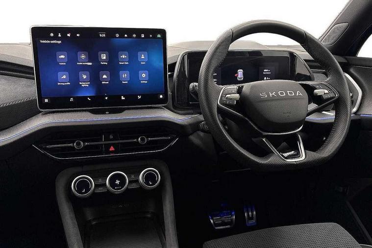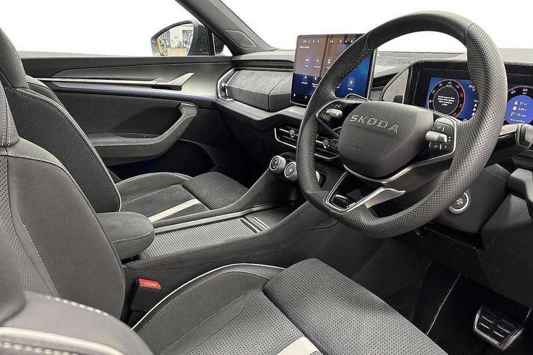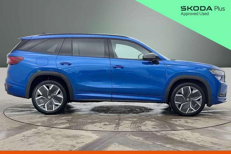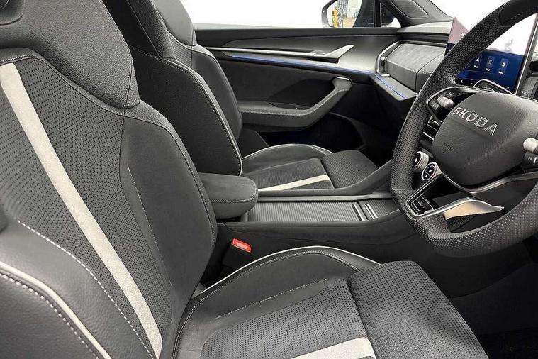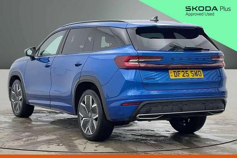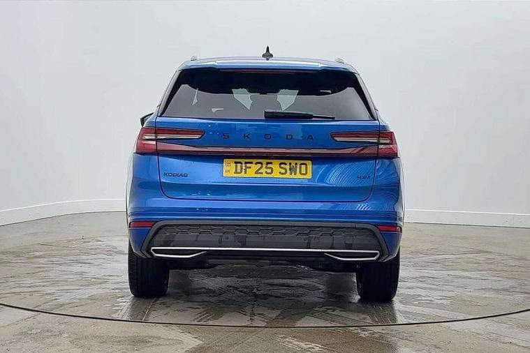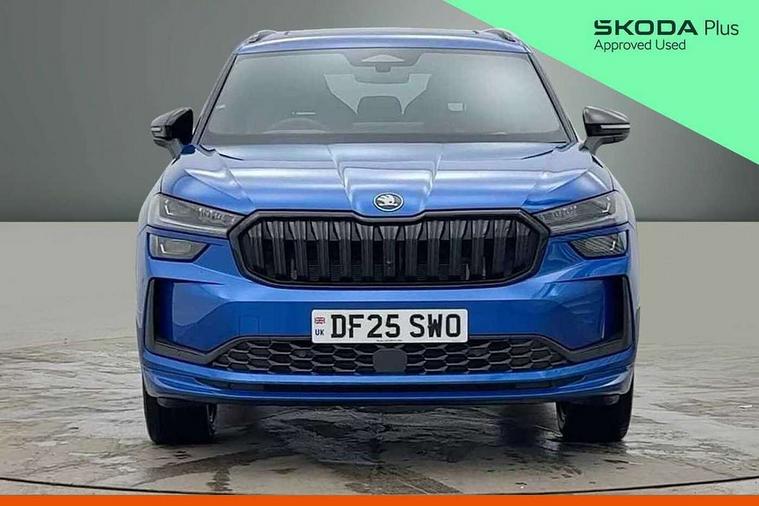 13" satellite navigation touchscreen display, Blind spot detection with door exit warning, Bluetooth system, ChatGPT functionality, Driver alert - Fatigue and drowsiness monitor, Dry display cleaner, Emergency call, Front and rear parking sensors, Front cross traffic assist, Lane assist, Off road modes, PAS, Rear traffic assist, Tailgate unlocking from outside, Traffic sign recognition, USB C Port x 2 in front centre console, Virtual Cockpit - 10.25" digital display, Voice control system, Wireless charging for two smartphones (15W) with cooling function, Wireless SmartLink for Apple CarPlay and Android Auto, Stop/start function, 2x USB-C in the rear, DAB Digital radio, Aero front windscreen wipers with intermittent function, Auto dimming rear view mirror, AWL (all weather lighting) and all weather light with cornering function, Black diffuser and decorative tailpipe with a unique dark chrome finish, Black roof rails, Black sports styling including front grille and window surrounds, Black wheel arch surrounds, Body colour door handles, Cornering light and poor weather light, Electric folding /adjustable/separted heated/folding door mirrors, auto dimming with boarding sports and memory function, Electric front and rear windows, Exterior black decorative trims, Front and rear sports bumpers including lower rear chrome strip, Gloss black door mirrors, Gloss black window frame and D pillar, Heat insulating glass in windshield, Heated rear window, Ice scraper in fuel tank cap, LED daytime running lights, LED third brake light in rear spoiler, Light assistant with automatic headlight control and coming home feature, Logo projection in door mirrors, Privacy glass, Rear roof spoiler, Rear side wing doors, Rear window wiper, Red decorative strip between rear LED lights, Safety reflectors on front and rear doors, Sportline badge on front fenders, Tailgate lettering in Black, Unique dark chrome design logo on alloy wheels, Window control switches with black trim, Windscreen wipers with rain sensor, Without engine designation, 1.5l bottle holder points in all door, 1x centre rear reading light, 2 seat bench in 3rd row, 3 configurable smart dials with 32mm coloured display, 3 seat bench in 2nd row, 4 foldable roof handles with rear coat hooks, Aluminium pedals, Ambient interior lighting - Dashboard, front-door stowage compartments, front and rear door panels and footwell lighting, Automatic gear selector on steering column, Chrome interior door handles, Driver/front passenger reading lights, Fabric headlining, Fixed bench 40:60:40 split folding backrests, Front and rear floor mats, Front centre armrest with jumbo box storage compartment, cup holder and 12V socket, Front sport seats, Height adjustable front headrests, Interior black decorative trims, Isofix child seat fittings in outer middle row rear seats and front passenger with top tether, Manually adjustable steering column, Pollen filter, Rear centre armrest with cupholders, Rear seat boot backrest release, Single front passenger seat, Skoda lettering on steering wheel, Storage pocket including mobile phone pockets on the backs of the front seats, Sunvisors with illuminated vanity mirrors, Three rear height adjustable headrests, Ticket holder on A Pillar, Tri zone climate control, Umbrella in door panel x1 made from sustainable materials, Upper and lower glovebox with card holder and coin compartment, USB C port by rear view mirror for charging only (15W), Acoustic package - Kodiaq, Performance package - Kodiaq, Sportline design selection pack - Kodiaq, Auto door release and activation of warning lights in the event of an accident, Driver and front passenger airbag with knee airbag and front passenger airbag deactivation, Electric child locks, Electronic parking brake, ESC (incl. ABS+EMD+MSR+ASR+EDL+HBA+DSR+RBS+ESBS+MCB+TSA+XDS), Front assist with braking reaction to vehicles, pedestrians and cyclists, Front disc brakes, Fuel cut off safety device, Height adjustable front 3 point seatbelts + pretensioners, Hill hold assist, Junction assist with automatic emergency braking, Rear disc brakes, Safety vest holder in door, Seat belt reminder for all seats, Three point rear seat belts, Two tone horn, Tyre pressure monitor, Alarm with interior monitoring and tilt sensor with safe function, Anti-theft wheel bolts, Immobiliser, Remote central locking with 2 keys, 20" Rila anthacite polished alloy wheel with black matte aero covers,