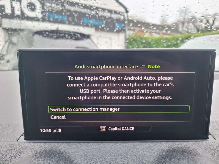 Audi connect navigation and infotainment includes innovative services, Audi connect remote and control connects your vehicle to your smartphone, Audi smartphone interface, Audi virtual cockpit, Automatic start/stop system with recuperation, Bluetooth interface includes bluetooth audio streaming, Cruise control, MMI navigation plus with MMI touch, Power operated tailgate, Progressive steering, Rear parking sensors, 2 x SDXC card reader, 8 passive loudspeakers, DAB Digital radio, DVD Drive, Auto dimming rear view mirror, Black window trims, Body colour door mirrors, Electrically adjustable, folding, auto dimming and heated door mirrors with integrated LED side indicators, Front windscreen with grey tinted sunband, S Line badges on the front wings, S Line body styling - front and rear bumpers, side skirts, radiator grille, rear diffuser insert and front air intakes, Wheel arch trims in manhattan grey, 4-way electric lumbar support for front seats including seat height adjustment for both front seat, 60/40 split folding rear seat bench, Black cloth headlining, Front and rear head restraints, Front centre armrest, Front/rear floor mats, Height/reach adjust steering wheel, Illuminated door sill trims with S logo, ISOFIX child seat mounting for front passenger with airbag deactivation and outer rear seat including top tether attachment point for outer rear seats, Stainless steel pedals, Tool kit, 3x3 point rear seatbelts, 6 airbags - Front, curtain and front side airbags, Electromechanical parking brake, Electronic stabilisation control including ABS, ASR and EDL, Hill hold assist, Pre-sense front with pedestrian recognition, Seatbelt monitoring, Tyre pressure warning light, Warning triangle and first aid kit, Anti theft alarm, Anti theft wheel bolts, Electronically operated child locks, Aluminium interior element, Matt brushed aluminium trim inlays,