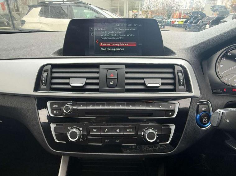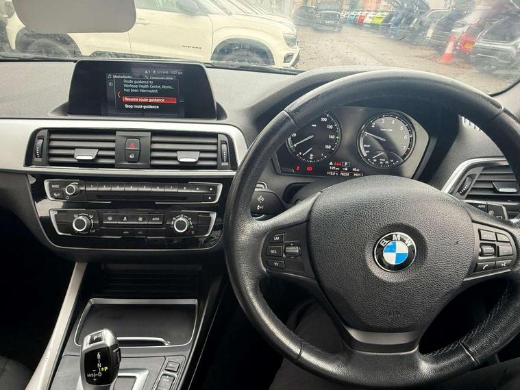 Automatic start/stop system, BMW Online services, BMW remote services, BMW Teleservices, Brake force display, Brake pad wear indicator in front and rear, Check Control warning system for monitoring of lights and door/luggage compartment open warning, Eco pro mode, Instrument cluster with speedometer with miles per hour read out, tachometer and fuel gauge, Lights on warning by audio warning signal when ignition is switched off, Oil temperature display via on board computer in instrument cluster, On board computer - average speed+fuel consumption, service interval, clock/date, odometer/trip meter, outside temperature display and ice warning, On board diagnostics, Optimum shift indicator, Personal Profile, Real time traffic information, Servotronic PAS, Automatic transmission, Battery age recognition function, Drive Performance Control, BMW professional radio with CD player, DAB Digital radio, Body colour door handles, Body colour front and rear bumpers, Body colour mirror caps, Body colour roof mouldings, Chrome exhaust tailpipe in single, round (Exhaust tailpipe, stainless steel - single, round), Chrome kidney grille with black vertical slats, Clear lenses direction indicator lights, Daytime driving lights, Direction indicator side lights in exterior mirrors, Dynamic brake lights, Electrically adjustable heated door mirrors and washer jets, Follow me home headlights, Front and rear bumper system with replaceable deformation elements, Front and rear electric windows with open and close fingertip control, anti trap facility and comfort closing, Green tinted heat protection glazing, Headlight beam throw control, Heated windscreen washer jets, High level third brake light, Lightweight engineering, Nearside reverse light in rear light cluster, Offside rear fog lights, Rain sensor including auto headlights activation, Rear window aerial, Rear window wiper, Shark fin antenna, Visible VIN plate, Welcome lighting, 12V power socket in centre console, 12V power socket in passenger footwell, 60/40 split folding rear seat, Anthracite Velour front and rear floor mats, Black door sill finishers with BMW designation, Conditioned based service, Four grab handles integrated in roof lining, Front and rear side armrest integrated into door trim, Front folding sliding armrest with storage compartment, Front head restraints, Front storage compartment in centre console and in door trim, Front/rear courtesy lights with soft on/off dimming, Glove box handle with chrome surround, Glovebox, Interior light in front centre interior mirrors and rear centre auto interior light activation when door is opened when ignition switched off, Isofix child seat for two outer rear seats, Leather gear knob and handbrake grip, Luggage compartment access via BMW roundel, Manually adjustable steering column, Multi-function controls for steering wheel, Rear folding head restraints, Two cupholders with sliding cover and inlay mat, Two sills lashing eyes in the luggage compartment, 3 point seatbelts on all seats, front pyrotechnic belt tensioners, stopper and belt force limiters, rear coded belt buckles, Active differential brake (ADB), electronic differential lock in DSC-OFF mode, Airbags - Front driver and passenger, front and rear head, front side, curtain head protection, Anti lock braking system (ABS) with brake assist, Automatic Stability Control (ASC), Battery safety cut-off, BMW emergency call, Brake drying, Brake energy regeneration, Braking readiness, Cornering brake control (CBC), Crash sensor activating central locking release, hazard warning lights, Driver and front passenger seat belt security check, DSC+, Dynamic brake control, Dynamic Traction Control - DTC, Front passenger manual airbag deactivation, Front ventilated brake disc, Hill start assist, Rear brake discs, Rear child proof door locks, Side impact protection, Twin horns, Tyre pressure monitoring system, Warning triangle and first aid kit, Automatic drive away locking facility, Central locking switch for all doors, fuel filler cap and luggage compartment, Locking wheel bolts, Remote central locking with two Integrate key, one button for opening and closing all lock, open and close window, button for open luggage compartment, Start/stop button with comfort go keyless engine start and auto start stop deactivation button, Thatcham Cat.1 alarm and immobiliser, Reduced rolling resistance tyres,