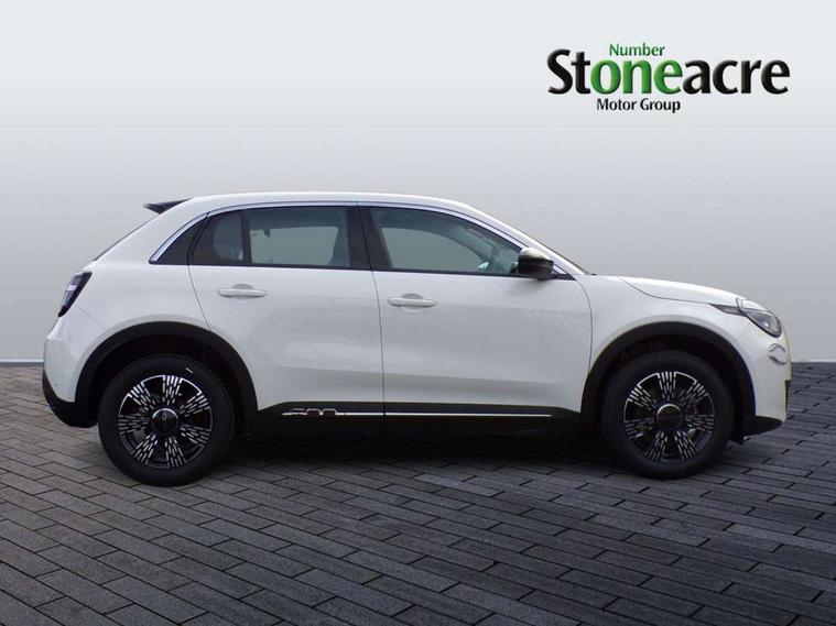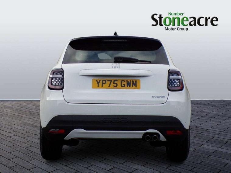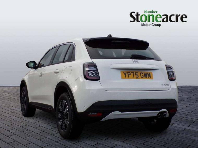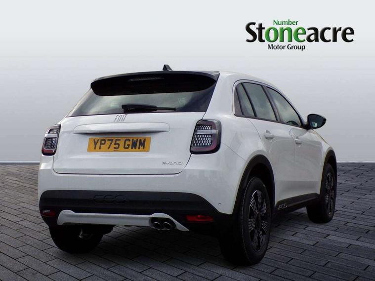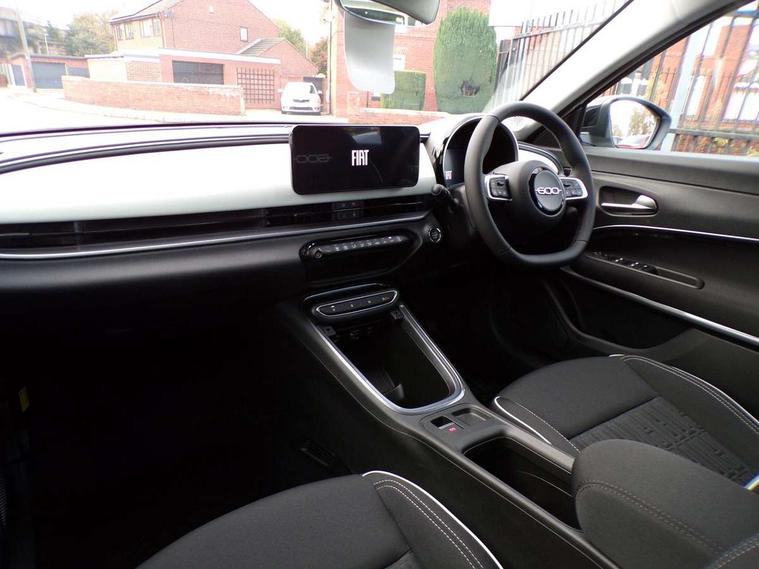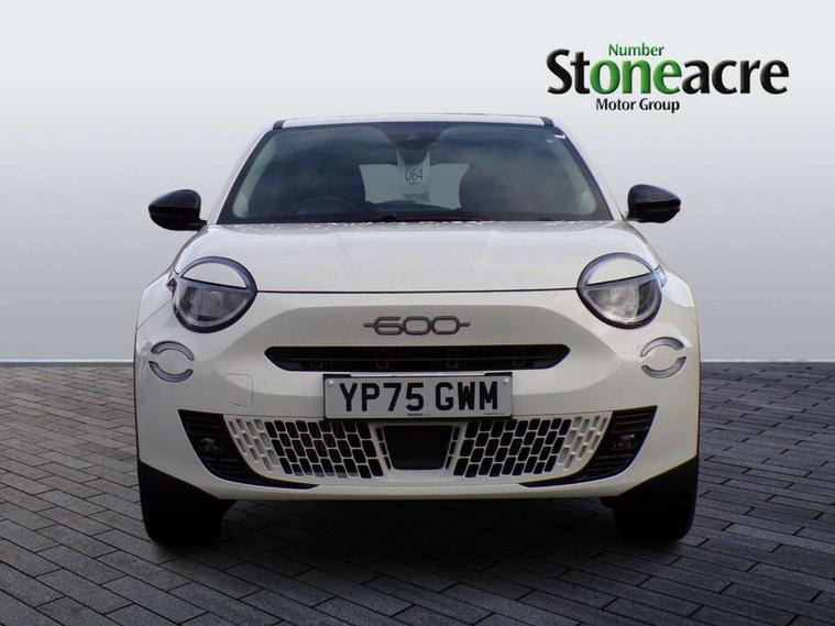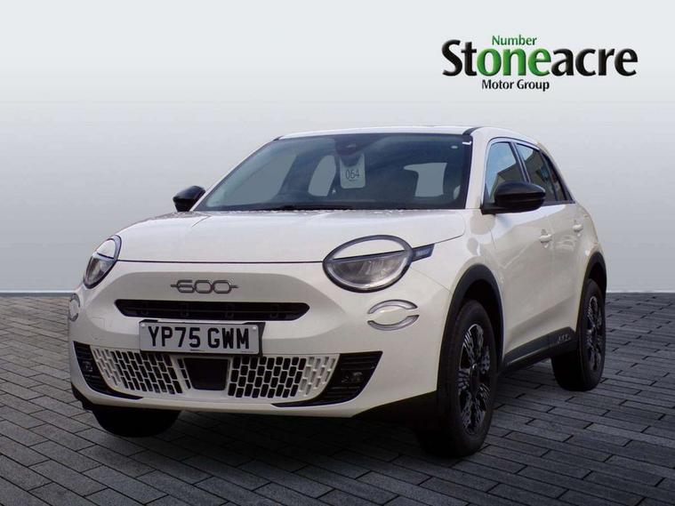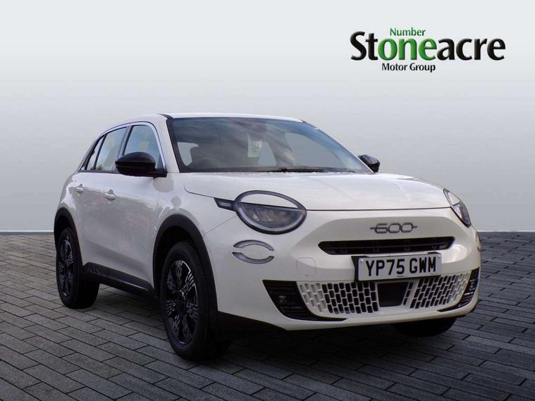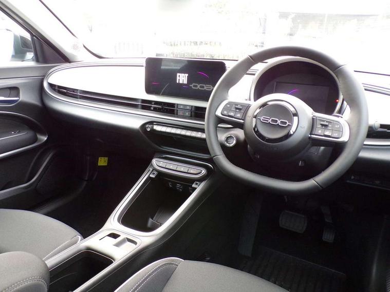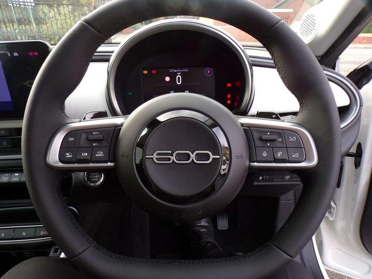 7" TFT digital cluster, Bluetooth connectivity, BSRF connectivity box, Connected services, Cruise control, Drowsy driver detection, Emergency E-call assist, Engine emission level default, GSR II step 1, Intelligent speed assist, Lane keeping assistant (LKA), Odometer, Power assist steering, Rain and dusk sensors, Rear parking sensors, Traffic sign recognition, Wireless apple car play/android Auto, Without drive mode selector, L2-AGM 12V battery, 1st Row USB type-A and USB type-C, 4 speaker audio system, Radio, Uconnect infotainment 10.25" touchscreen with DAB, All power windows express Up/Down, Auto dimming frameless rear view mirror, Automatic headlights, Body coloured door handles, Chrome day light openings, Electric adjustable door mirrors, Exterior chrome accents, Front and rear Chromed 600 logo, Gloss black finish B pillar, Gloss black shark fin antenna, Glossy black door mirrors, Heated windscreen wiper blade area, LED 3rd brake light, LED daytime running lights, LED Fog lamps with cornering function, LED front signature lighting, LED front turn indicators and position lights, LED rear lights, LED rear signature lighting, LED reflector headlamps, Matt black side skirts with 600 chromed logo, Rear bumper embossed 600 logo, Rear roof spoiler, Rear side wing doors, Rear wiper, 2 Spoke synthetic leather steering wheel with audio control, 3 rear headrests, 3 seat bench in 2nd row, 4 way manually adjustable passenger seat, 6 way manually adjustable drivers seat, Auxilliary 12V power socket, Body colour dashboard fascia, Chrome interior door handles, Dark metachrome dashboard ring, English handbook, Front centre armrest, Front headrests, Front passenger grab handle, Front seatback pockets, ISOFIX attachment on front passenger and rear passenger seats, Manual climate control, Metachrome central compartment bezel, Monogram fabric upholstery, Paddle shifts, Partial body cover for shipment, Predisposal for accessory upgrade to default tunnel pad cover (dedicated prnd bezel), Rear seat 40/60 split, Single front passenger seat, Smart 15L storage central tunnel with tunnel pad cover, Sunvisor label ciao Fiat, Sunvisors with vanity mirrors, 3x3 point rear seatbelts, 6 airbags, ABS, Autonomous Emergency Brake (AEB) & Vulnerable Road User (VRU) Protection, Child locks on rear doors, Electronic parking brake with auto hold, ESC (Electronic Stability Control), Front passenger airbag deactivation, Seatbelt reminder and pretensioners for all seats, Anti-theft volumetric alarm, Anti-theft wheel bolts, Keyless Go, 17" Diamond cut alloy wheels, Fix and go puncture repair kit,