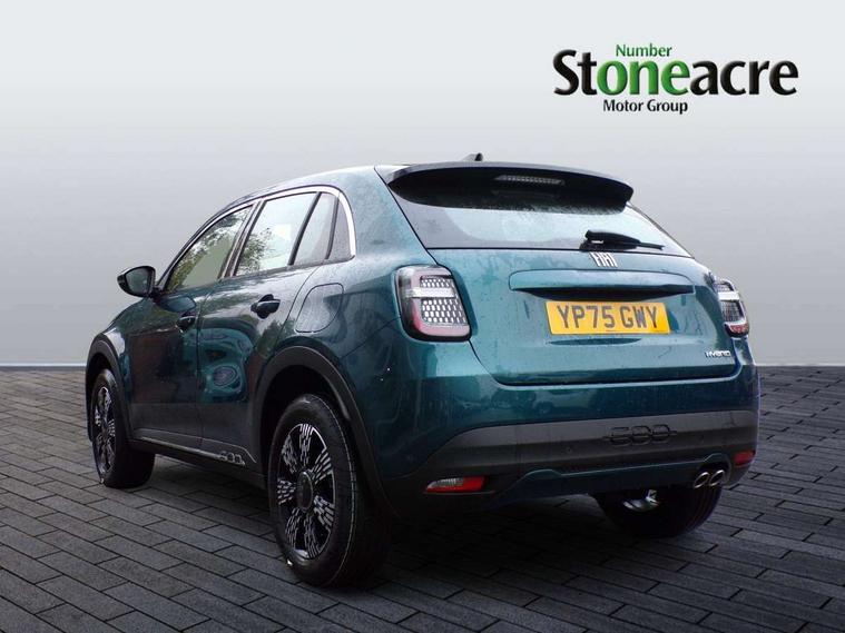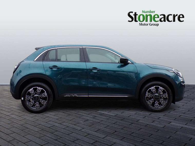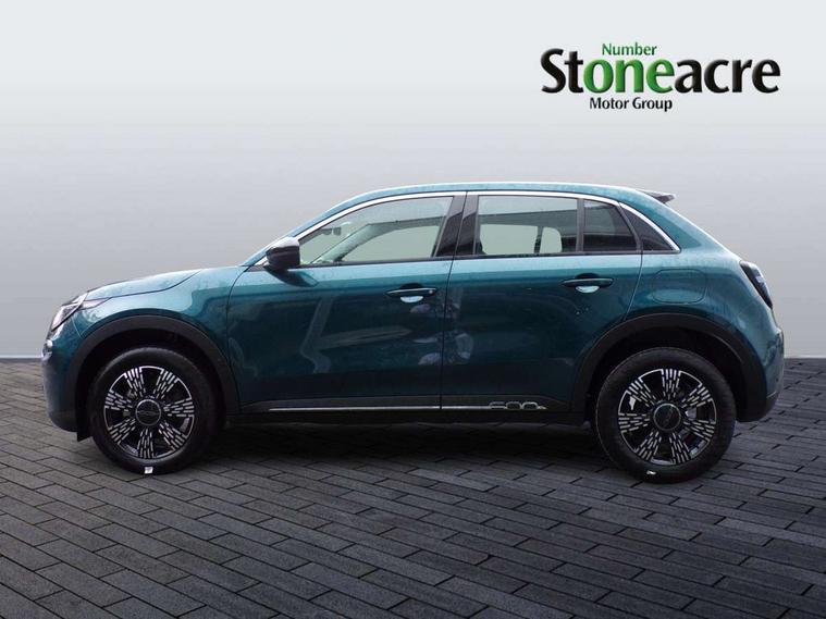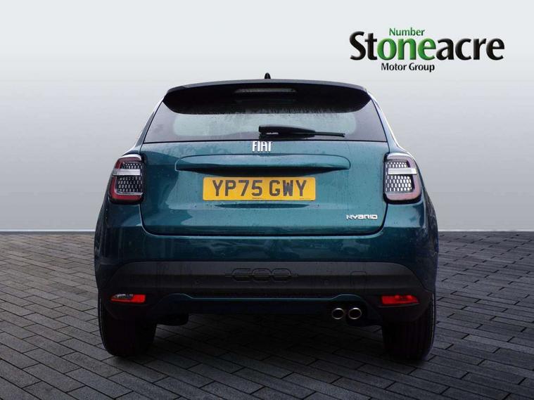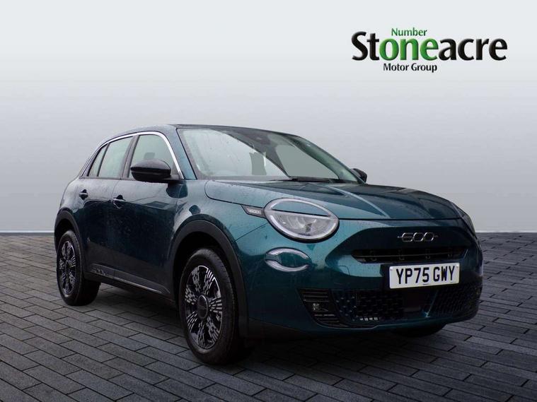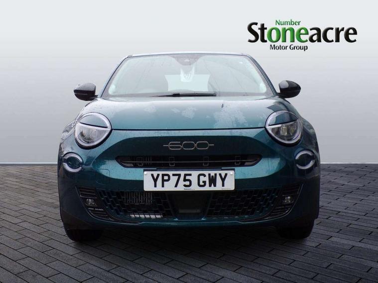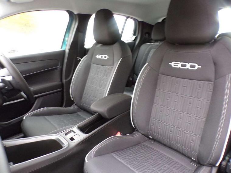 7" TFT digital cluster, Bluetooth connectivity, BSRF connectivity box, Connected services, Cruise control, Drowsy driver detection, Emergency E-call assist, Engine emission level default, GSR II step 1, Intelligent speed assist, Lane keeping assistant (LKA), Odometer, Power assist steering, Rain and dusk sensors, Rear parking sensors, Traffic sign recognition, Wireless apple car play/android Auto, Without drive mode selector, L2-AGM 12V battery, 1st Row USB type-A and USB type-C, 4 speaker audio system, Radio, Uconnect infotainment 10.25" touchscreen with DAB, All power windows express Up/Down, Auto dimming frameless rear view mirror, Automatic headlights, Body coloured door handles, Chrome day light openings, Electric adjustable door mirrors, Exterior chrome accents, Front and rear Chromed 600 logo, Gloss black finish B pillar, Gloss black shark fin antenna, Glossy black door mirrors, Heated windscreen wiper blade area, LED 3rd brake light, LED daytime running lights, LED Fog lamps with cornering function, LED front signature lighting, LED front turn indicators and position lights, LED rear lights, LED rear signature lighting, LED reflector headlamps, Matt black side skirts with 600 chromed logo, Rear bumper embossed 600 logo, Rear roof spoiler, Rear side wing doors, Rear wiper, 2 Spoke synthetic leather steering wheel with audio control, 3 rear headrests, 3 seat bench in 2nd row, 4 way manually adjustable passenger seat, 6 way manually adjustable drivers seat, Auxilliary 12V power socket, Body colour dashboard fascia, Chrome interior door handles, Dark metachrome dashboard ring, English handbook, Front centre armrest, Front headrests, Front passenger grab handle, Front seatback pockets, ISOFIX attachment on front passenger and rear passenger seats, Manual climate control, Metachrome central compartment bezel, Monogram fabric upholstery, Paddle shifts, Partial body cover for shipment, Predisposal for accessory upgrade to default tunnel pad cover (dedicated prnd bezel), Rear seat 40/60 split, Single front passenger seat, Smart 15L storage central tunnel with tunnel pad cover, Sunvisor label ciao Fiat, Sunvisors with vanity mirrors, 3x3 point rear seatbelts, 6 airbags, ABS, Autonomous Emergency Brake (AEB) & Vulnerable Road User (VRU) Protection, Child locks on rear doors, Electronic parking brake with auto hold, ESC (Electronic Stability Control), Front passenger airbag deactivation, Seatbelt reminder and pretensioners for all seats, Anti-theft volumetric alarm, Anti-theft wheel bolts, Keyless Go, 17" Diamond cut alloy wheels, Fix and go puncture repair kit,