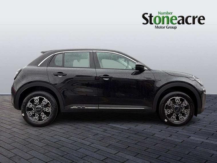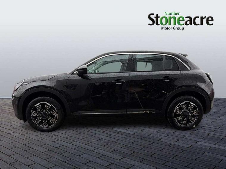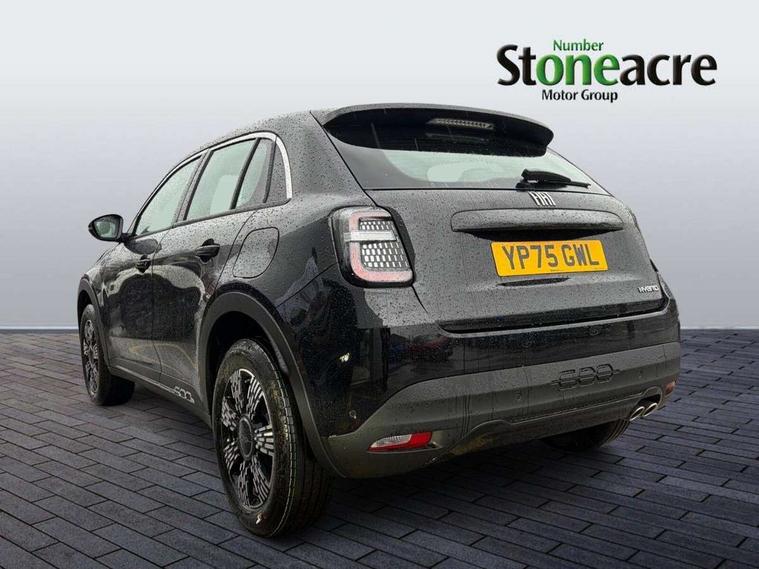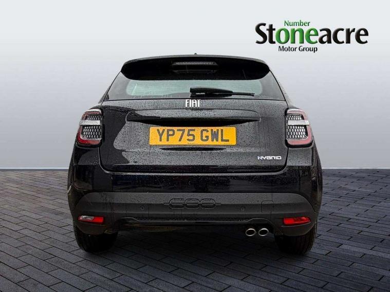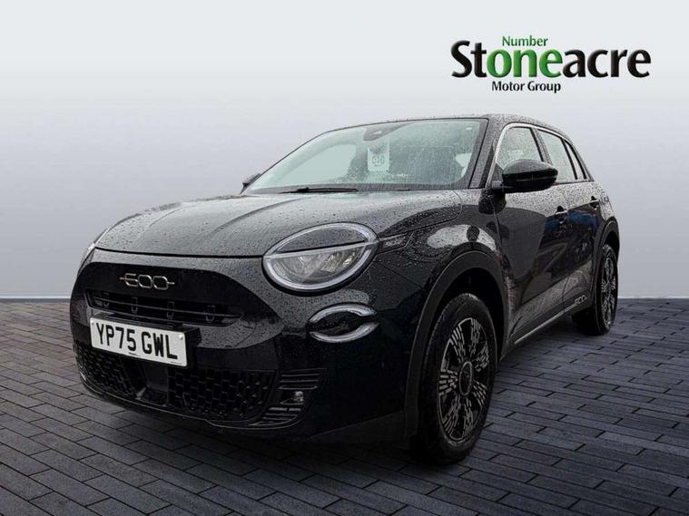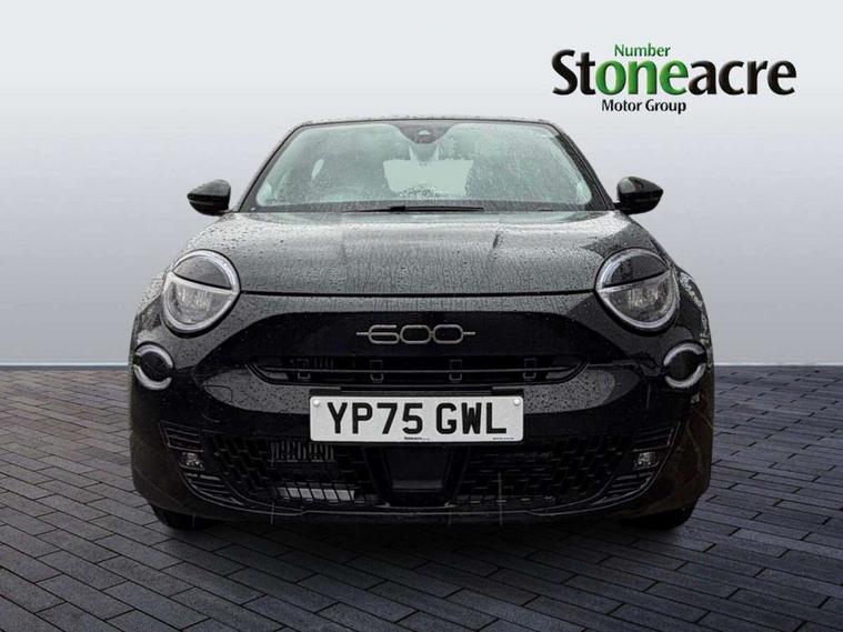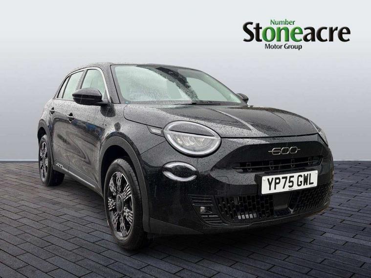 7" TFT digital cluster, Bluetooth connectivity, BSRF connectivity box, Connected services, Cruise control, Drowsy driver detection, Emergency E-call assist, Engine emission level default, GSR II step 1, Intelligent speed assist, Lane keeping assistant (LKA), Odometer, Power assist steering, Rain and dusk sensors, Rear parking sensors, Traffic sign recognition, Wireless apple car play/android Auto, Without drive mode selector, L2-AGM 12V battery, 1st Row USB type-A and USB type-C, 4 speaker audio system, Radio, Uconnect infotainment 10.25" touchscreen with DAB, All power windows express Up/Down, Auto dimming frameless rear view mirror, Automatic headlights, Body coloured door handles, Chrome day light openings, Electric adjustable door mirrors, Exterior chrome accents, Front and rear Chromed 600 logo, Gloss black finish B pillar, Gloss black shark fin antenna, Glossy black door mirrors, Heated windscreen wiper blade area, LED 3rd brake light, LED daytime running lights, LED Fog lamps with cornering function, LED front signature lighting, LED front turn indicators and position lights, LED rear lights, LED rear signature lighting, LED reflector headlamps, Matt black side skirts with 600 chromed logo, Rear bumper embossed 600 logo, Rear roof spoiler, Rear side wing doors, Rear wiper, 2 Spoke synthetic leather steering wheel with audio control, 3 rear headrests, 3 seat bench in 2nd row, 4 way manually adjustable passenger seat, 6 way manually adjustable drivers seat, Auxilliary 12V power socket, Body colour dashboard fascia, Chrome interior door handles, Dark metachrome dashboard ring, English handbook, Front centre armrest, Front headrests, Front passenger grab handle, Front seatback pockets, ISOFIX attachment on front passenger and rear passenger seats, Manual climate control, Metachrome central compartment bezel, Monogram fabric upholstery, Paddle shifts, Partial body cover for shipment, Predisposal for accessory upgrade to default tunnel pad cover (dedicated prnd bezel), Rear seat 40/60 split, Single front passenger seat, Smart 15L storage central tunnel with tunnel pad cover, Sunvisor label ciao Fiat, Sunvisors with vanity mirrors, 3x3 point rear seatbelts, 6 airbags, ABS, Autonomous Emergency Brake (AEB) & Vulnerable Road User (VRU) Protection, Child locks on rear doors, Electronic parking brake with auto hold, ESC (Electronic Stability Control), Front passenger airbag deactivation, Seatbelt reminder and pretensioners for all seats, Anti-theft volumetric alarm, Anti-theft wheel bolts, Keyless Go, 17" Diamond cut alloy wheels, Fix and go puncture repair kit,