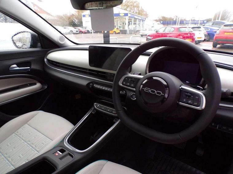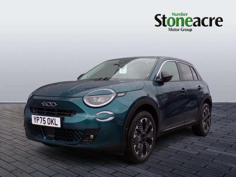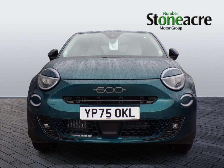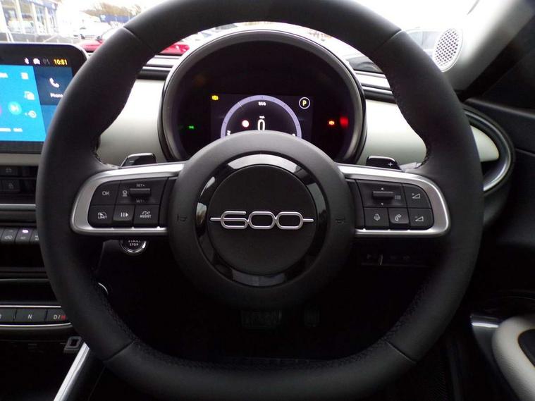 360 degree parking sensors with 180 degree rear view camera, 7" TFT digital cluster, Autonomous driving level 2: Adaptive cruise control with stop & go and lane centering, Blind spot detection, Bluetooth connectivity, BSRF connectivity box, Connected services, Drowsy driver detection, Emergency E-call assist, Engine emission level default, GSR II step 1, Hands free power liftgate, Intelligent speed assist, Lane keeping assistant (LKA), Odometer, Power assist steering, Rain and dusk sensors, Semi-automatic parking with Visiopark 1 system, Traffic sign recognition, Wireless apple car play/android Auto, Wireless charging pad for smartphones, Without drive mode selector, L2-AGM 12V battery, 1st Row USB type-A and USB type-C, 2nd Row USB type-C, 6 speaker audio system, Radio, Uconnect infotainment 10.25" touchscreen with integrated navigation system and DAB, All power windows express Up/Down, Auto dimming frameless rear view mirror, Automatic headlights, Automatic high/low beam, Body coloured door handles, Chrome day light openings, Chromed exhaust tip, Electric adjustable/heated/folding door mirrors, Exterior chrome accents, Front and rear Chromed 600 logo, Gloss black finish B pillar, Gloss black shark fin antenna, Glossy black door mirrors, Heated windscreen wiper blade area, LED 3rd brake light, LED daytime running lights, LED Fog lamps with cornering function, LED front signature lighting, LED front turn indicators and position lights, LED rear lights, LED rear signature lighting, LED reflector headlamps, Matt black side skirts with 600 chromed logo, Privacy glass, Puddle lights, Rear bumper embossed 600 logo, Rear roof spoiler, Rear side wing doors, Rear wiper, 2 Spoke synthetic leather steering wheel with audio control, 3 rear headrests, 3 seat bench in 2nd row, 6 way manually adjustable front passenger seat, 6 way power adjustable driver seat with lumbar support and massage function, Adjustable trunk floor, Automatic climate control, Auxilliary 12V power socket, Cargo flex fit, Chrome interior door handles, Dark metachrome dashboard ring, English handbook, Front centre armrest, Front headrests, Front passenger grab handle, Front seatback pockets, Heated front seats, ISOFIX attachment on front passenger and rear passenger seats, Matt Ivory painted dashboard fascia, Metachrome central compartment bezel, Monogram Synthetic leather upholstery, Paddle shifts, Partial body cover for shipment, Predisposal for accessory upgrade to default tunnel pad cover (dedicated prnd bezel), Rear seat 40/60 split, Single front passenger seat, Smart 15L storage central tunnel with La prima tunnel pad cover, Sunvisor label ciao Fiat, Sunvisors with vanity mirrors, Velour floor mats, 3x3 point rear seatbelts, 6 airbags, ABS, Autonomous Emergency Brake (AEB) & Vulnerable Road User (VRU) Protection, Child locks on rear doors, Electronic parking brake with auto hold, ESC (Electronic Stability Control), Front passenger airbag deactivation, Seatbelt reminder and pretensioners for all seats, Anti-theft volumetric alarm, Anti-theft wheel bolts, Passive entry and keyless go, 18" Diamond cut alloy wheels, Fix and go puncture repair kit,