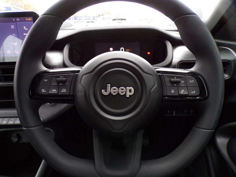 All-Terrain Mode Selector, Apple Carplay/Android Auto with wireless mirroring, BSRF connectivity box, Connectivity services, Driver attention alert system with camera, Drowsy driver detection system, eCall emergency call system, Keyless Start/Engine On Button, Lane keep assist, Odometer, PAS, Quick Guide English, Rear parking sensors, Telematic box and connected services, Traffic sign recognition, Warranty Booklet - UK, Battery default, High efficiency alternator, Audio system with 6 speakers, 3rd brake light, All power windows express Up/Down, Automatic headlights, Black mirror caps, Body colour exterior door handles, Day time running light, Grey skid plates, Halogen rear lights, Heated and electrically folding outside mirrors, LED reflector headlamps, Manual control rear view mirror, Rain sensor, Rear side wing doors, Rear wiper, Wiring preperation for towing group by Mopar, 3 rear headrests, 3 seat bench in 2nd row, 4 way manually adjustable passenger seat, 6 way manually adjustable drivers seat, Central console dividers x2, Cloth upholstery, Driver and front passenger sunvisor with vanity mirror, Foldable second row seats 40/60 - Fix and Fold, Front central armrest with storage, Front head restraints, Front passenger grab handle, Front passenger isofix child seat attachment, Front seat backrest pocket, Full black upper interior and headlining, I am Jeep label, Manual air conditioning, Partial body cover for shipment, Single front passenger seat, Anti-lock braking system (ABS), Child locks on rear doors, Electric parking brake, ESC - Electronic Stability Control + traction control, Hill descent control, Kit fix and go predisposition/housing only, Rear seat ISOFIX, Three 3 point rear seatbelts, Vulnerable road user recognition - Pedestrian/Cyclist incl. AEB, Volumetric anti theft alarm, 16" alloy wheels painted in medium glossy grey with summer chainable, Fix and go tyre repair kit,