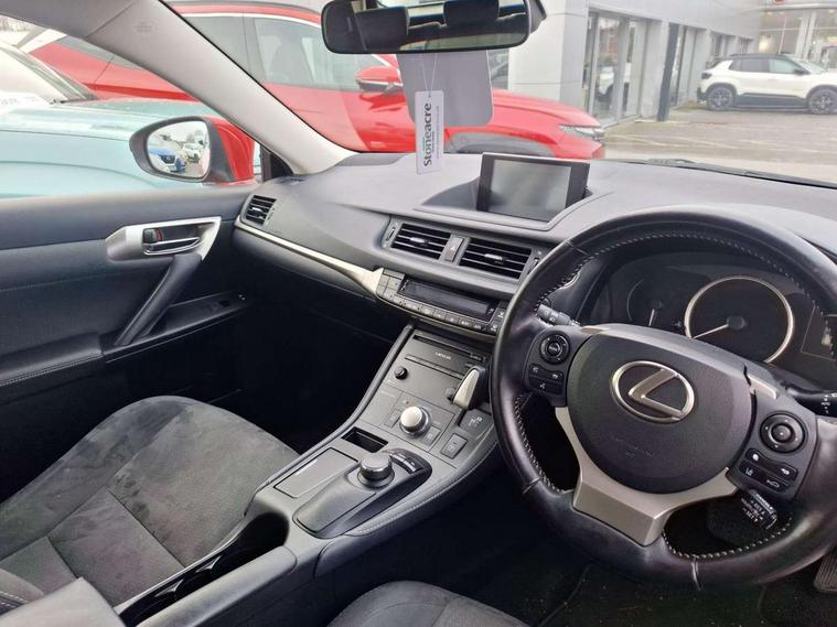 7" colour screen, Adaptive cruise control, Bluetooth telephone connectivity, Drive mode selector, Lexus Navigation System + Safety system, Push button starter, Rear parking sensors, Reversing camera, Speed sensitive power steering, Traffic sign recognition, Trip computer, Vehicle Dynamics Integrated Management, Vehicle Stability Control (VSC), 6 speakers, Auxiliary input socket, DAB Digital radio, Radio/CD + MP3, Steering wheel audio controls, USB connection, Adaptive rear spoiler, Auto high beam, Black scuff plates, Body colour bumpers, Door mirror puddle lights, Electric adjustable door mirrors, Electric folding door mirrors, Front and rear electric windows, Front fog lights, Green tinted UV reducing windscreen glass, Heated door mirrors, LED brake lights, LED daytime running lights, LED tail lights, Rain sensor windscreen wipers, Rear diffuser, Rear wiper, Shark fin roof aerial, 2 cupholders in front centre console, 4 load securing hooks in luggage area, 5 headrests, 60/40 split folding rear seat, Carpet mats, Centre arm rests, Cloth upholstery, Driver/passenger sunvisors with illuminated vanity mirrors, Dual zone climate control, Front door pockets, Illuminated entry system, Isofix child seat attachment, Leather steering wheel, Manually adjustable front seats - 6 way driver/4 way passenger, Map pocket on front seat backs, Rear armrest, Rear coat hook, Storage compartment in centre console, Storage compartment under load area floor, Tilt/telescopic adjustable steering wheel, ABS, Brake assist function, Curtain shield airbag, Driver and passenger side airbags, Drivers knee airbag, Dual stage driver/passenger airbags, Electronic brake force distribution, Front seatbelt pretensioner, Hill start assist control (HAC), Passenger airbag cut-off device, Passenger knee airbag, Pre crash system, Seatbelt warning, Sway warning system, Three 3 point rear seatbelts, Traction control, Tyre pressure warning, WHIPS whiplash protection system - front, Anti theft system, Double locking, Immobiliser, Intrusion sensor and alarm, Locking wheel nuts, Remote central locking, Speed sensitive power door locks, VIN Window etching, Black interior trim, 17" 5 twin spoke alloy wheels, Space saver spare wheel,
