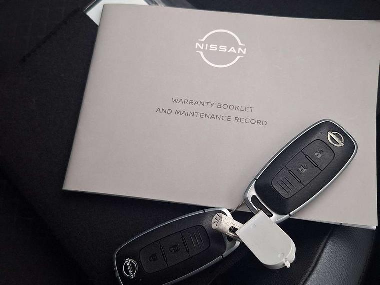 7" full colour TFT screen combimeter, Apple CarPlay and Google Android auto, Drive modes select (Eco, normal and sport), e-Pedal step, Emergency and breakdown call, EV mode selector, Front parking sensor, Intelligent lane intervention, Lane departure warning system, Nissan connect 8" touch screen entertainment system, Nissan connect nav with TomTom traffic, Nissan connect services and Wifi connection, Outside temperature sensor, Power Steering, Rear parking sensor, Traffic sign recognition, Trip computer, Voice recognition, Gasoline particulate filter, 6 speakers, Bluetooth system, USB, Aux-in and 12V socket, DAB Digital radio, Rear console USB port, Auto dimming interior rear view mirror, Auto headlights, Automatic hazard signal with emergency stop signal, Body colour bumpers, Body colour door handles, Electrically adjustable door mirrors with integrated indicators, Follow me home headlights, Front and rear electric window with one touch driver window, Heated and auto folding door mirrors, High beam assist, LED daytime running lights, LED headlamps, LED rear fog lamp, LED rear lamps, Rain sensor windscreen wipers, Rear privacy glass, Rear side wing doors, Rear wiper, Three blink turn signal, 3 height adjustable rear headrests, 3 seat bench in 2nd row, 60/40 split folding rear seat, Automatic climate control, Card holder on driver sunvisor, Cloth upholstery with black and metallic grey syntech leather inserts, Driver and passenger sliding and reclining seats, Driver side rear coat hanger, Driver/passenger sunvisors and vanity mirrors, Front and rear cabin lights, Front armrest, Front door pockets with bottle holders, Front head restraints, Front/rear passenger grab handles, Grey synthetic leather kneepad, Height adjustable driver's seat, Internal chrome door handles, Leather gearshift knob, Leather steering wheel, Luggage board, Luggage space lighting, Monoform sporty seats, Multifunction steering wheel, Rear door bottle holders, Single front passenger seat, Steering wheel mounted gearshift paddles, Telescopic steering wheel adjustment, Two cupholders in front centre console, Two rear isofix child seat anchorage points with top tether, Welcome light and console tray ambient lighting, ABS with EBD and brake assist, Active ride control, Active Trace Control, Driver and passenger airbags, Driver and passenger side airbags, Electric handbrake with auto hold function, Electronic Stability Programme (ESP), Front and rear curtain airbags, Height adjustable seatbelts, Hill start assist, Intelligent emergency braking with pedestrian and cyclist recognition, Rear door child safety locks, Seatbelt reminder for driver/front passenger and rear seats, Single tone horn, Three 3 point rear seatbelts, Traction control, Tyre pressure monitoring system, VDC Dynamic Vehicle Control, Ventilated rear brake discs, Alarm, Immobiliser, Intelligent key and start push button with walk away lock and approach unlock functions, Remote central locking,