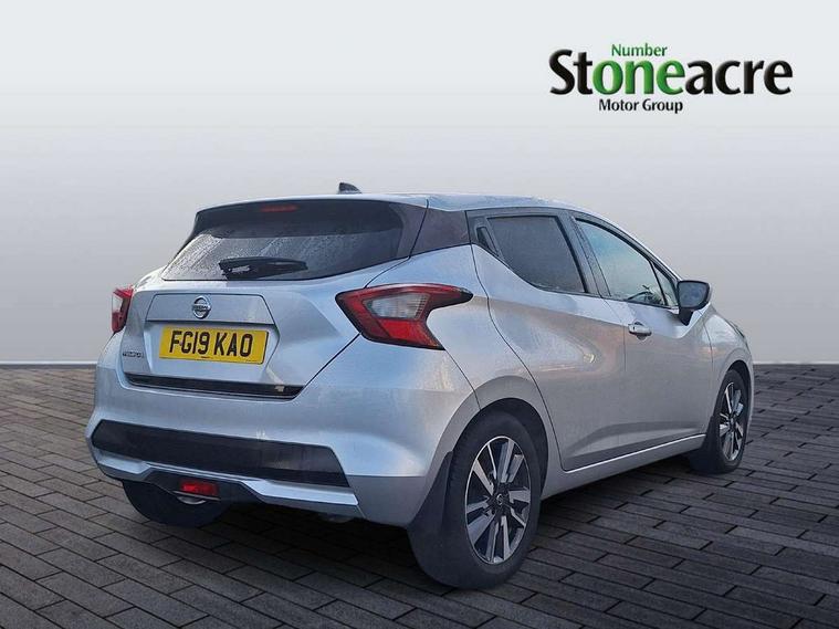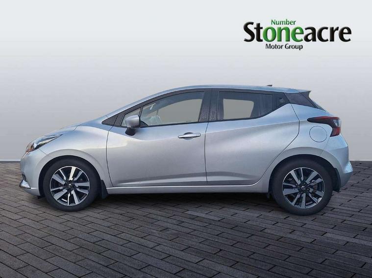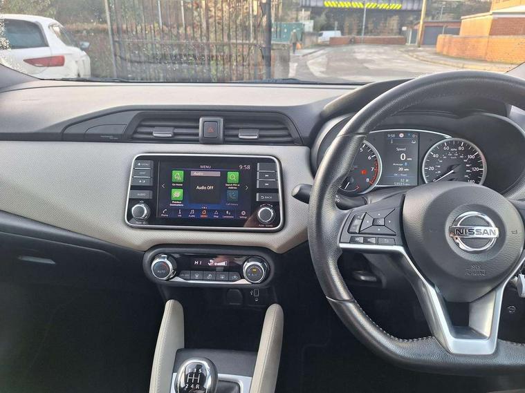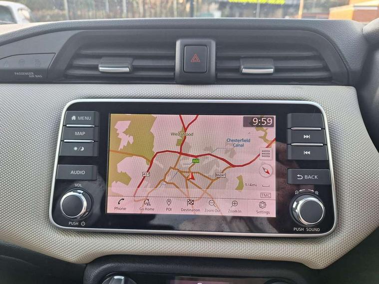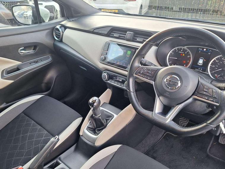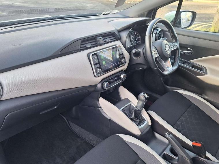 16" alloy wheels, Tyre repair kit, Anti-theft immobiliser, Remote central locking, 4 speakers, Aux-in socket, DAB Digital radio, MP3 player, Steering wheel mounted audio controls, USB/iPod connection, ABS+EBD+Brake assist, Crash sensor, Driver/Front Passenger airbags, ESP + ASR traction control + CSV understeer control, Forward emergency braking, Front and rear curtain airbags, Front side airbags, Height adjustable front seatbelts with pre-tensioners and load limiters, Hill start assist, Intelligent emergency braking with pedestrian recognition, Passenger airbag deactivation system, Rear seatbelts with pre-tensioners and load limiters, Seatbelt warning, Three 3 point rear seatbelts, Tyre pressure monitoring system, Warning triangle and first aid kit, Auto dimming rear view mirror, Automatic activation of hazard warning lights, Automatic headlights, Body coloured door handle inserts, Electric folding door mirrors, Electrically adjustable door mirrors, Front and rear electric windows, Front fog lights, Heated door mirrors, High beam assist, High mounted stop lamp, LED daytime running lights, LED indicators in door mirrors, Rain sensor windscreen wipers, Rear privacy glass, Rear roof spoiler, Rear wiper, 12V power point front, 2 height adjustable rear headrests, 3 cupholders, 60/40 split folding rear seat, Automatic air conditioning, Boot carpet, Boot compartment cover, Boot light, Chrome interior door handles, Driver's seat manual height adjust, Driver/passenger sunvisors and vanity mirrors, Front and rear door pockets with bottle holders, Front console storage box, Gear shift indicator, Height adjustable front headrests, Height adjustable steering wheel, Isofix front passenger and rear seat preparation, Leather wrapped steering wheel, LED ambient lighting, Luggage compartment lighting, Map reading lamp, Parcel shelf, Passenger seat back pocket, Reclining front seats, Satin silver accents on steering wheel, Satin silver air vents, Silver gearknob, 5" TFT driver information centre, Adjustable speed limiter, Bluetooth system, Cruise control, Lane departure warning system, Nissan connect sat nav system, Outside temperature gauge, Smartphone integration with Apple CarPlay and Android auto, Stop/start system, Traffic sign recognition, Trip computer,