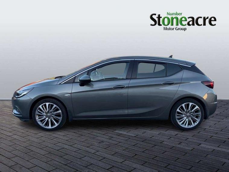 Central facia display with digital clock, outside air temperature and audio information, Cruise control + speed limiter, Digital fuel gauge with low fuel warning light, Digital water temperature gauge with warning light, Electric speed sensitive power steering, Gearshift up/down indication light, Left Key in ignition audible warning, Lights on audible warning, Monochrome colour display in instrument cluster, Multi function trip computer, Navi900 Intellilink Sat Nav, 8" screen, AM/FM/DAB radio/USB/Aux-in, audio streaming, traffic program, shark fin aerial, 6 speakers w/20W per channel, Oil life monitoring system, Rev counter, Service due indicator, Speedometer, 2 USB Power socket for rear seat, Steering wheel mounted audio controls, Adaptive brake lights, Alloy effect front door sill covers, Automatic lighting control, Automatically dimming anti dazzle rear view mirror, Body colour door handles, Body colour rear roof spoiler, Body coloured door mirrors, Chrome effect upper window trim, Chrome front grille, Chrome headlight surround, Dipping rear view mirror, Door to door illumination, Electric front/rear windows/one touch facility, Gloss black finish B pillar, Gloss black finish C pillar, Hazard warning lamps, Heated rear screen with timed cut off, High level LED centre rear brake light, Intermittent rear wash/wipe, LED daytime running lights, LED side repeat indicators, Rain sensor windscreen wipers, Rear fog lights, Reversing light, Shark fin roof aerial, Side window demist vents, Solar heat absorbing windscreen and windows, Tinted windows, Tunnel detection for auto light control, Two speed windscreen wipers with variable intermittent wipe, Windscreen demist vents, 12V electrical accessory socket in front, 40:20:40 split folding rear bench seat, Adjustable front armrest, Ambient LED downlighter in facia/centre console, Ambient LED lighting in front door, Black door panels with black leather effect inserts, Black leather effect side bolsters and surrounds, Chrome interior door handles, Driver and front passenger illuminated vanity mirrors with flip up covers, Driver and front passenger sunvisors, Dual zone electronic climate control including air conditioning, Fade up/down courtesy light, Folding storage box on driver side lower facia, Four adjustable facia vents, Four load restraint lashing eyes, Front and rear door pockets, Front centre armrest with storage, Front courtesy lights, Front red LED ambient lighting, Front seat back storage pockets, Fully carpeted load area, Glovebox with lid, Height adjustable and removable rear head restraints (x3), Height adjustable front head restraints, Illuminated load area, Interior tailgate handle, Isofix child seat mounting points on outer rear seats, Luggage compartment cover, Perforated siena leather upholstery, Reach + rake adjustable steering column, Rear centre armrest, Rear courtesy lights, Satin chrome effect bezel on steering wheel, Storage compartment in centre console, Titanium headlining, Twin front reading lights with illuminated switches, Twin gas assisted tailgate struts, Twin rear reading lights with illuminated switches, Two drinks holders in centre console, Winter Pack - Astra, 3x3 point rear seatbelts, Anti-lock braking system (ABS), Child locks on rear doors, Electronic parking brake, Electronic Stability Programme, Height adjustable front seatbelts, Hill start assist, Passenger airbag deactivate switch, Pedal release system, Seatbelt pretensioners on front/outer rear seats, Seatbelt warning, Six airbags - Driver's dual stage airbag/front passenger's dual stage airbag/front seat side impact airbags/full size curtain airbags, Traction control, Tyre pressure monitoring system, Electronically protected audio, Engine Immobiliser & Deadlocks, Freewheeling door locks, Locking wheel bolts, Remote control central locking, Remote control ultrasonic security alarm system, Visible vehicle identification number, Black facia with piano black trim inserts, Instrument panel bar in satin chrome, Piano black trim inserts on front doors, Silver air vent surrounds,