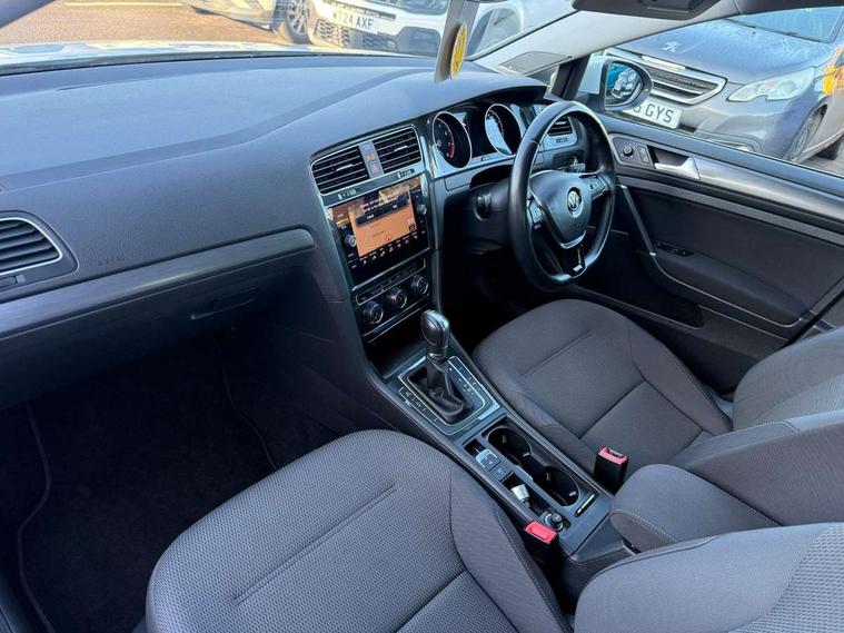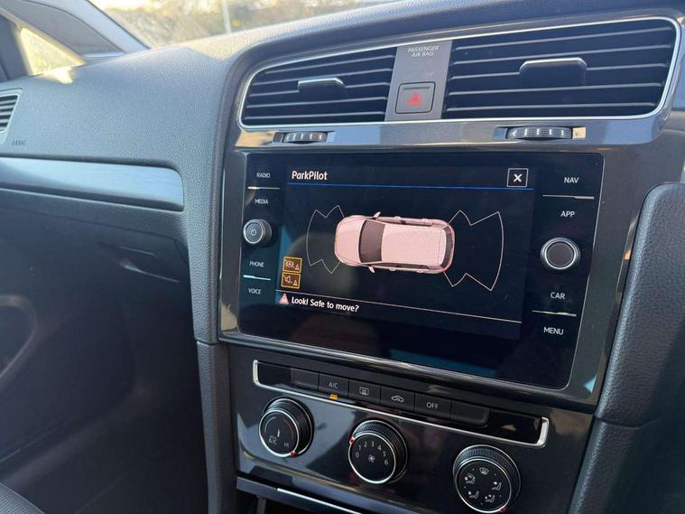 'Lights On' Reminder warning buzzer, ACC - Adaptive cruise control with front assist, forward collision warning, distance monitoring, city emergency brake and speed limiter, Bluetooth telephone and audio connection for compatible devices, Brake pad wear indicator warning light, Driver alert system, Driving Mode Selection with four preset modes - Eco, normal, sport or individual modes, Instrument cluster in white, Multifunction computer with visual gear change recommendation for fuel consumption, Power assisted speed sensitive electro-mechanical steering, Push tank flap, Speed limit display, Speedo, rev counter, electronic odometer, trip, service interval display, exterior temperature and fuel gauge, Stop/start system, Think blue trainer driver tips and journey analysis, Warning buzzer and light for front seatbelts unfastened, We Connect Go Dongle, Battery regeneration during braking, XDS electronic differential lock, Composition media system, DAB Digital radio receiver, Driver Personalisation profile selection, MP3/WMA compatability, Multi device interface (MDI) with USB connection, Personalisation 1.1 profile for media, Premium USB cable in choice of either Apple or Android smartphone compatibility, SMS Functionality, Title and cover art display, 4 X 20W output, USB connection and socket, USB and SD card connectivity, Auto dimming rear view mirror, Black front air intake and radiator grille with chrome insert, Black rear diffuser, Body colour bumpers, Body colour door handles, Body colour door mirrors with integrated indicators, Dusk sensor + automatic driving lights, Electric front windows, Electric rear windows, Electrically adjustable and heated door mirrors, Fully galvanised body, Heated rear windscreen, Hidden exhaust pipe, High level 3rd brake light incorporating LED Technology, LED front fog lights with static cornering light function, Range adjustable headlights via infotainment system with LED daytime running lights, Rear fog lamp, Rear number plate lights incorporating LED technology, Rear tinted glass 65% light absorbing from B pillar backwards, Rear window aerial, Rear window wash/wipe with intermittent wipe, Reflectors in all doors, Remote electrically foldable door mirrors, door mirror puddle lights and reverse activated kerb-view adjustment on passengers door mirror, Tailgate with integrated rear roof spoiler, Windscreen wipers/ intermittent wipe + 4 position delay, 12V socket in luggage compartment, 3 rear headrests, 4 load lashing points in luggage compartment, 60/40 split folding rear seat backrest, Auto fold down lever in rear seat backrest, Bag hook in luggage compartment x 2, Black decorative sleeve on gear handles, Cooled glovebox, Cover for storage compartment in centre, Cupholder cover, Dust/pollen filter, Front and rear reading lights X 2, Front centre armrest with storage compartment and two rear air vents, Front seat back storage pockets, Grab handles front x 2, rear x 2 with integrated coat hooks, Height and reach adjustable steering wheel, Illuminated vanity mirrors, Instrument lighting white adjustable panel illumination, Interior light delay, Isofix preparation for 2 rear child seats, Load through provision with rear centre armrest and cupholders x2, Luggage compartment lighting, Overhead storage box, Passenger underseat drawer, Pearl grey headlining, Storage box in luggage compartment, Storage compartment in roof console with cover, Storage compartments in centre console, Storage compartments in front doors, Storage compartments in rear doors, Stowable luggage compartment cover, Sun visors, Variable boot floor, height adjustable and removable, Convenience Pack - Golf, Light and Sight pack - Golf, Mirror pack - Golf, 3 rear three point seatbelts, Airbags - Driver's and front passenger's, curtain airbag, Driver's knee, front side impact and passenger's airbag deactivation switch, Anti-lock Braking System (ABS) with Hydraulic Brake Assist (HBA), Automatic post collision braking system, Child locks on rear doors, Driver/Passenger optimised head restraints, Electronic parking brake with auto hold, Electronic stability control (ESC) including Electronic differential lock (EDL) and ASR (Traction control) with deactivation via infotainment system, Front ventilated disc brakes and rear disc brakes, Pre crash preventive occupant protection, Three point height adjustable front seatbelts with tensioners, Tyre pressure loss indicator, Alarm with interior protection and deactivation via infotainment system, Electronic engine immobiliser, Brushed dark silver decorative inserts in dash and door panels, Chrome plated air vent surround, Chrome-plated light switch surround, Polar night black decorative inserts in centre console, Steel space saver spare wheel,