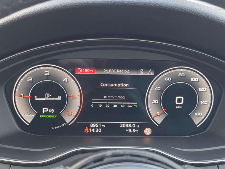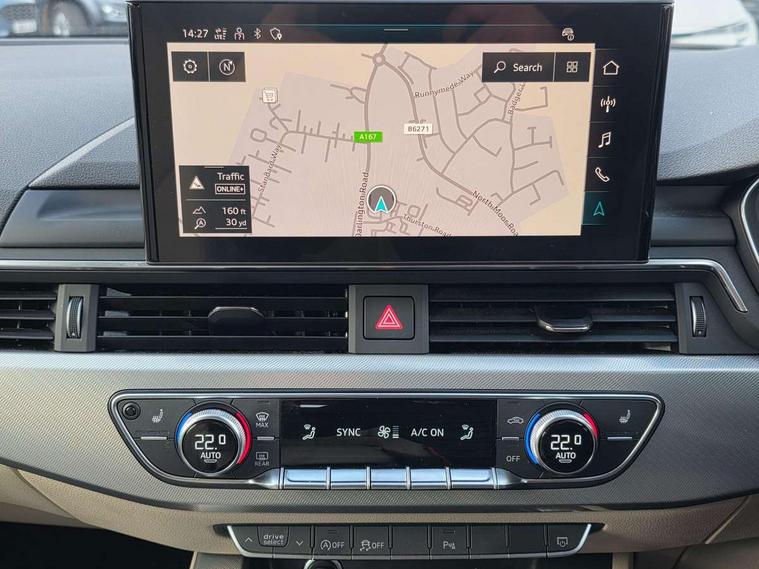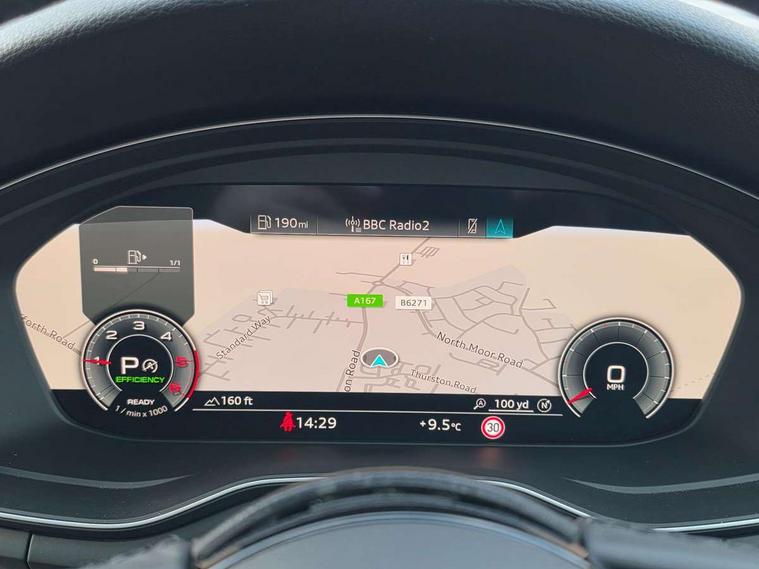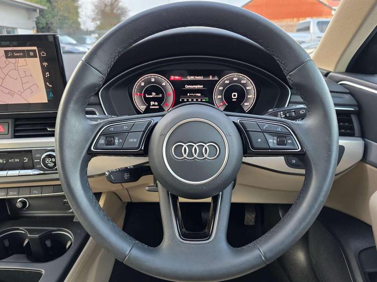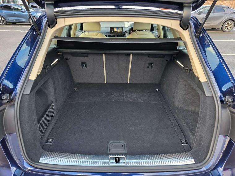 Audi connect safety and service (e-call), Audi drive select, Audi smartphone interface, Audi virtual cockpit, Automatic start-stop system with coasting functionality and efficiency programme, Bluetooth interface, Camera based traffic sign recognition, Electromechanical power steering, Email, calendar and text messages displayed via MMI, Front and rear parking sensors, Lane departure warning, MMI Navigation plus with MMI touch includes 10.1" high resolution colour MMI display, 3D map, Power operated tailgate, Rear view camera, Voice control system, Comfort dynamic suspension, 2 USB charging ports, 8 passive loudspeakers, DAB digital radio reception, Aluminium roof rails, Auto dimming rear view mirror, Body colour door handles, Body colour side sill trim, Body coloured door mirrors, Electric adjustable/heated/folding door mirrors with auto dimming, LED headlights and rear lights with LED daytime running lights, LED third brake light, Matt aluminium silver tailpipe trim, Rain and light sensors, Rear side wing doors, Rear wiper, S Line roof edge spoiler, Sport front and rear bumpers with side skirts, Variable intermittent front wash/wipe, Windscreen with acoustic glazing, 3 spoke high multi-function leather sport steering wheel with paddle shift and height and reach adjustable, 4 way electric lumbar support for driver and front passenger, 40/20/40 split folding 3 rear seat bench in 3 parts with rear centre armrest, Black carpets, Contrast stitching on seats, steering wheel and gear lever gaiter, Deluxe 3 zone electronic climate control, Door sill trims with aluminium inlay, Electric load area cover, Front and rear head restraints, Front centre armrest, Heated front seats, ISOFIX child seat mounting and top tether, Manual seat adjustment, Single front passenger seat, Twin leather upholstery + front sports seats, High gloss package - A4, LED Interior light pack - A4/S4, 3 rear seatbelts, 6 airbags - Driver, front passenger, curtain and side windows, Attention and drowsiness assist, Electronic Stabilisation Control (ESC) including ABS, ASR and EDL, Hill hold assist, Multi collision brake assist, Pop-up bonnet for pedestrian protection, Pre sense city, Rear door child safety locks, Seatbelt monitoring, Warning triangle and first aid kit, Anti theft alarm, Anti theft wheel bolts, Central locking, Keyless Go, Aluminium ellipse silver inlays, Tool kit, Tyre repair kit,