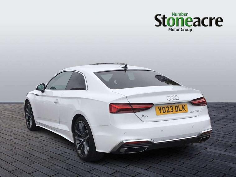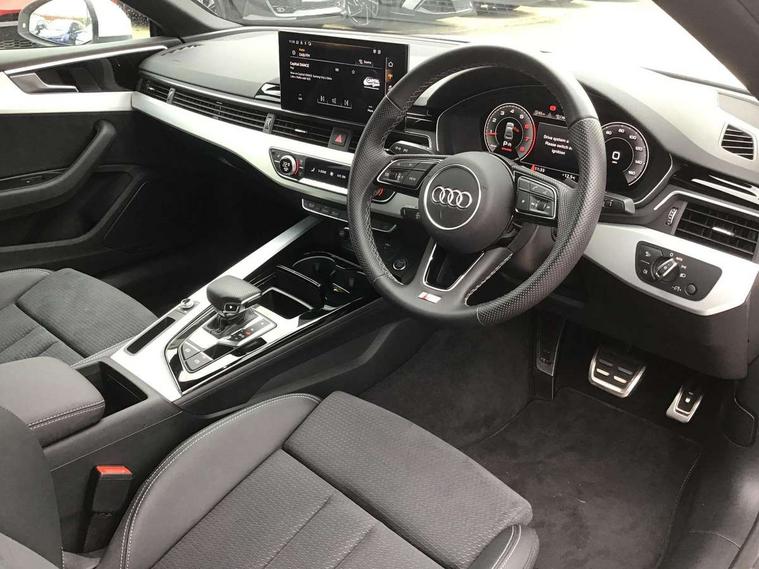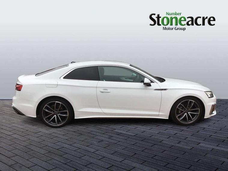 Audi connect safety and service (e-call), Audi connect with Amazon Alexa Integration, Audi drive select (Auto, Comfort, Dynamic, Efficiency and Individual), Audi parking system plus with front and rear sensors, Audi smartphone interface, Audi virtual cockpit - 12.3" full colour digital instrument cluster, vehicle/engine speed, Radio/media information+Driver assistance systems, Automatic start-stop system with coasting functionality and efficiency programme, Bluetooth interface, Electric boot lid release, Electro-mechanical power steering, Email, calendar and text messages displayed via MMI, MMI nav+ with MMI touch - 10.1" high resolution MMI display, touch sensitive, 3D map, route/country info, dynamic route guide, personal route assist, Rear view camera, Service interval indicator, Voice control system, 54 litre fuel tank, Sports suspension lowered by 23mm, 8 passive loudspeakers, CD player, DAB digital radio reception, Two additional USB ports for rear passenger in rear centre console, Two SDXC card slots, Auto dimming door mirrors, Auto dimming rear view mirror, Body colour bumpers, Body colour door handles, Body colour front spoiler lip, Body colour side sill trim, Body coloured door mirrors, Electric adjustable heated door mirrors, Electric folding door mirrors, Electric front windows, Front fog lights, Honeycomb structure radiator grille in grained matt black, Kerb-view function for passenger side, LED headlights and rear lights with LED daytime running lights, LED side indicator lights integrated into door mirrors, LED third brake light, Matt aluminium silver tailpipe trim, Privacy glass, Rain and light sensors, Rear boot, Rear side wing doors, S line badges on front wings, S line front and rear bumpers with side skirts, S Line rear diffuser in matt anthracite black with trim strip in matt aluminium silver, Side air inlets in grained matt black with matt aluminium silver inlay, Variable front intermittent wipers, Windscreen with acoustic glazing, 2 seat bench in 2nd row, 3 spoke high multifunction leather sport steering wheel with paddle shfit and S badging perforated leather grips, 4 way electric lumbar support for driver and front passenger, 40/20/40 split folding 2 seater rear seat bench with rear centre armrest, Adjustable steering column, Black cloth headlining, Black perforated leather gearknob, Contrast stitching on seats, steering wheel and gear lever gaiter, Deluxe 3 zone electronic climate control, Front centre armrest, Front head restraints, Front/rear floor mats, Heated front seats, Illuminated door sill trim with S logo, ISOFIX child seat mounting and top tether, Luggage compartment mat, Manual seat adjustment, Rear headrests, Single front passenger seat, Stainless steel pedals, Sunvisors with vanity mirrors, LED interior light pack - A5/RS5, 2 x 3-point rear seatbelts, 6 airbags - Driver, front passenger, curtain and side airbags, Electromechanical parking brake, Electronic Stabilisation Control (ESC) including ABS, ASR and EDL, Front passenger airbag deactivation, Height adjustable front seatbelts, Hill hold assist, Multi collision brake assist, Pop-up bonnet for pedestrian protection, Pre sense city, Seatbelt monitoring, Tyre pressure warning, Variable restraint system, Warning triangle and first aid kit, Anti theft alarm system, Anti theft wheel bolts, Immobiliser, Keyless Go, Remote central locking, Matt brushed aluminium inlays, Tool kit, Tyre repair kit,