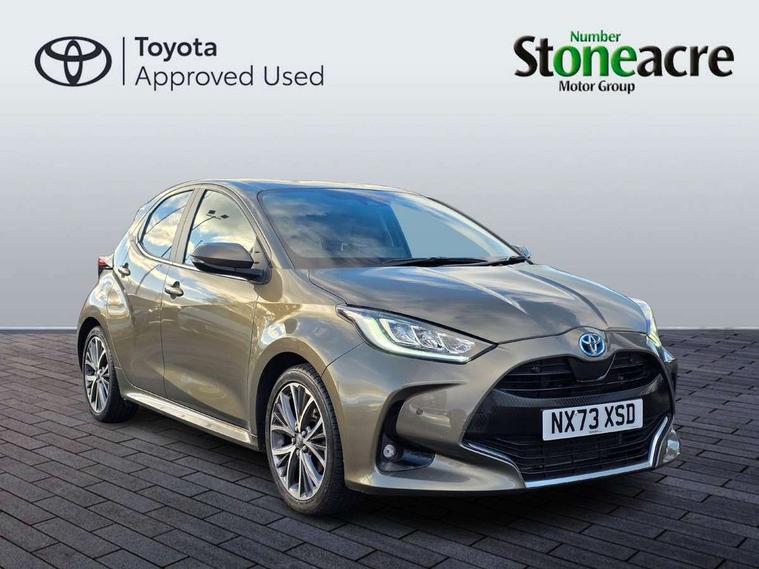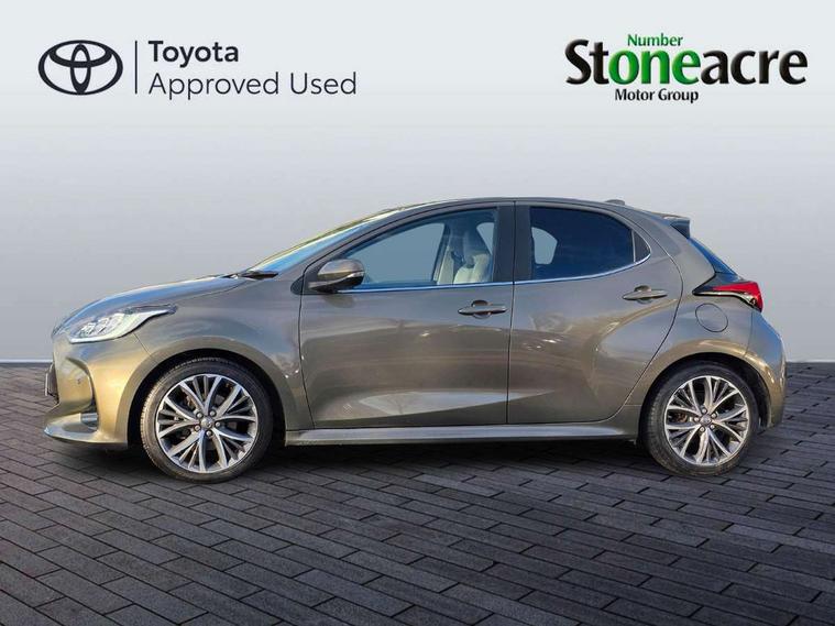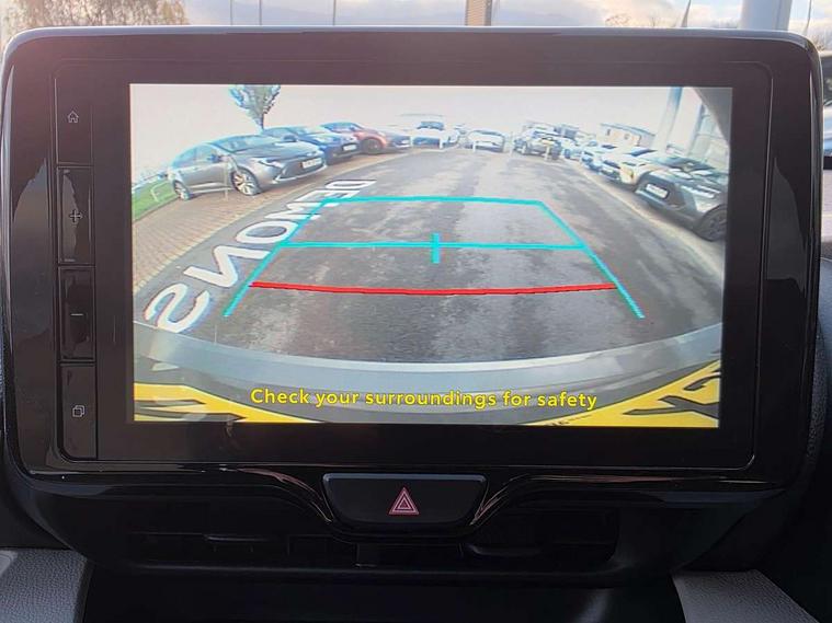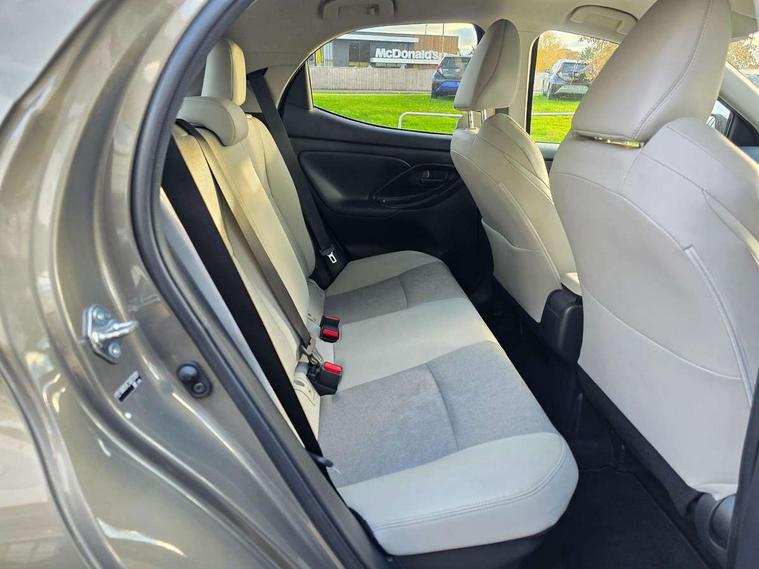 Adaptive cruise control, Adjustable speed limit with speed warning, Blind spot monitoring, Bluetooth connectivity, Colour binocular inspired displays with digital speedometer, E-call, Electric power steering, Hybrid energy display, Multi information display switches on steering wheel, Reversing camera, Smartphone integration with Apple CarPlay and Android auto, Tailgate, Touch 2 navigation system, Voice recognition, Vehicle Stability Control (VSC), 6 speakers, 9" HD multimedia display touch screen with Toyota smart connect, USB connection, Acoustic windscreen glass, Auto windscreen wipers, Automatic headlights, Automatically retractable door mirrors, Body coloured door mirrors, Electric adjustable heated door mirrors, Follow me home headlights, Front auto power windows with anti jam protection, Full LED rear lights, LED daytime running lights, LED front fog lights, LED front light guide, LED Headlights, LED High mounted stop lamp, LED Indicators, LED rear light guide, Manual headlight levelling, Painted chequered front grille, Rain sensor, Rear auto power windows with anti jam protection, Rear privacy glass, Rear side wing doors, Rear spoiler, Rear wiper, Satin lower front grille, Shark fin antenna, Turning signal integrated indicators in door mirrors, Variable front intermittent wipers, 3 adjustable rear headrests, 3 seat bench in 2nd row, 3 spoke leather steering wheel, 60/40 split folding rear seat, Active headrests, Adjustable boot height, Coat hooks in rear grab handles, Cup holders (2 front & door), Data Communication Module (DCM) connected services, Dual zone automatic air conditioning, Fabric seat with partial synthetic leather upholstery, Front armrest, Front sport seats, Glovebox, Grey roof lining, Height adjustable driver's seat, Height adjustable passenger seat, Isofix seat fixing, Leather gearshift, Map pockets on the backs of the front seats, Pollen filter, Shopping bag hooks, Single front passenger seat, Tilt/telescopic steering column, Parking pack - Yaris, 3 point seatbelts on all rear seats, ABS+EBD+Brake assist, Electronic parking brake, Emergency brake light system (EBS), Front passenger airbag on/off switch, Front seatbelt reminder, Hill start assist control (HAC), Rear child proof door locks, Rear seat belt reminder, Supplemental Restraint System (SRS) 8 airbags: Driver & passenger's airbags, dual side curtain airbags, side impact airbags, front centre airbag, Toyota Safety Sense 2, Precollison + Night time Pedestrian & Cyclist Detection, Lane Trace Assist, Auto High Beam, Intelligent ACC & Road Sign Assist, Tyre pressure warning system, 2x Master key, Alarm/immobiliser, Keyless smart entry with push button start, Remote AC via MyT, Remote locking via MyT, Remote powered central double locking doors, Satin chrome interior styling, Soft touch instrument panel, Space saver spare wheel,