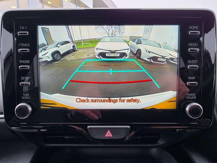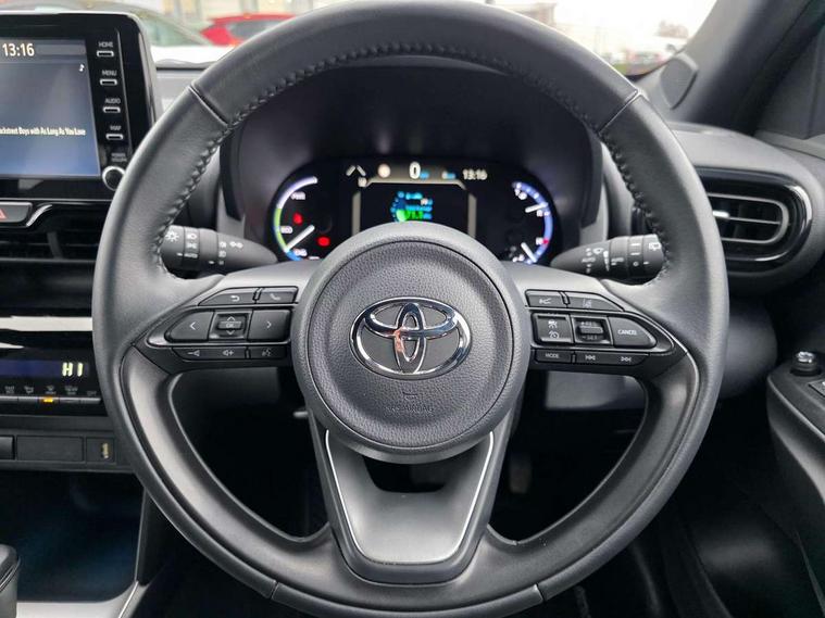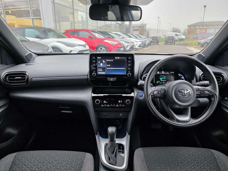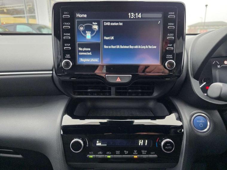 7" Multi information display screen, 8" Toyota touch 2 multimedia system with Smartphone integration with Apple CarPlay and Android auto, Adjustable speed limiter, Bluetooth connectivity, Driver attention alert system, eCall emergency system, Electric power steering, Full range intelligent adaptive cruise control, Hybrid system indicator, Key reminder warning, Lane trace assist, Multimedia, audio, telephone and voice recognition switches on steering wheel, My T Connected services, Pre-collision system enhanced with emergency steering assist, Reversing camera, Road sign assist - RSA, Steering assisted vehicle stability control, 6 speakers, DAB Digital radio, USB connection, 3rd brake light, Acoustic windscreen glass, Aluminium roof rails, Anti-jam protection on power windows, Auto high beam [AHB] with on/off switch, Automatic headlights, Black lower front grille, Black Shark-fin antenna, Black upper front grille, Black wheel arch mouldings, Body colour door handles, Body colour front bumper, Body colour rear bumper, Electric adjustable heated door mirrors, Follow me home headlights, Front and rear electric windows with auto up/down function, Headlight cut off reminder, Indicators integrated on door mirrors, Intermittent rear wiper, LED daytime running lights guide, LED front fog lights, LED front light guide, LED Indicators, LED projector headlights, LED rear light guide, Manual headlight levelling, Manually retractable door mirrors, Noise reduction layer on windscreen, Privacy glass, Rain sensor, Rear LED lights with sequential indicators, Rear side wing doors, Rear spoiler, Rear window defogger, 12v power outlet - front, 2x Rear coat hooks, 3 seat bench in 2nd row, 3 spoke leather steering wheel, 40:20:40 split folding rear bench seat, Adjustable speed limiter switch on steering wheel, Auto air conditioning, Black roof lining, Boot light, Central armrest, Centre console in light blue ambent lighting, Driver and front passenger personal lights, Fabric door trim, Fabric upholstery, Footwell in light blue ambient lighting, Front console box, Front cup holders, Front head restraints, Glovebox, Height adjustable driver's seat, Height adjustable front passenger seat, Hooks for luggage holding belts, Lane departure alert switch on steering control, Leather gearshift, Light blue ambient lighting on front doors, Manual telescopic and tilting steering wheel, Mirror on driver and passenger sun visor, Pollen air filter, Rear cup holders, Rear head restraints, Single front passenger seat, Soft tonneau cover, 3x3 point rear seat belts, ABS+EBD+Brake assist, Driver and passenger central airbags, Driver and passenger front airbags, Driver and passenger side airbags, Electronic parking brake, Emergency brake light system (EBS), Front seat belt reminder, Hill start assist control (HAC), ISOFIX child restraint system, Passenger airbag on/off switch, Pre-collision system with pedestrian and cyclist detection, Rear door child safety locks, Rear passenger side airbags, Rear seat belt reminder, Traction control, Tyre pressure warning system, Immobiliser, Intrusion alarm, Keyless smart entry with push button start, Power door locks, Power passenger window lock, Remote door lock, Tyre repair kit,
